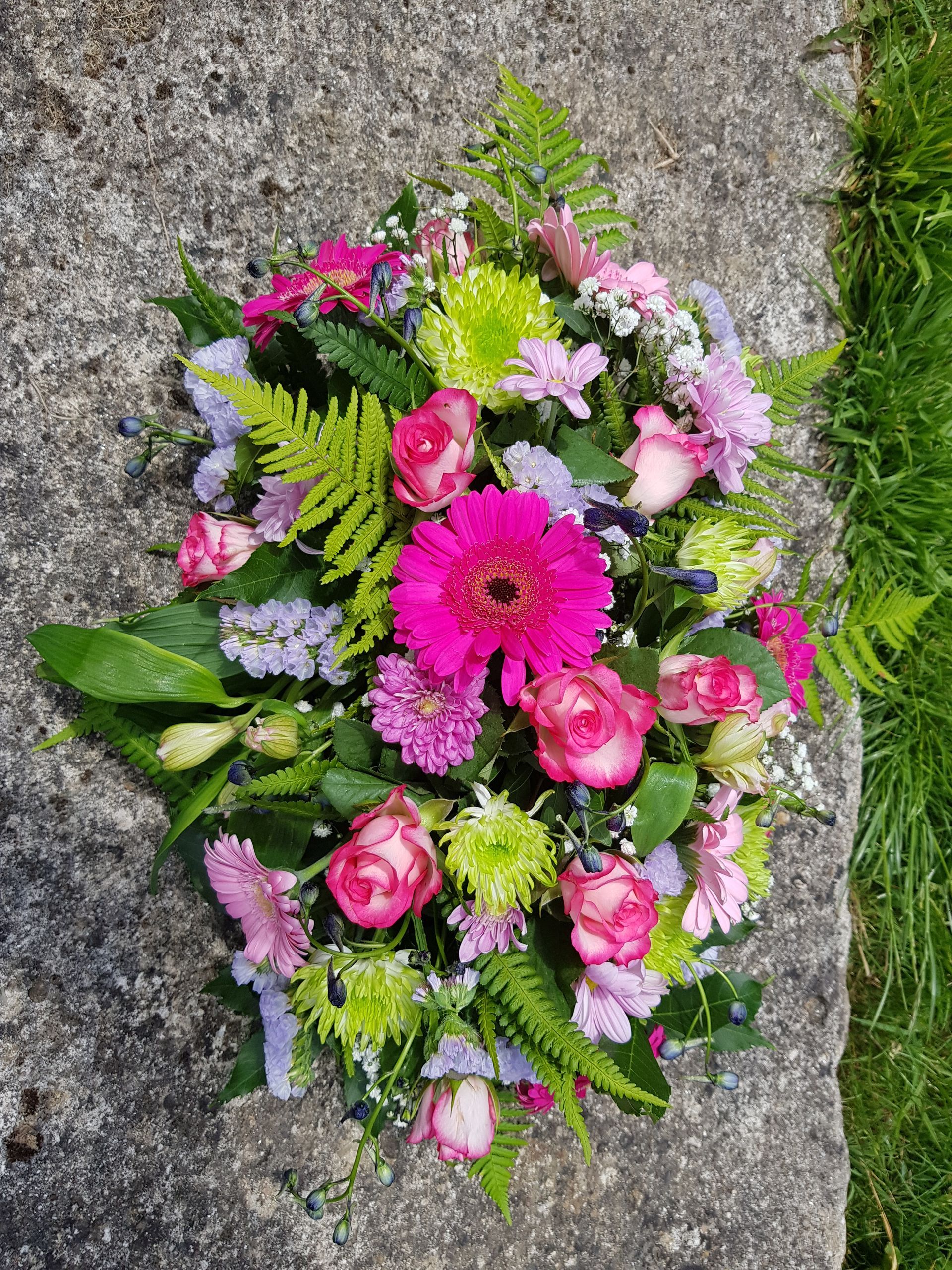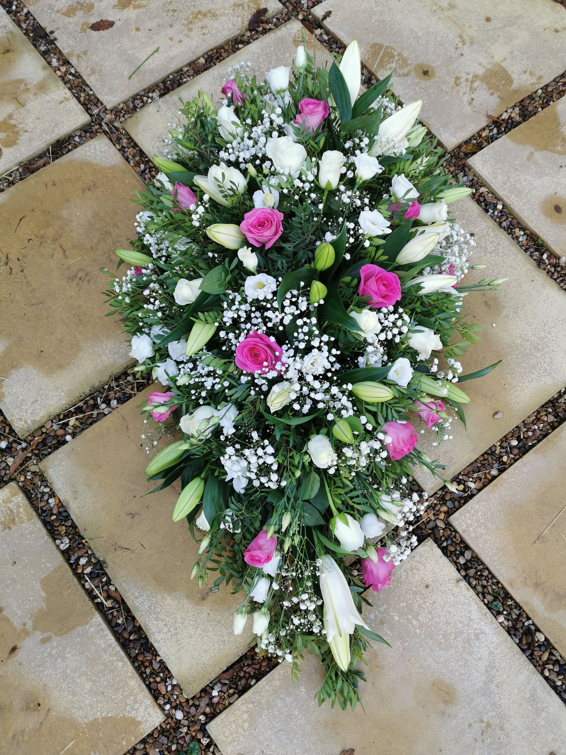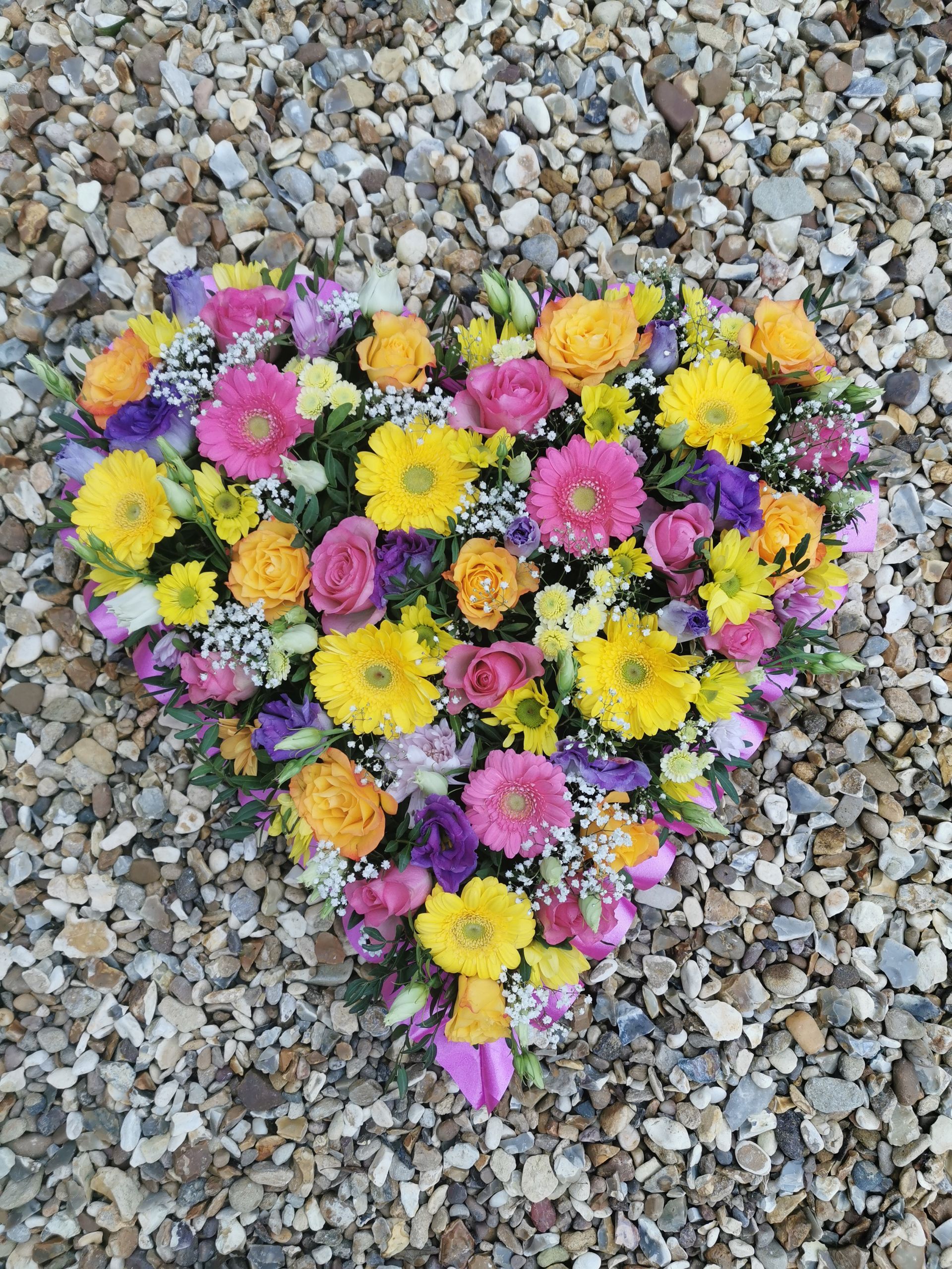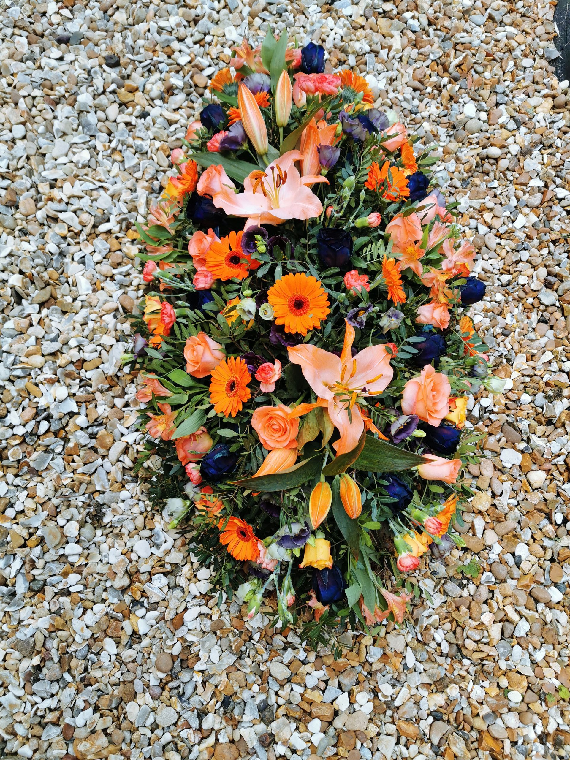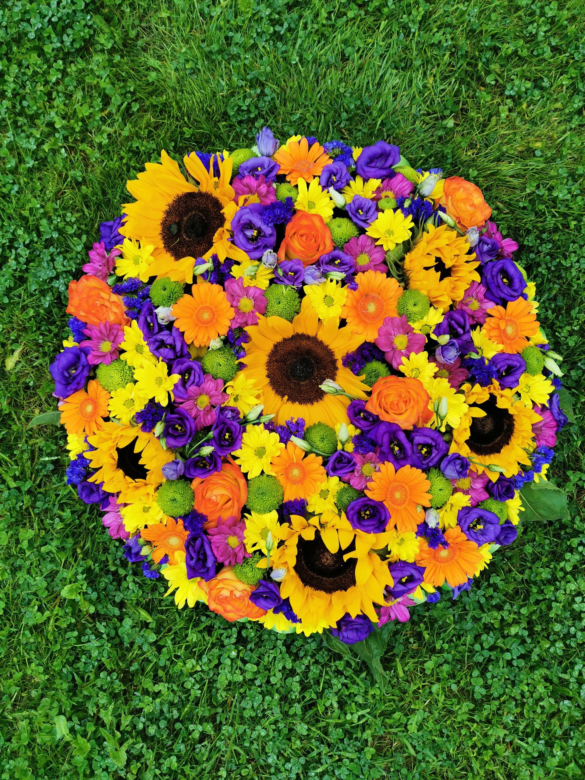 Circular posies in a dish from £25, Coffin sprays vary on flowers & sizes required. Gates to heaven £85