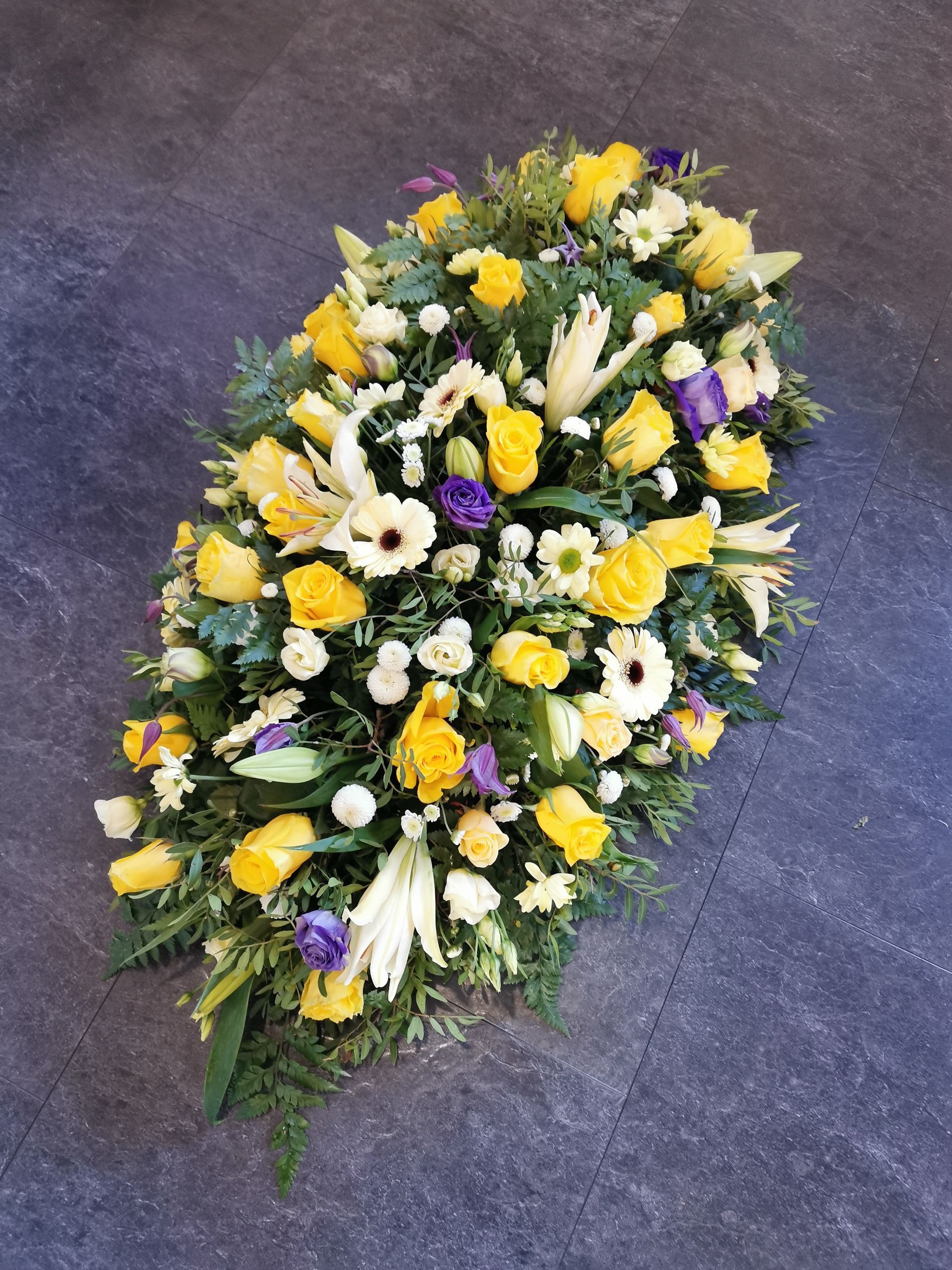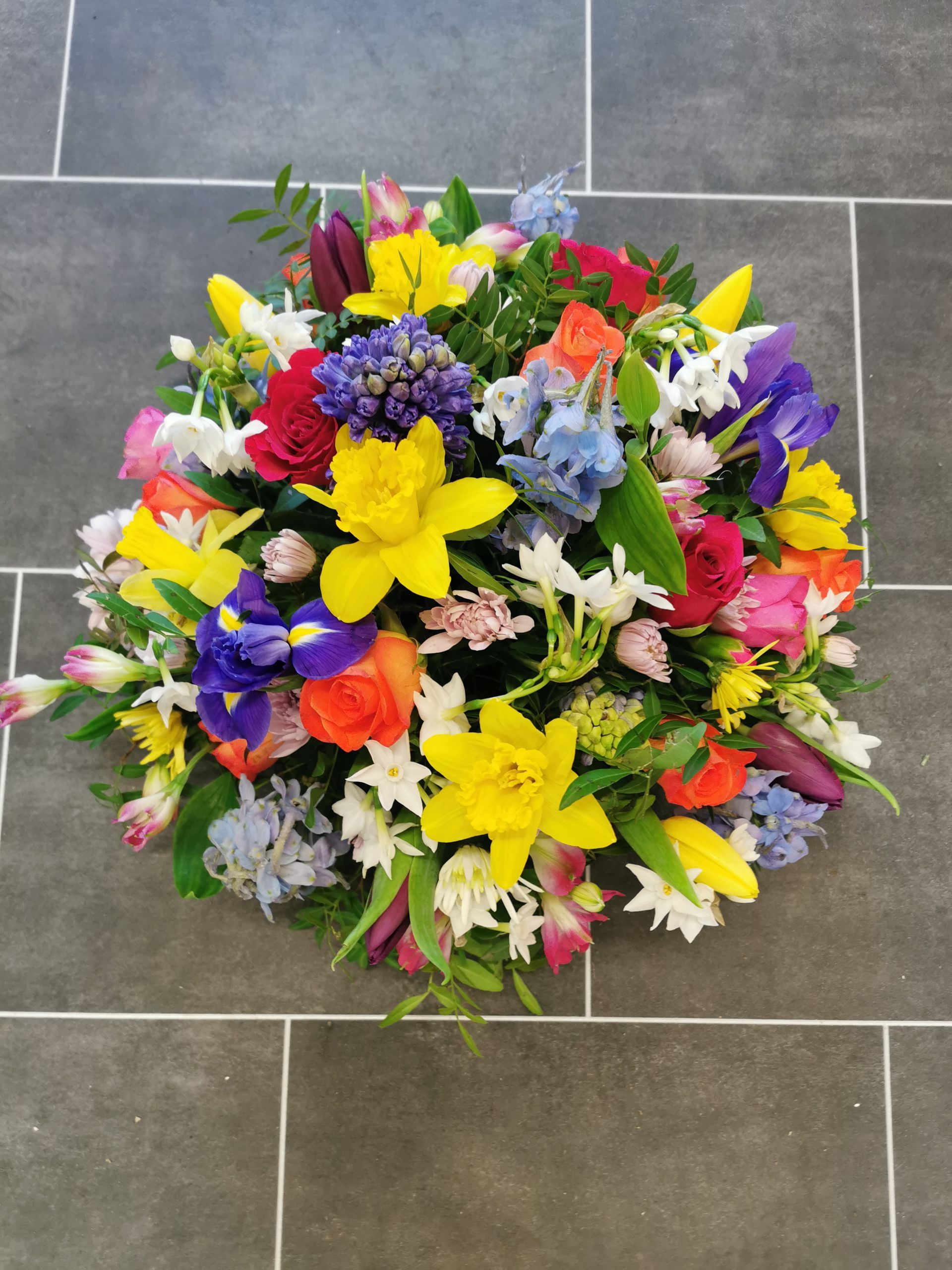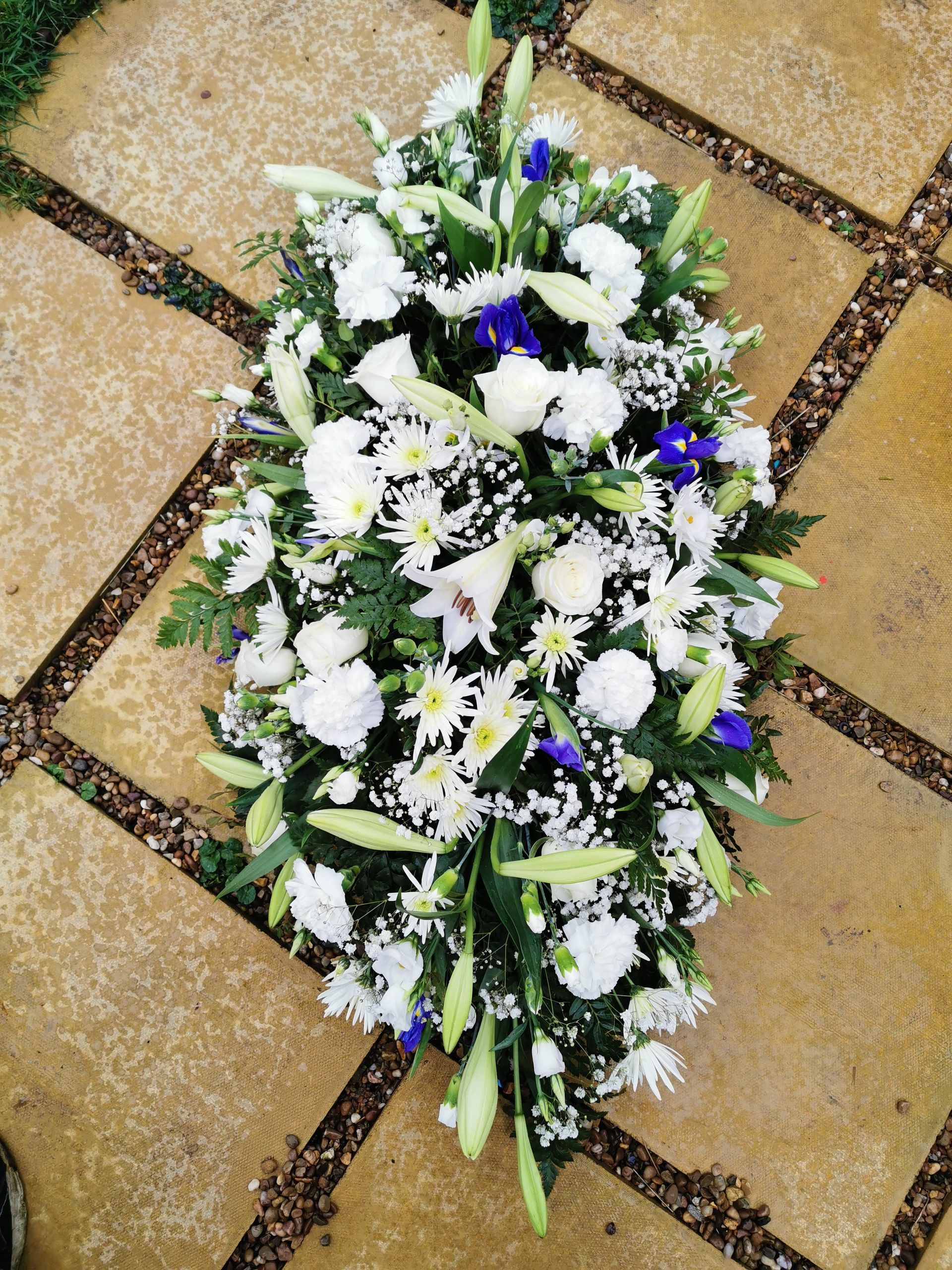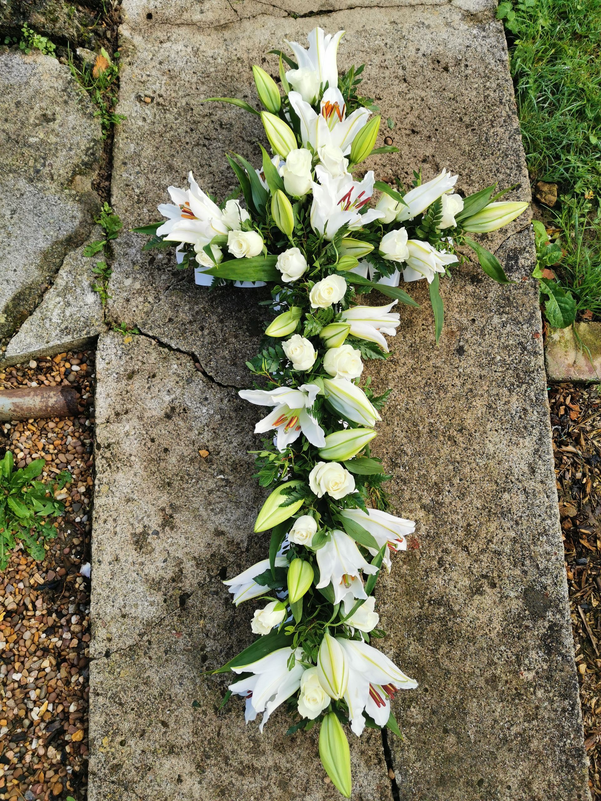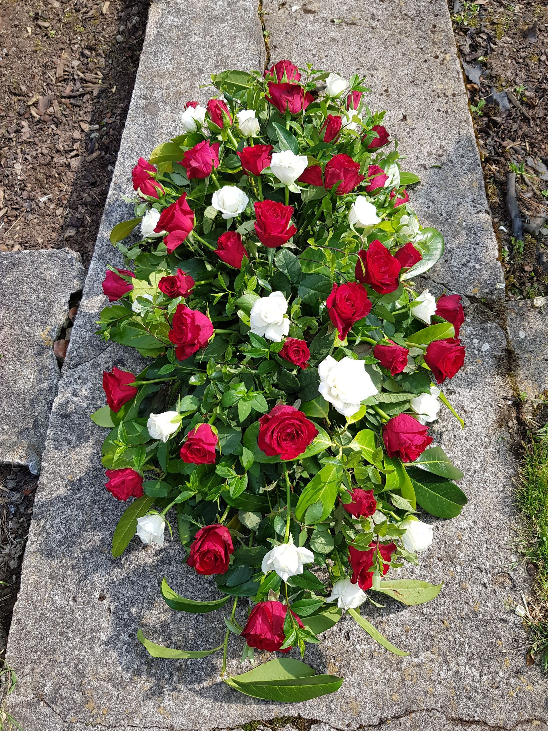 Circular posies in a dish from £25, Coffin sprays vary on flowers & sizes required. Gates to heaven £85