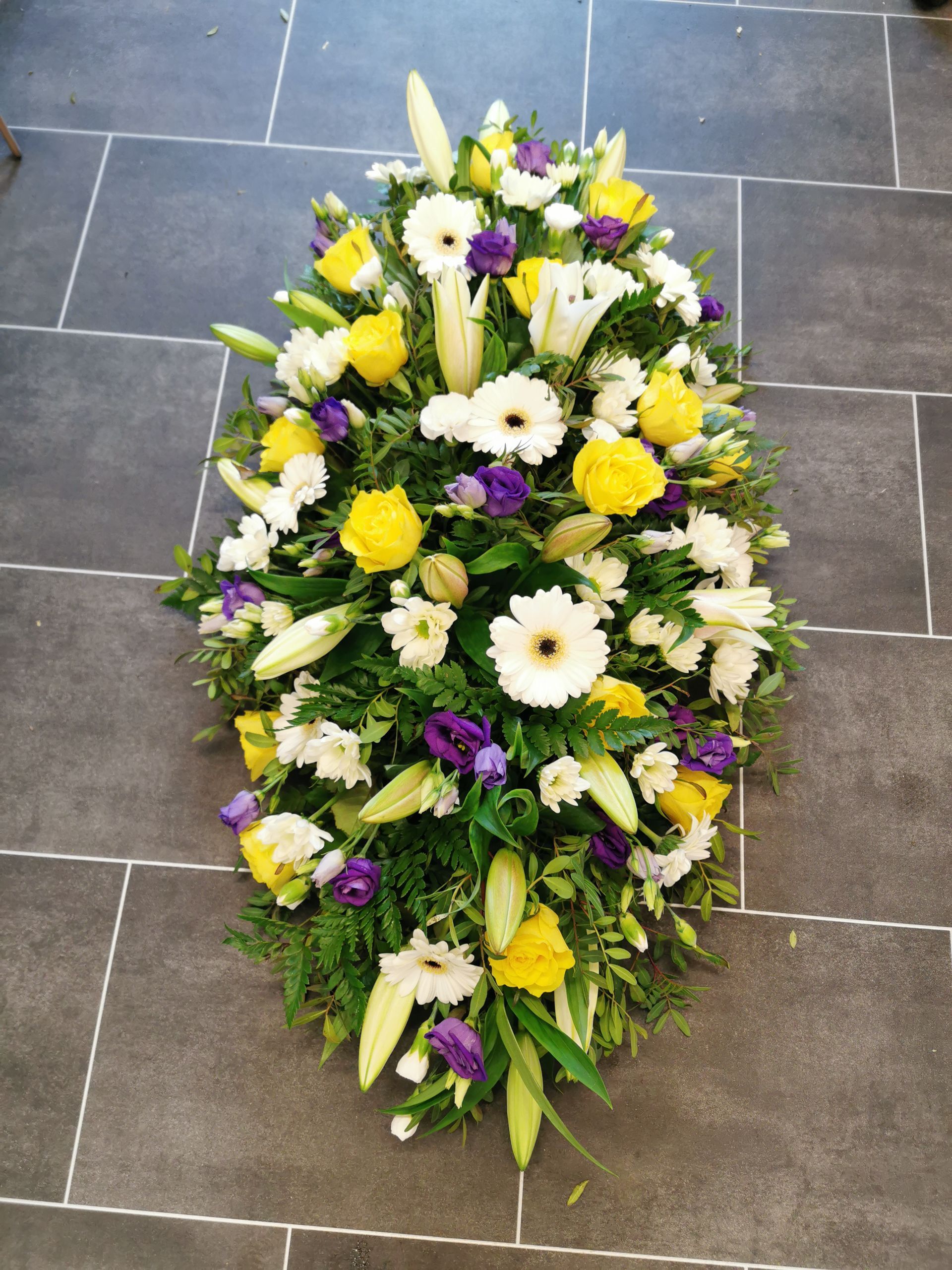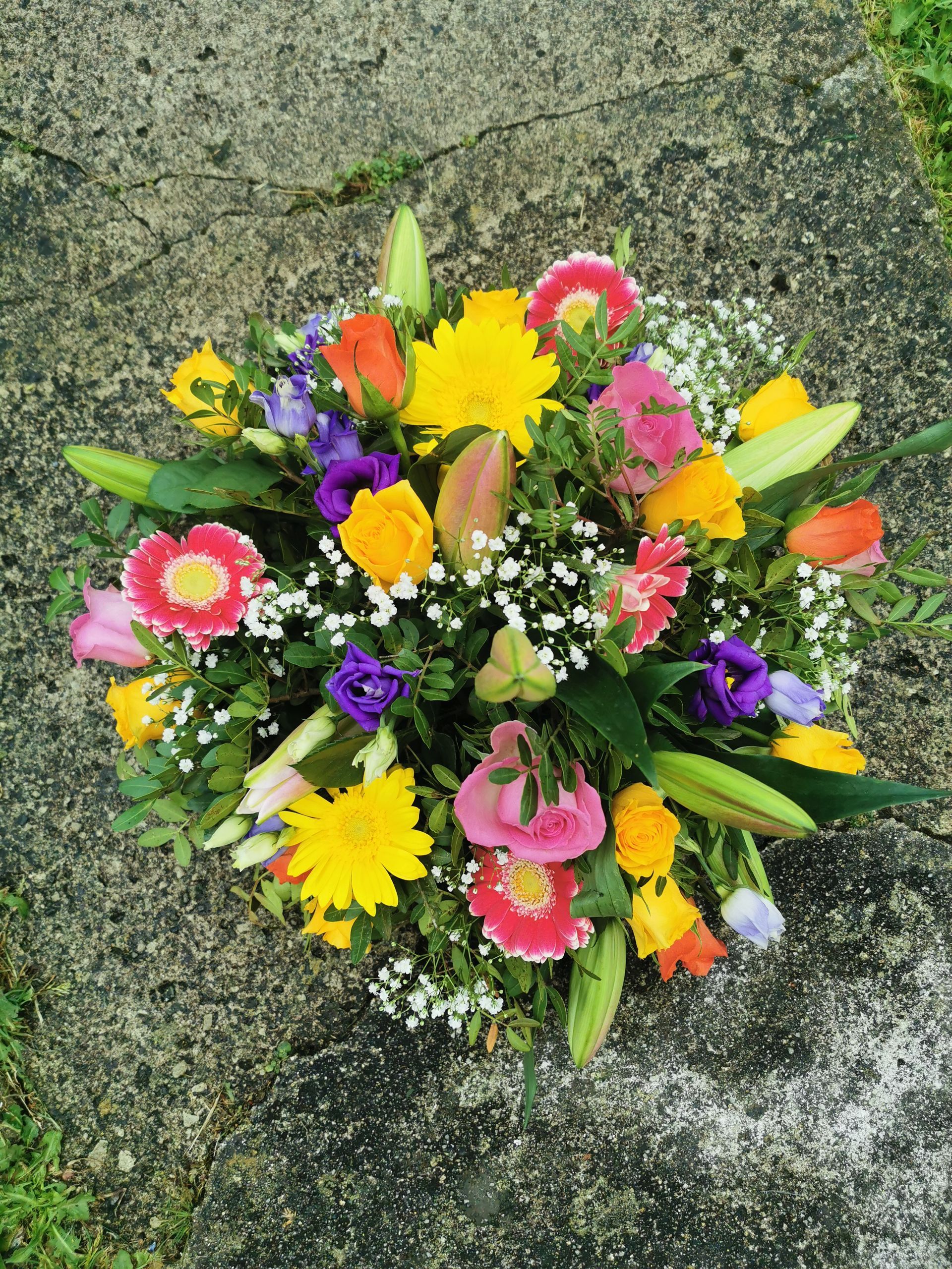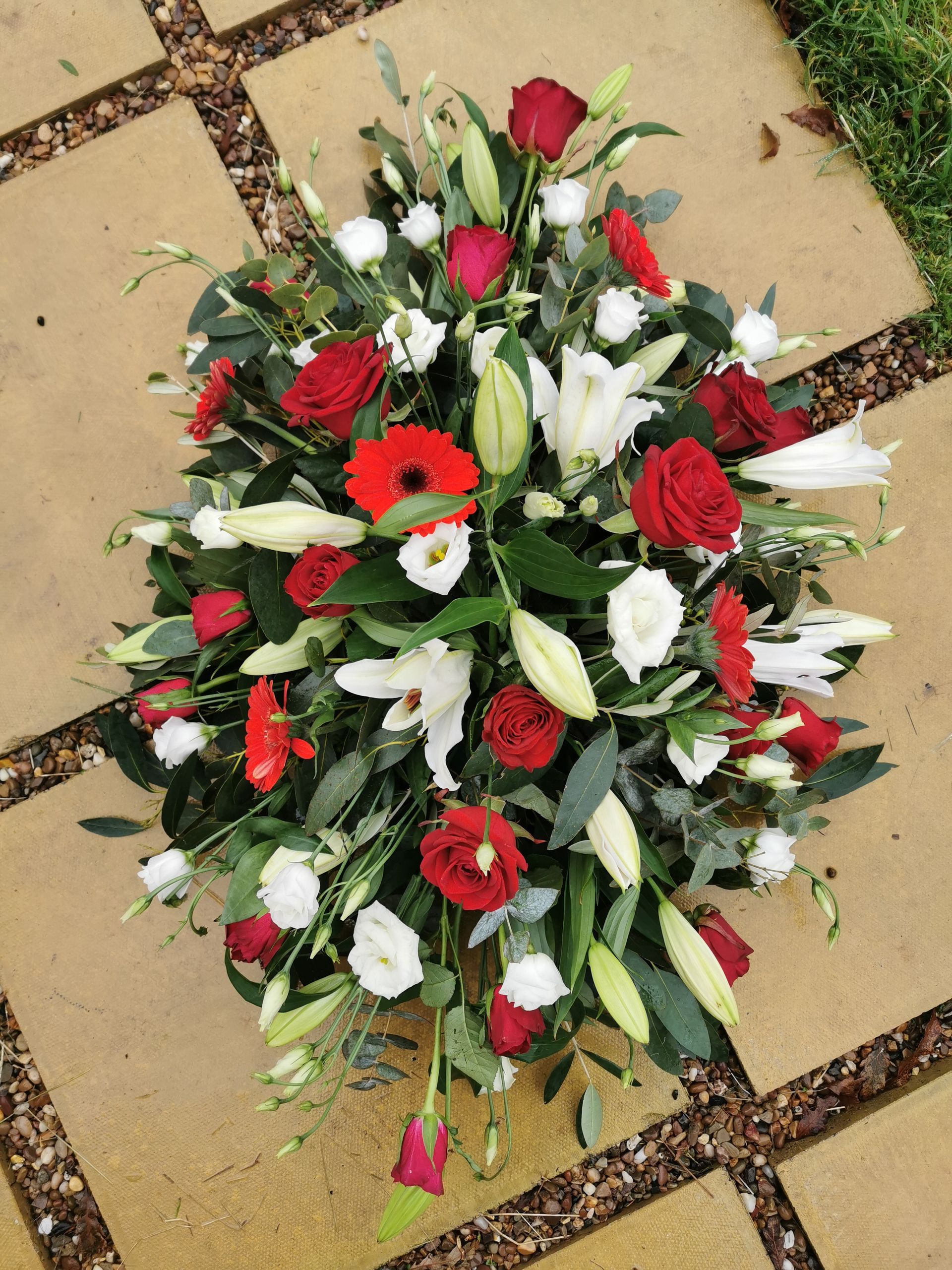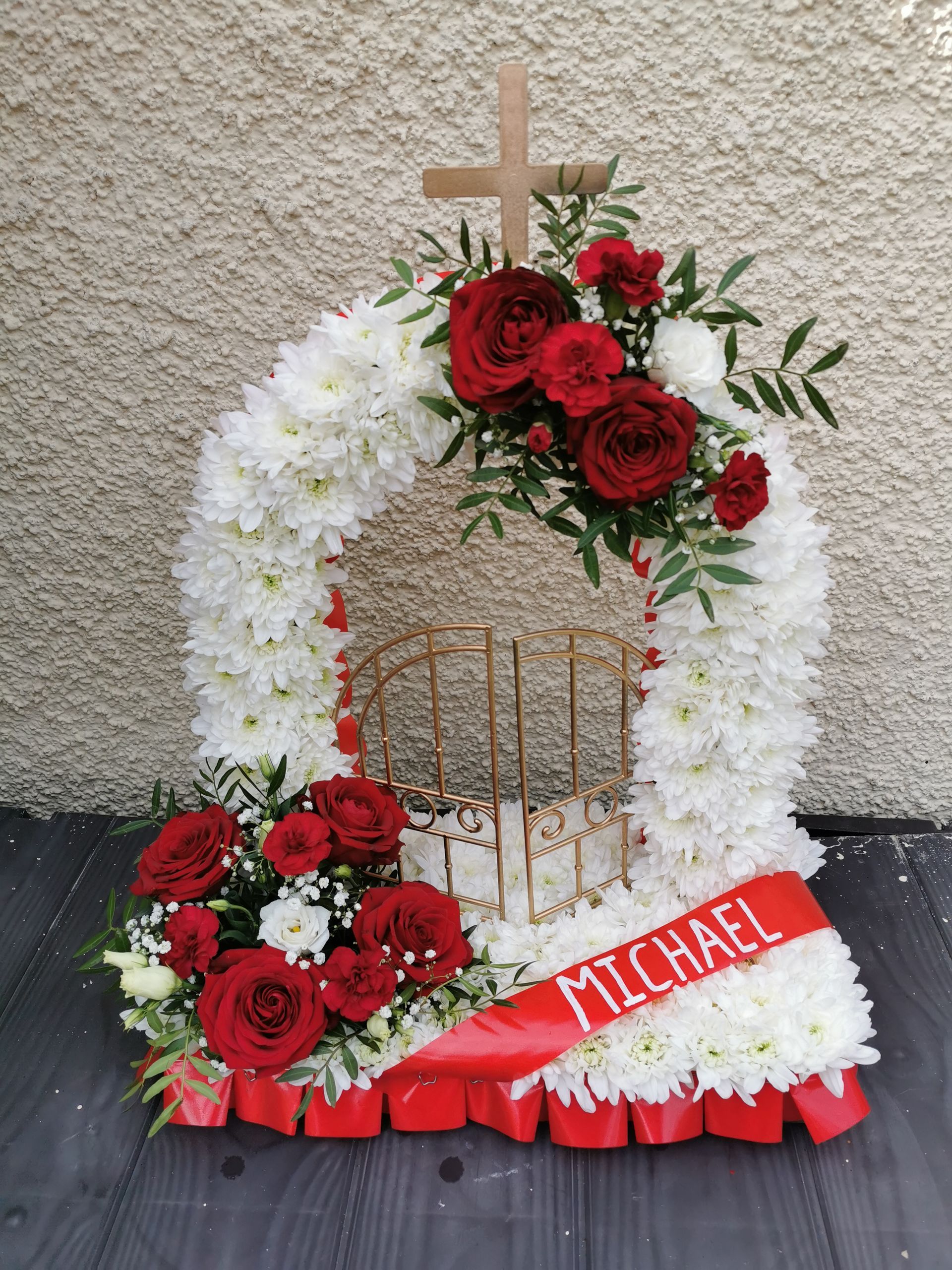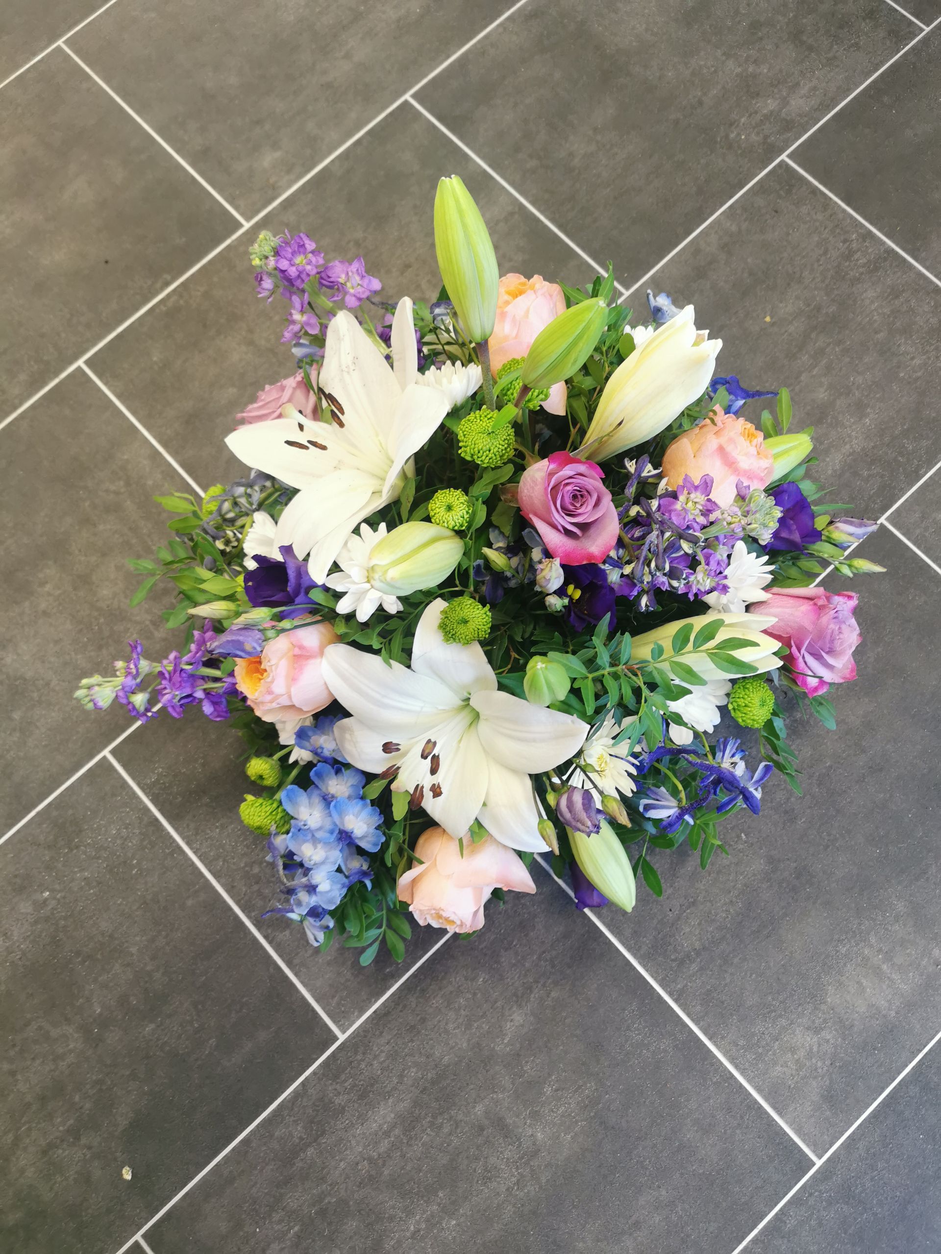 Circular posies in a dish from £25, Coffin sprays vary on flowers & sizes required. Gates to heaven £85