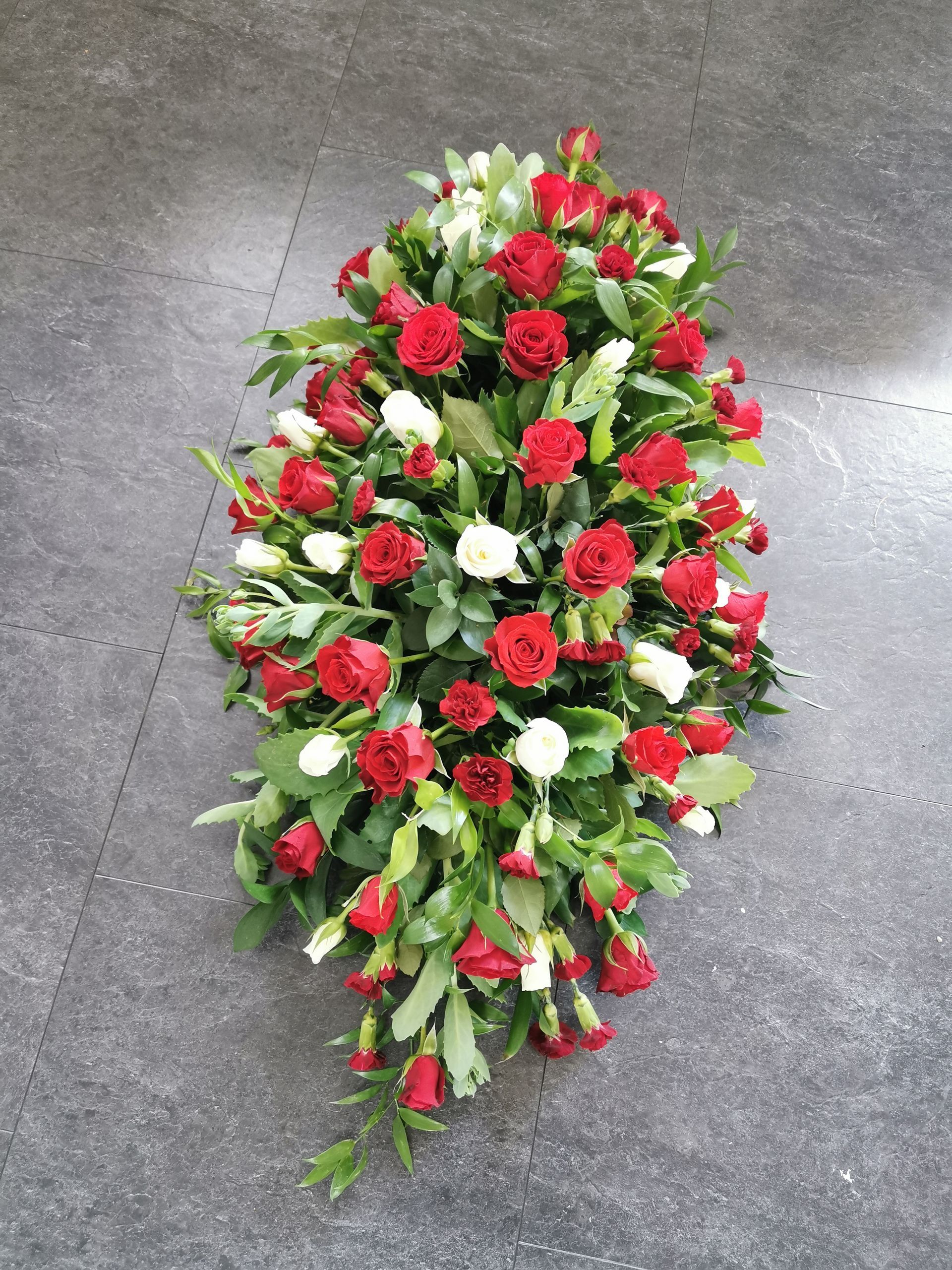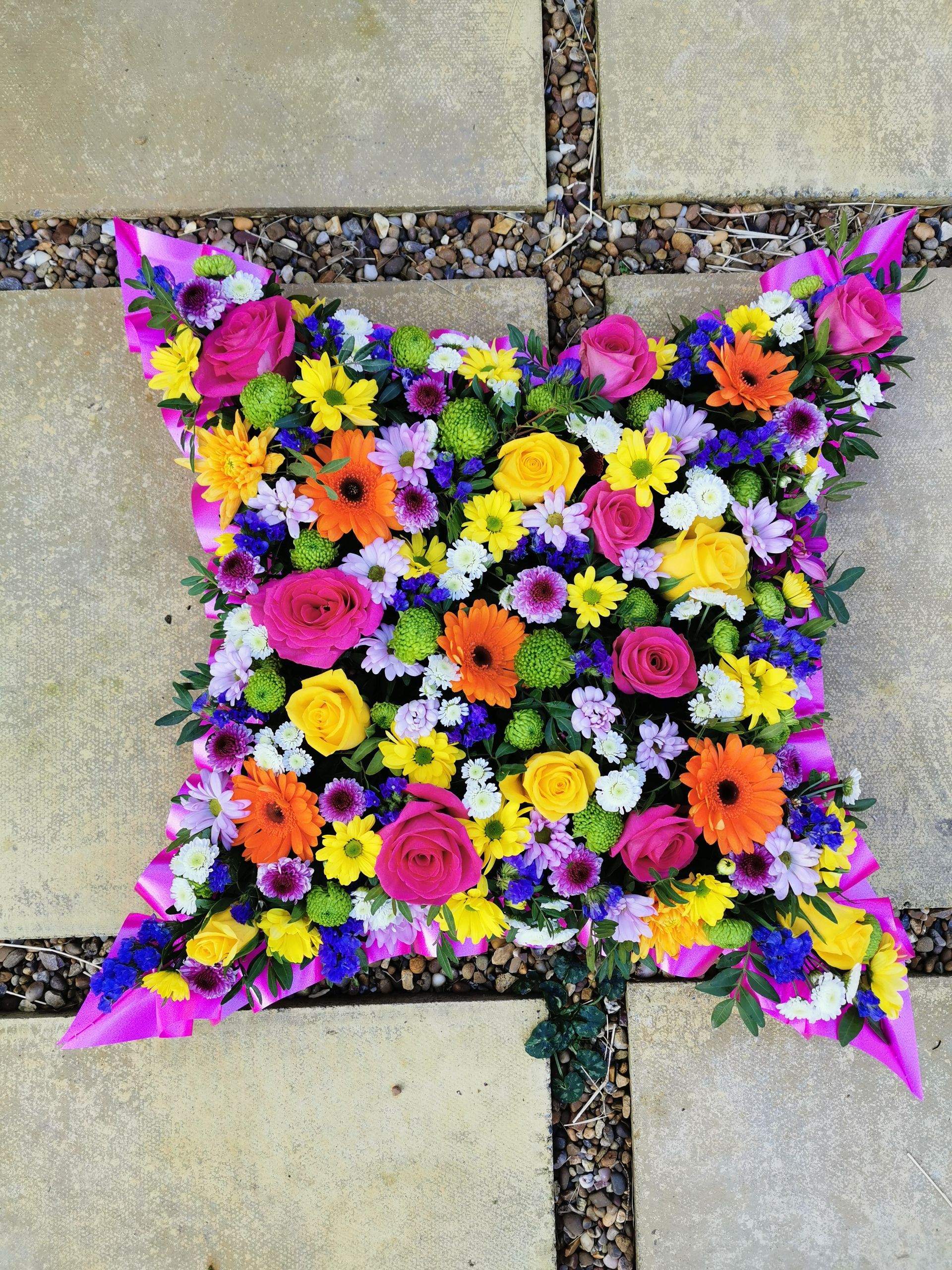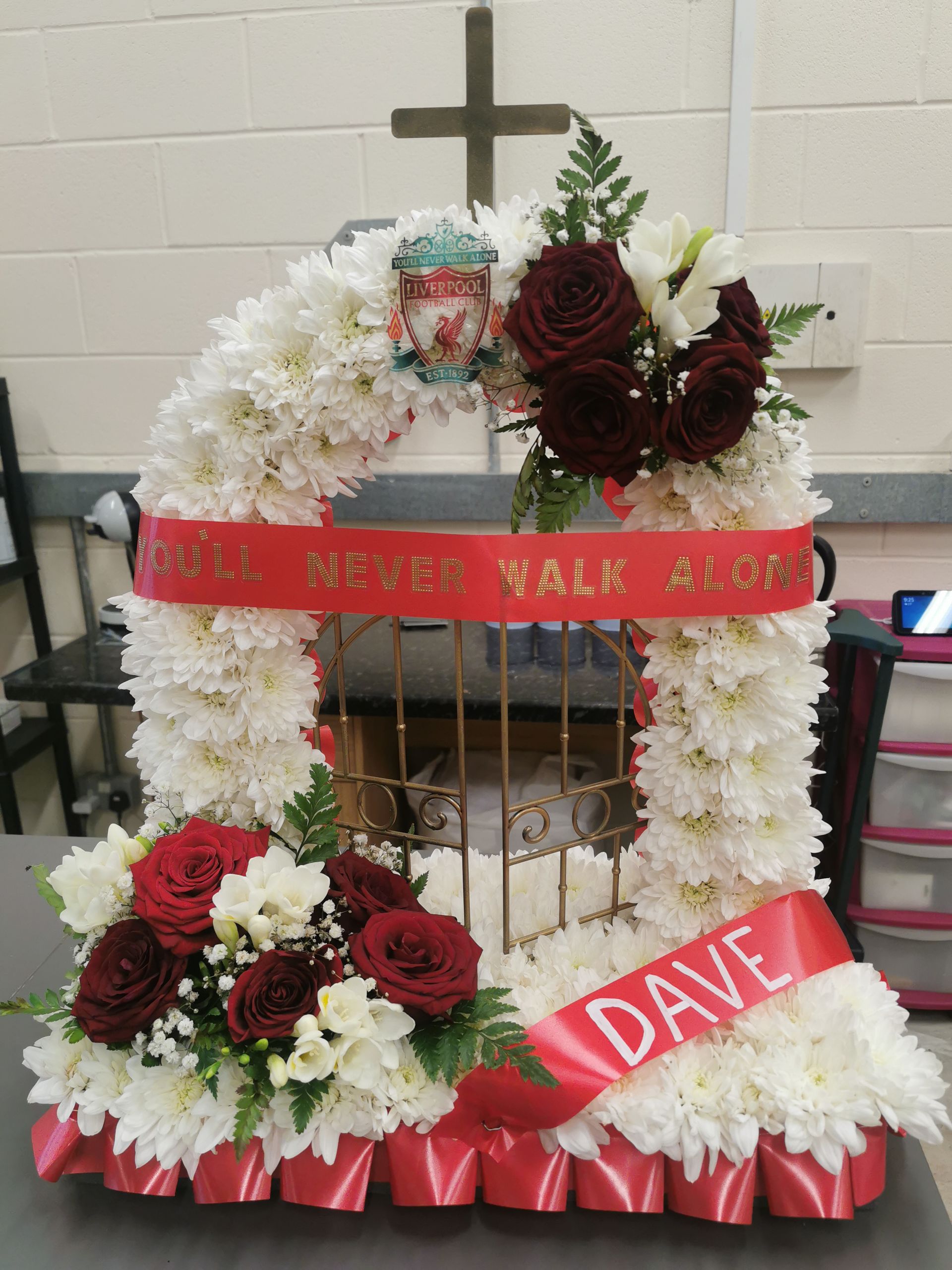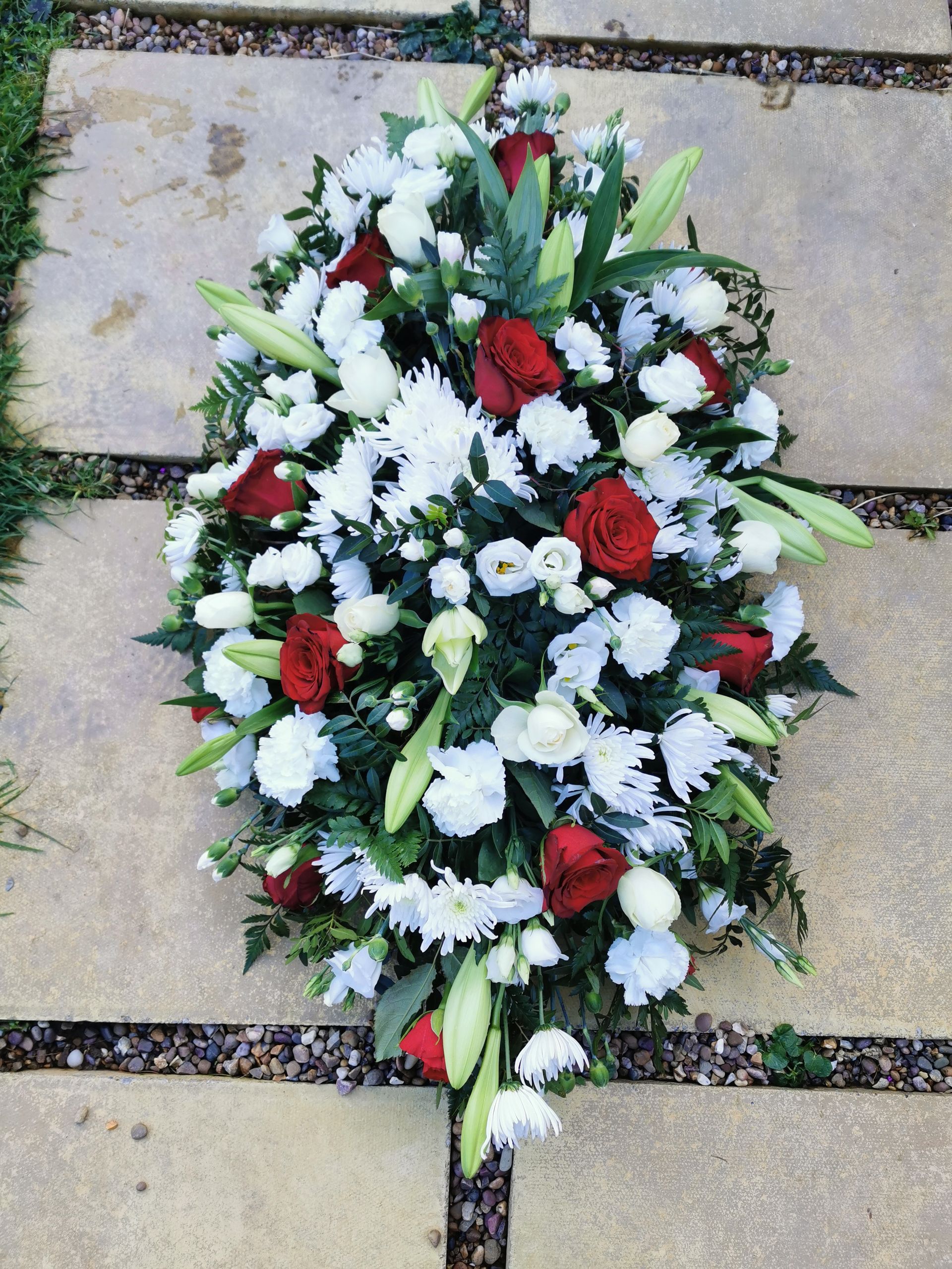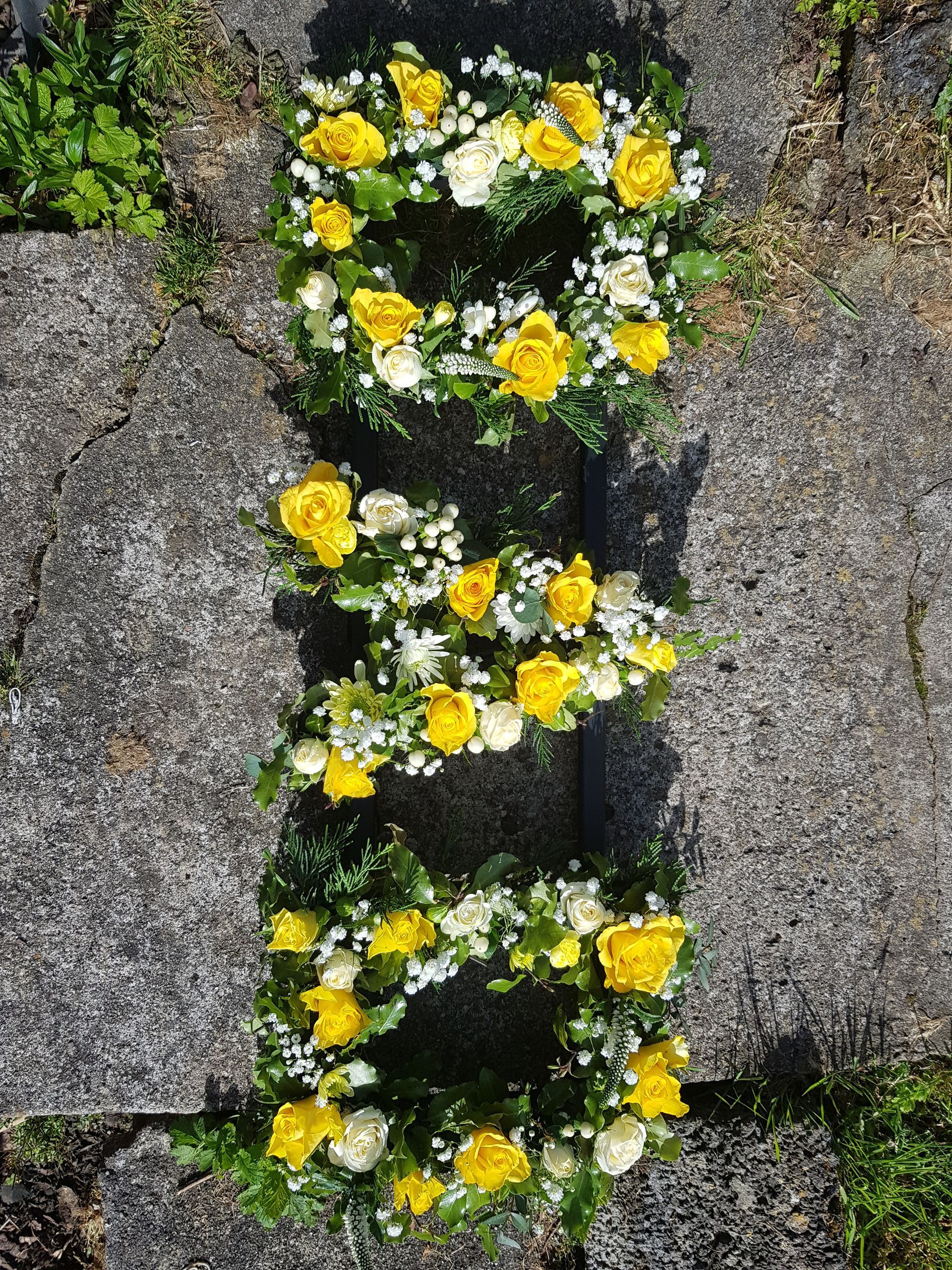 Circular posies in a dish from £25, Coffin sprays vary on flowers & sizes required. Gates to heaven £85