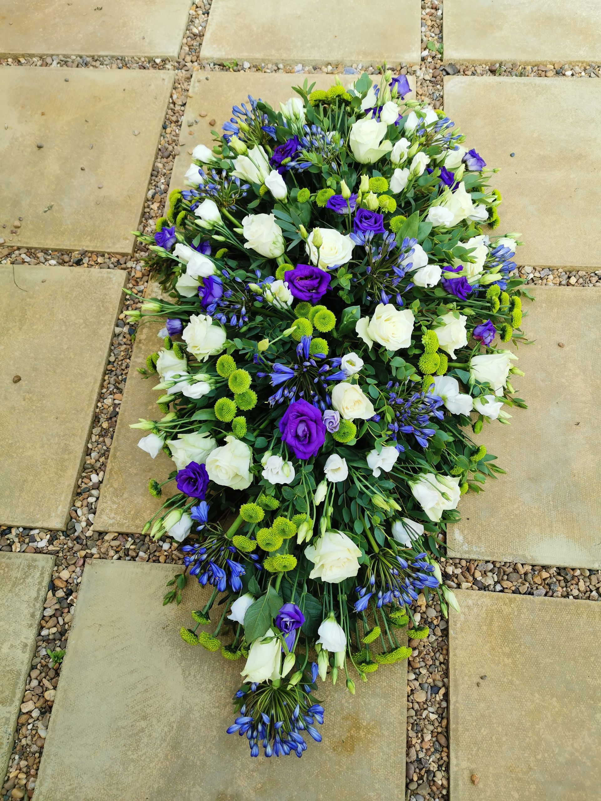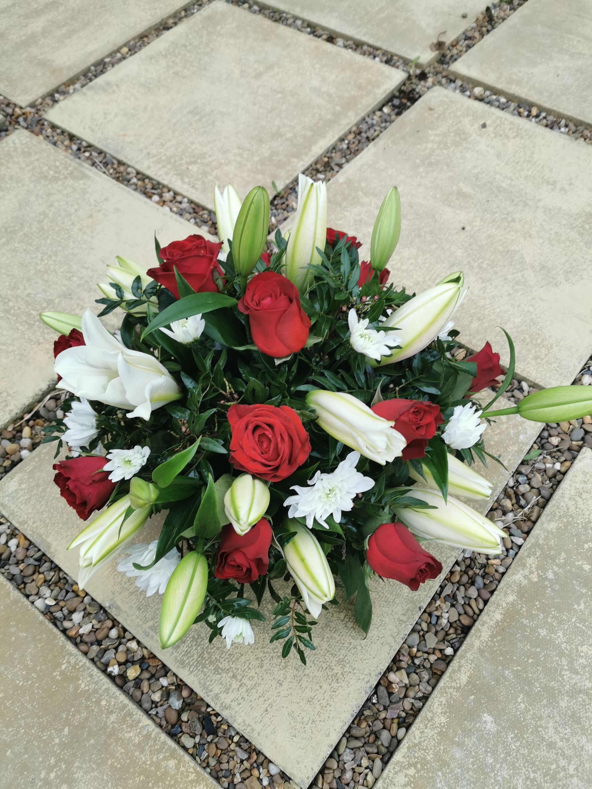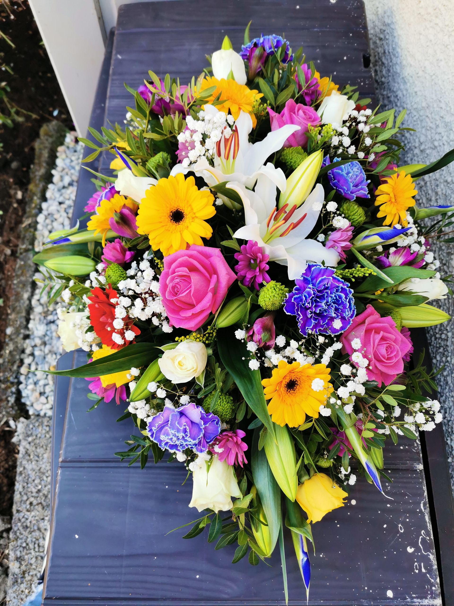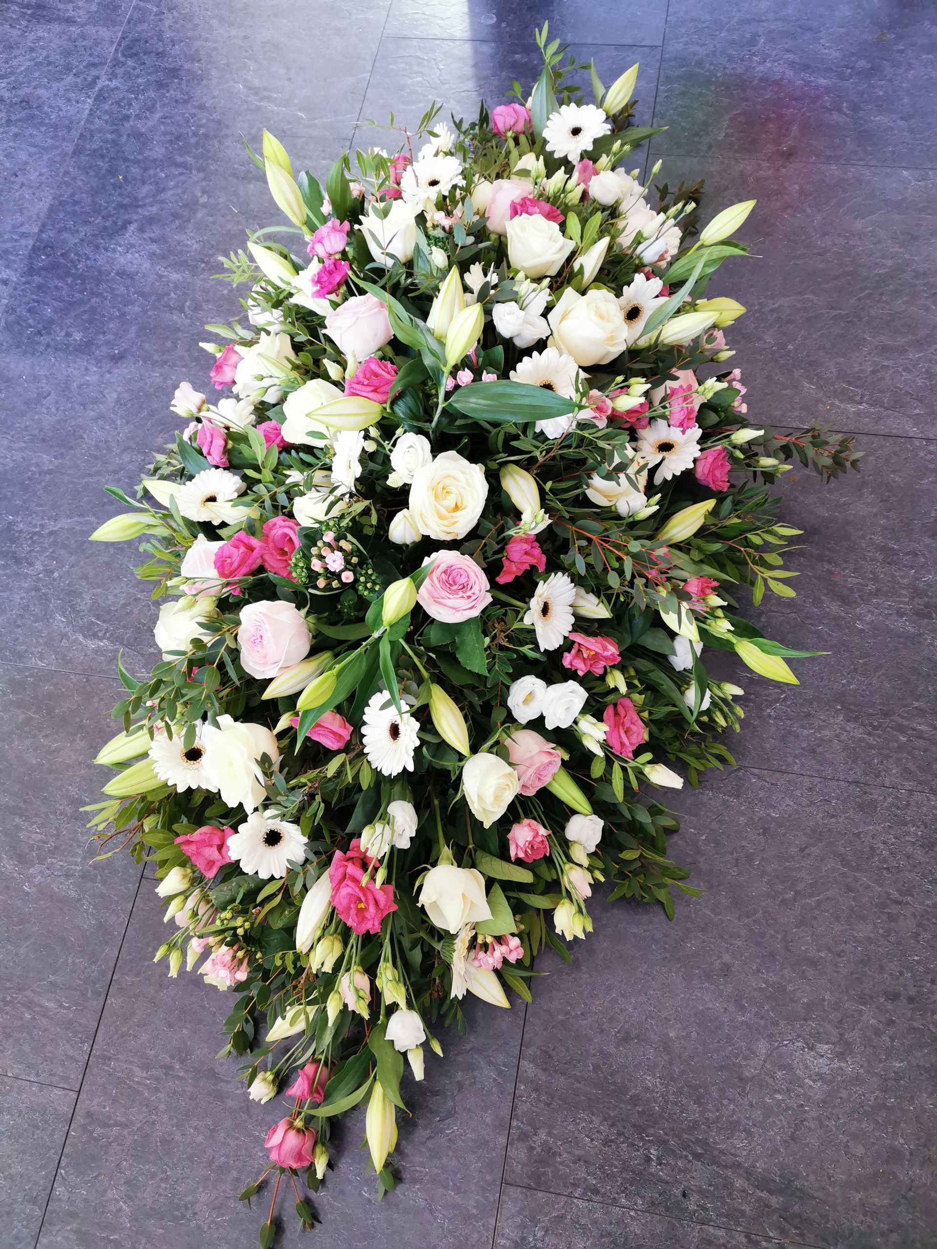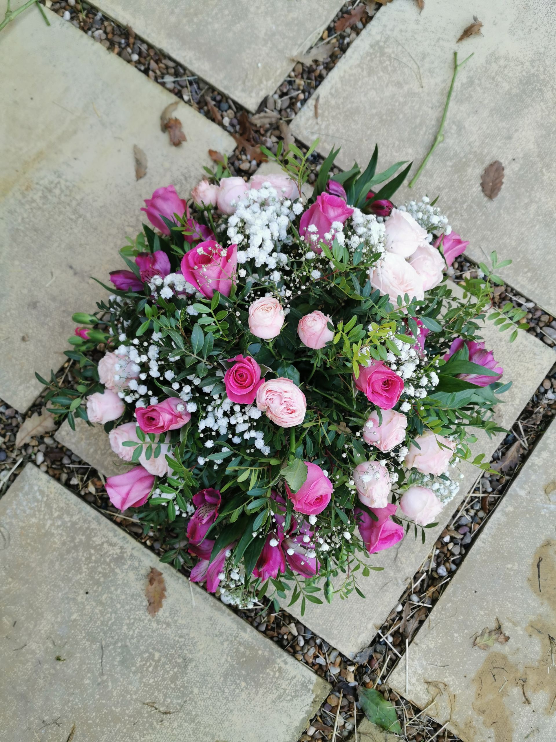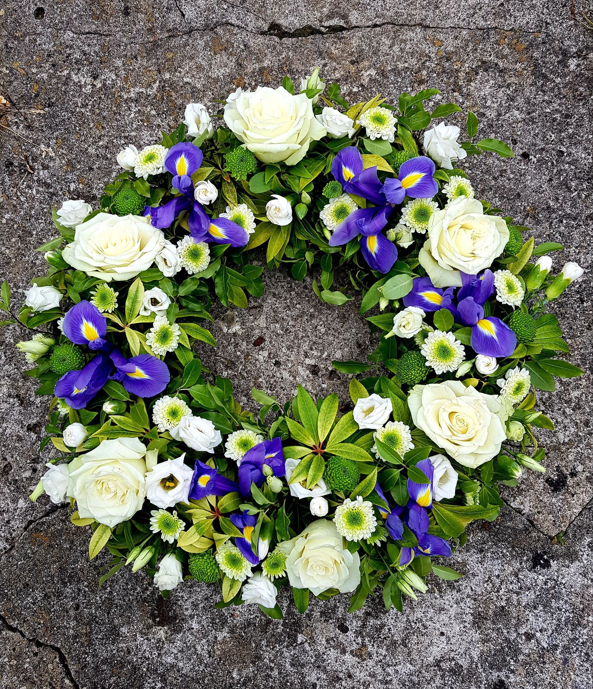 Circular posies in a dish from £25, Coffin sprays vary on flowers & sizes required. Gates to heaven £85