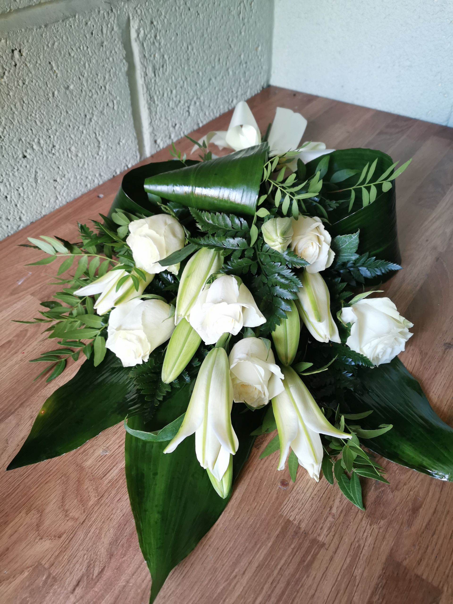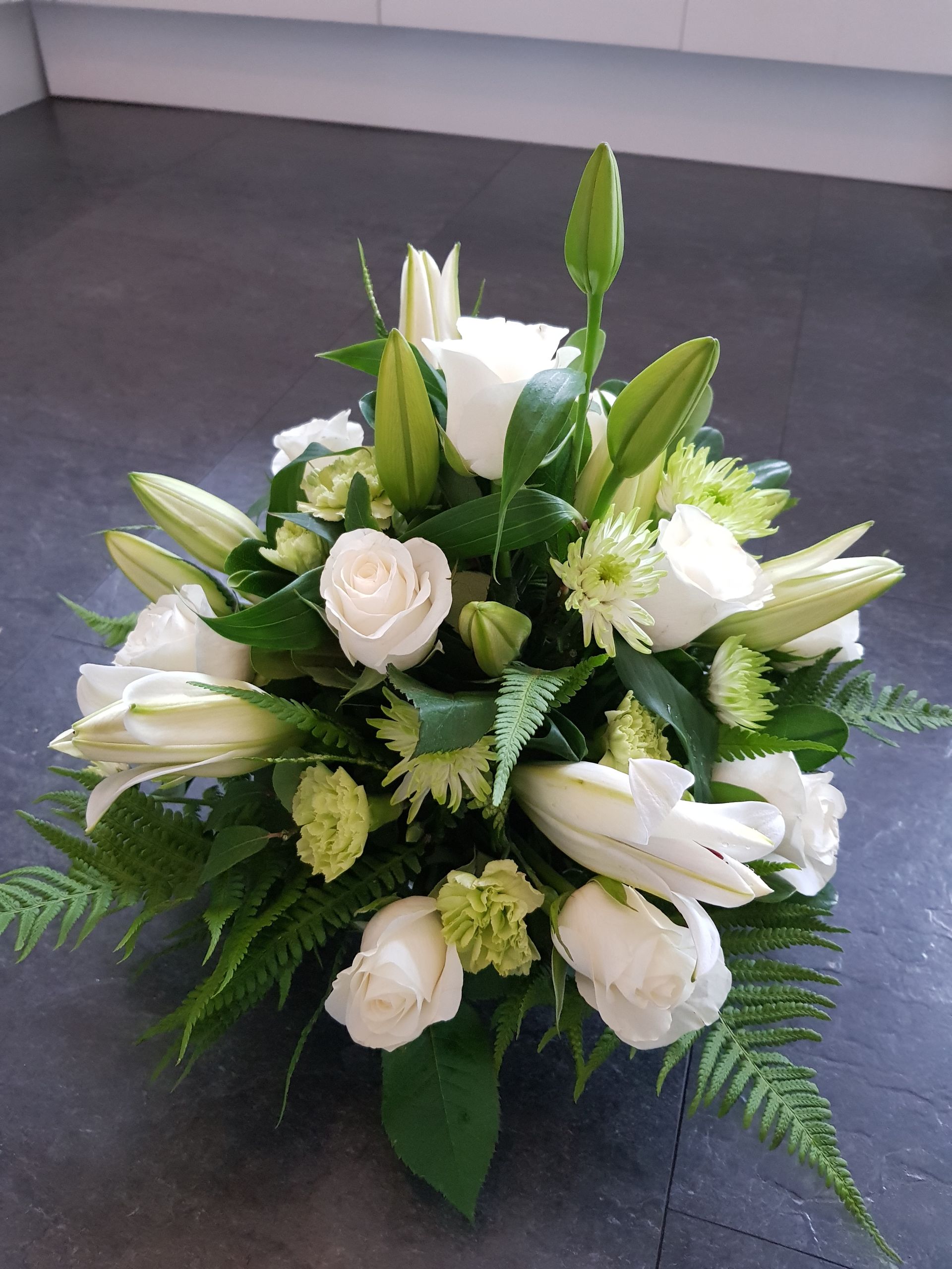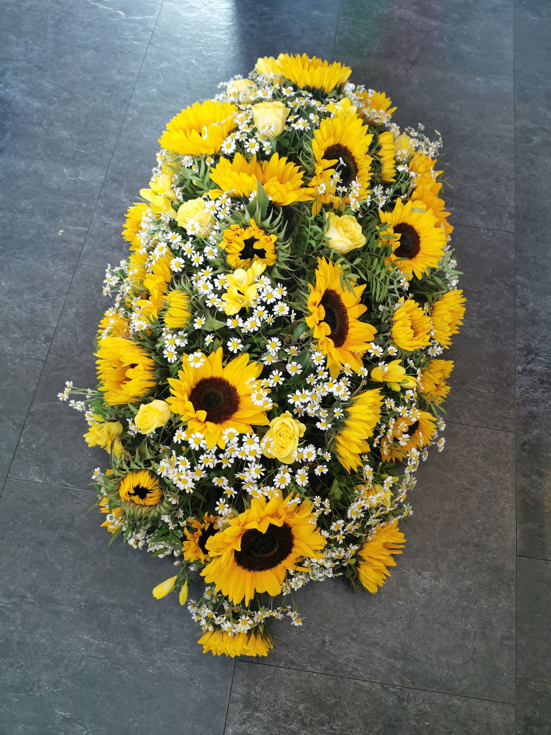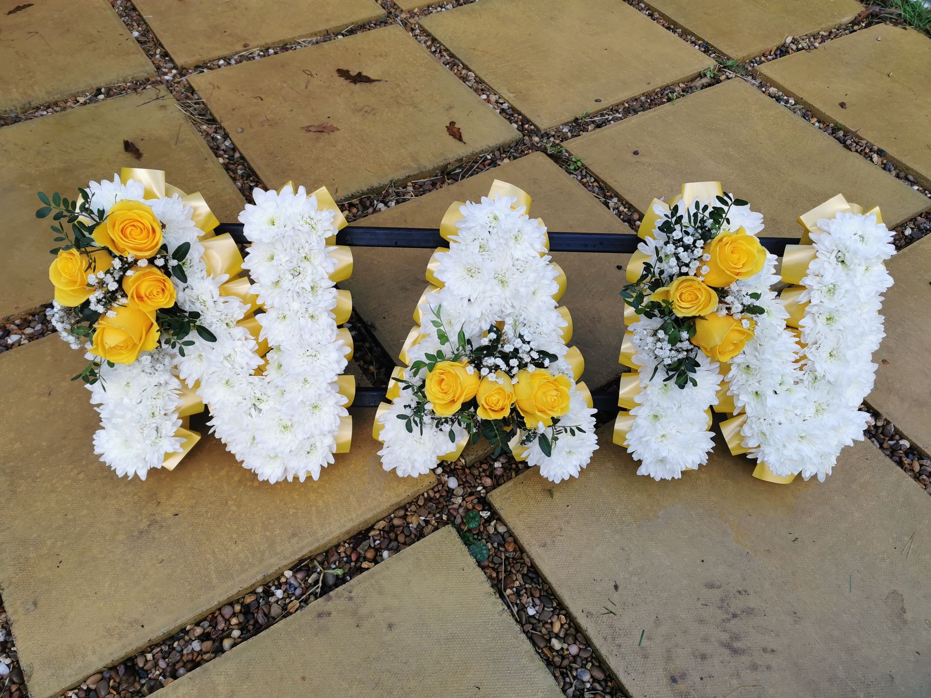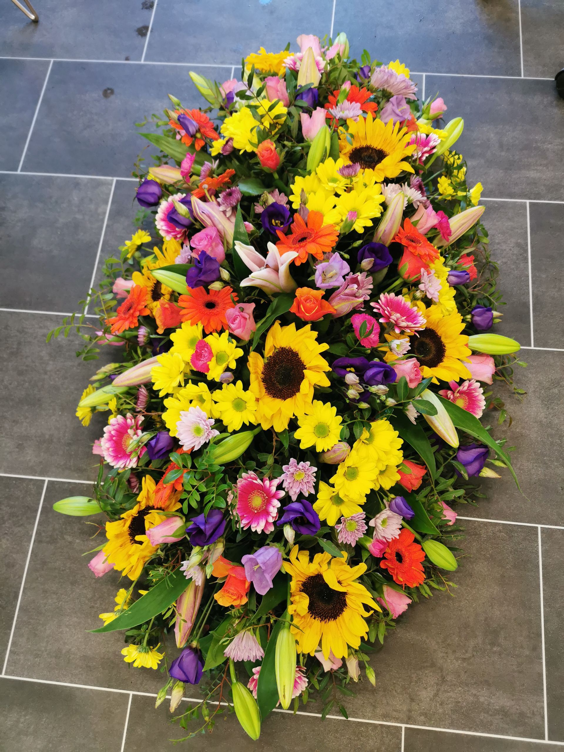 Circular posies in a dish from £25, Coffin sprays vary on flowers & sizes required. Gates to heaven £85