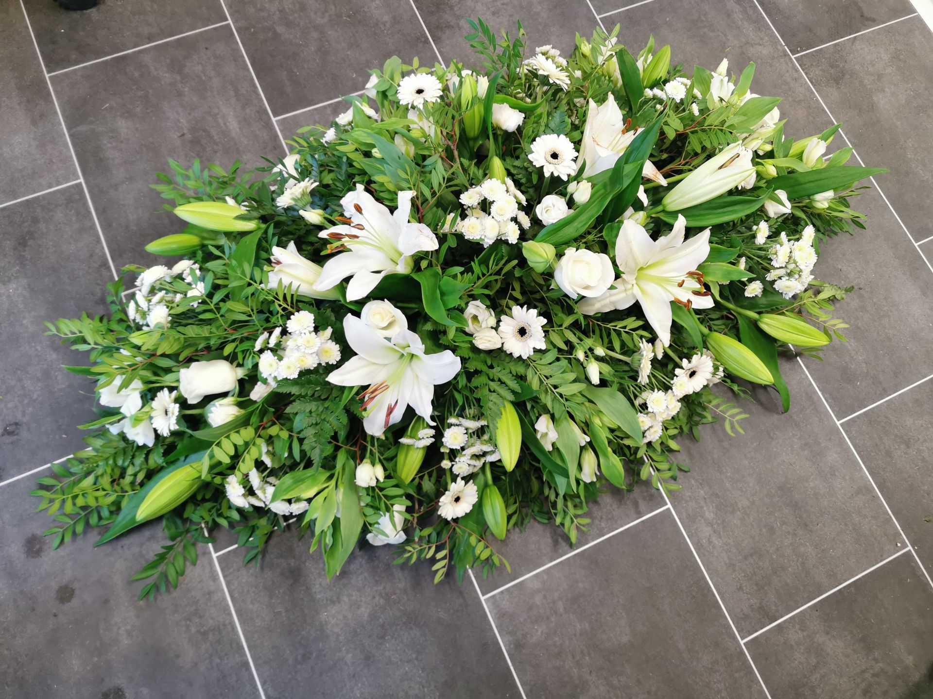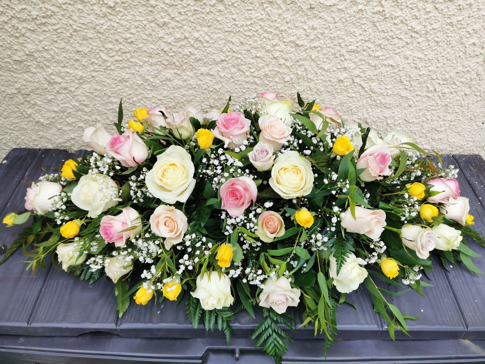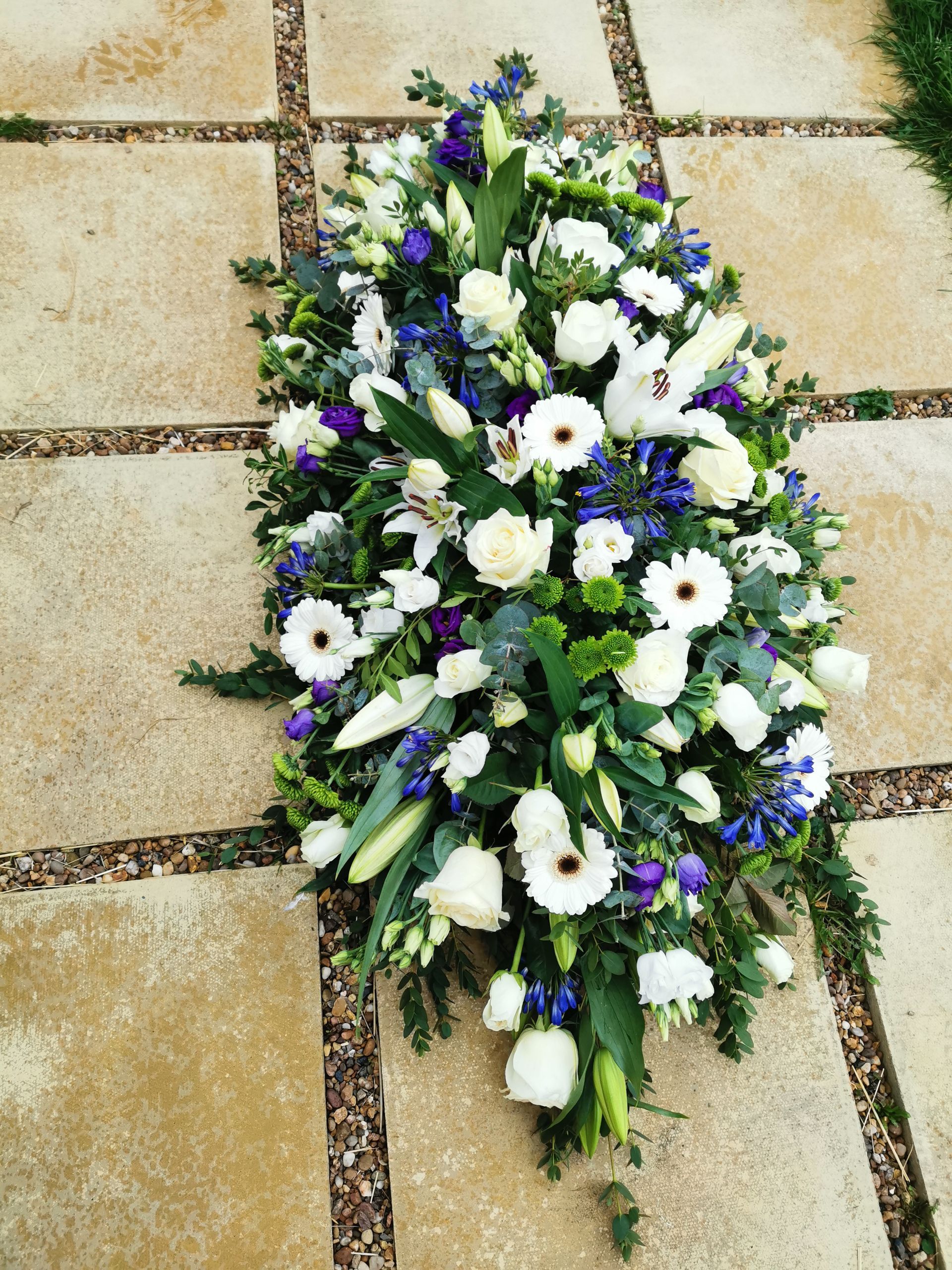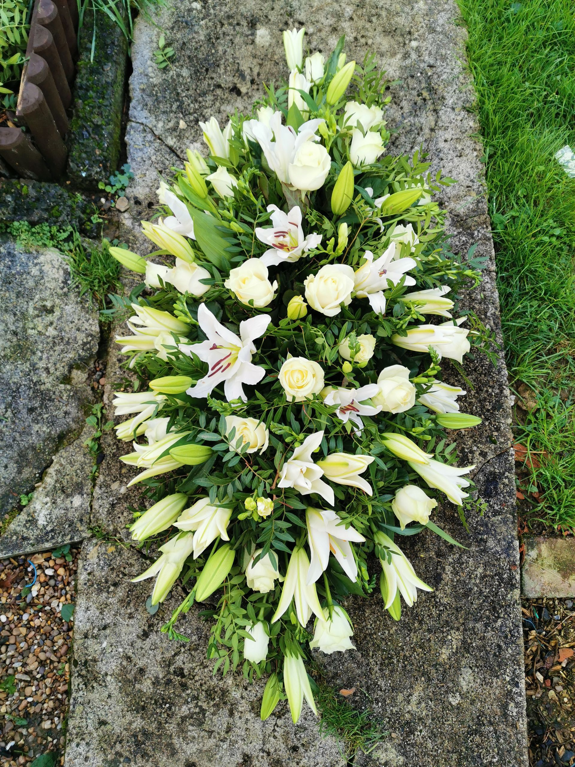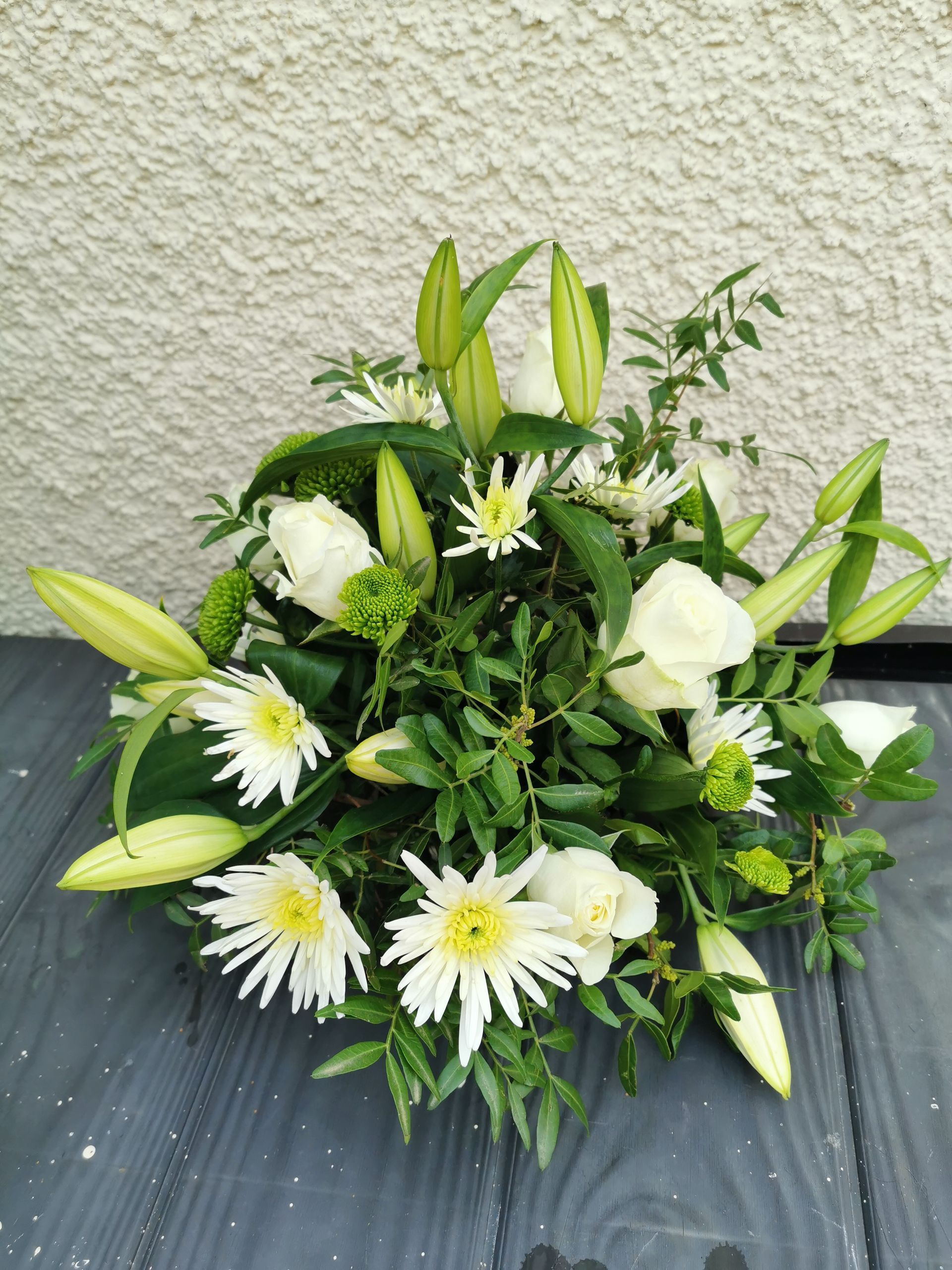 Circular posies in a dish from £25, Coffin sprays vary on flowers & sizes required. Gates to heaven £85