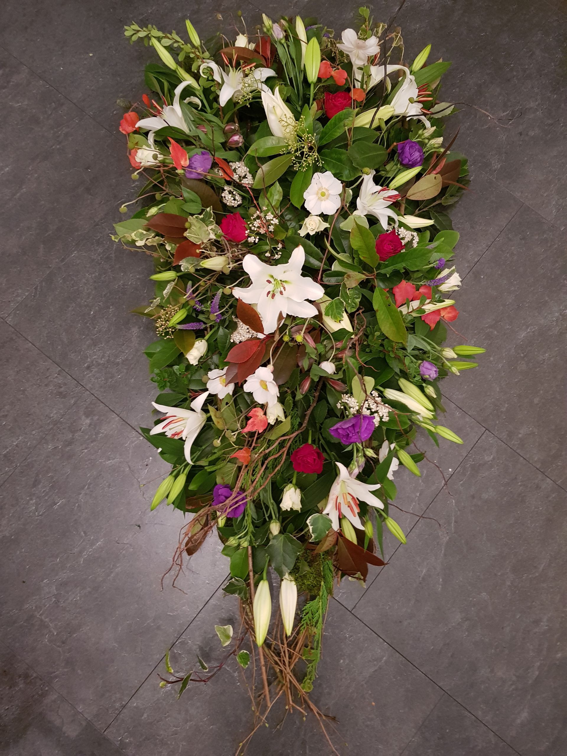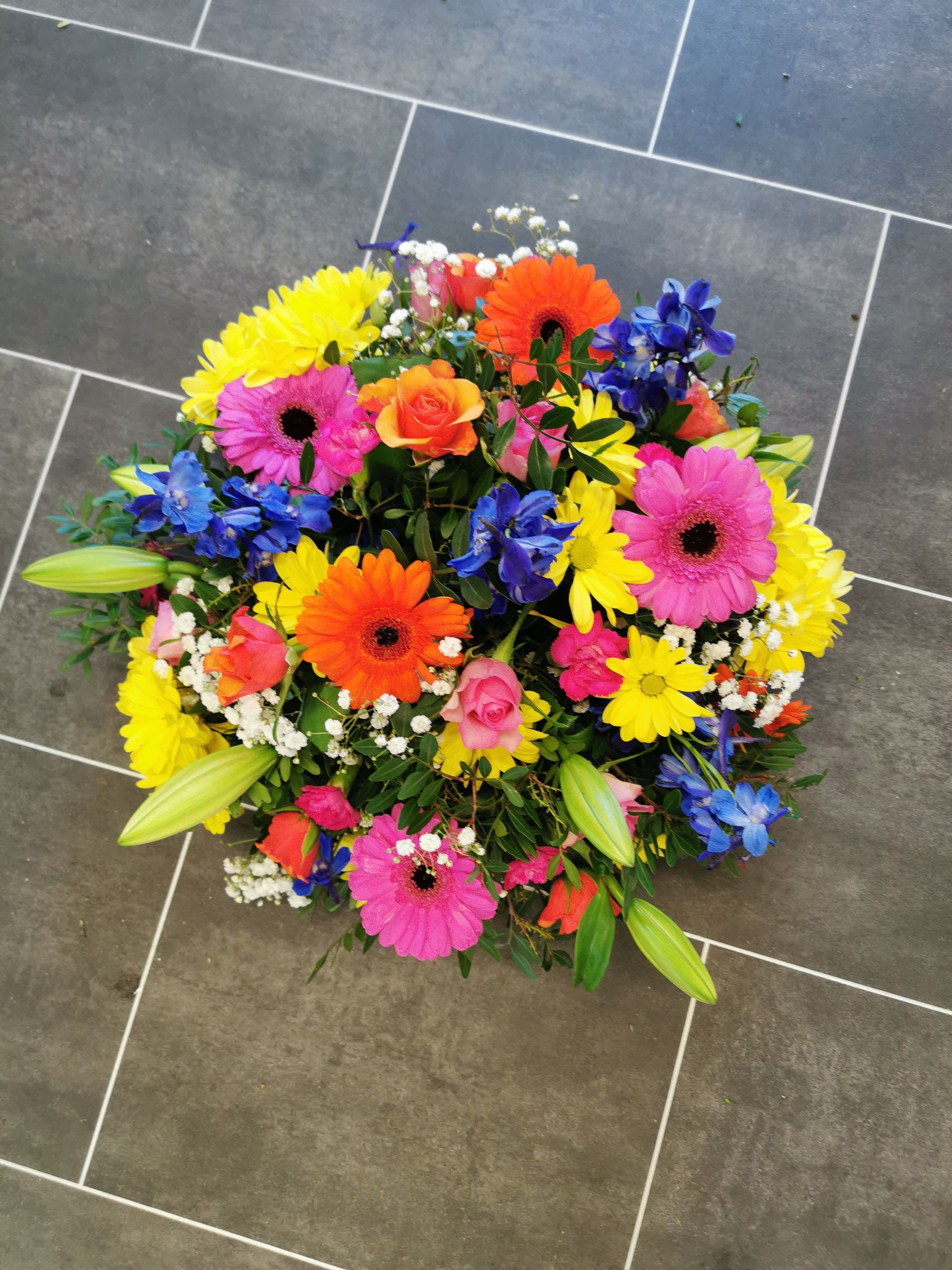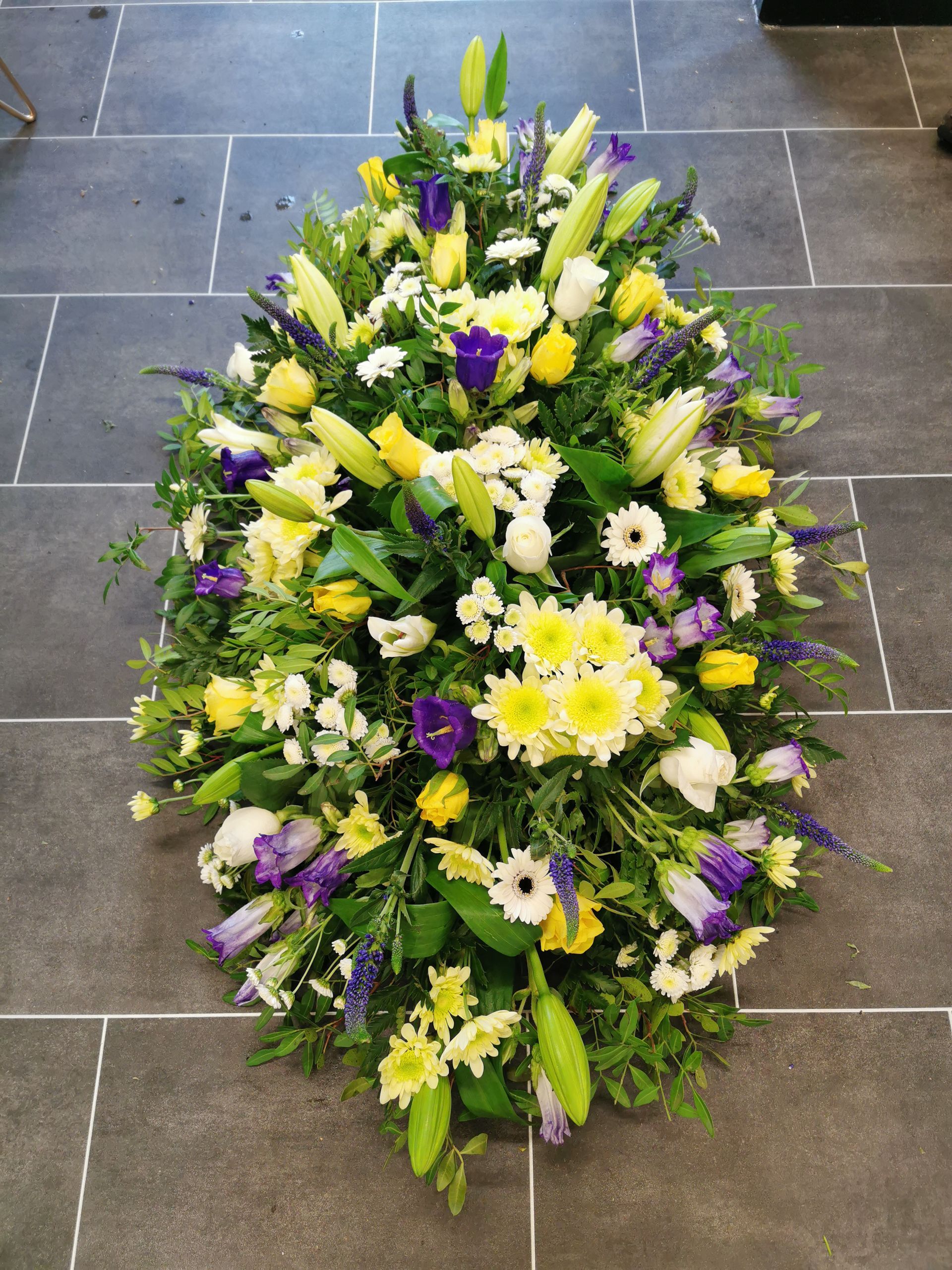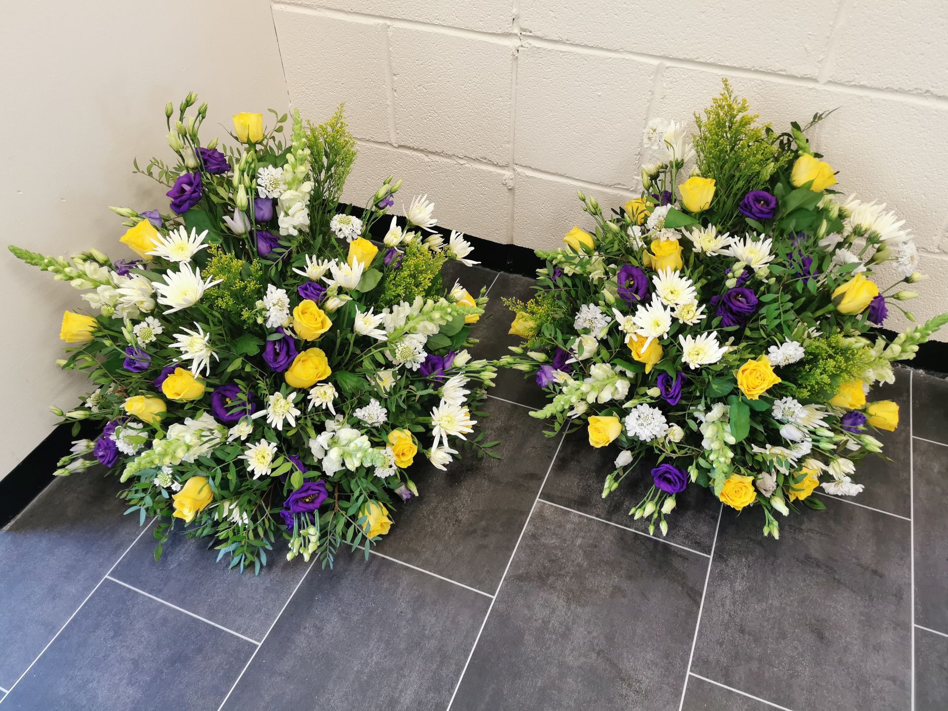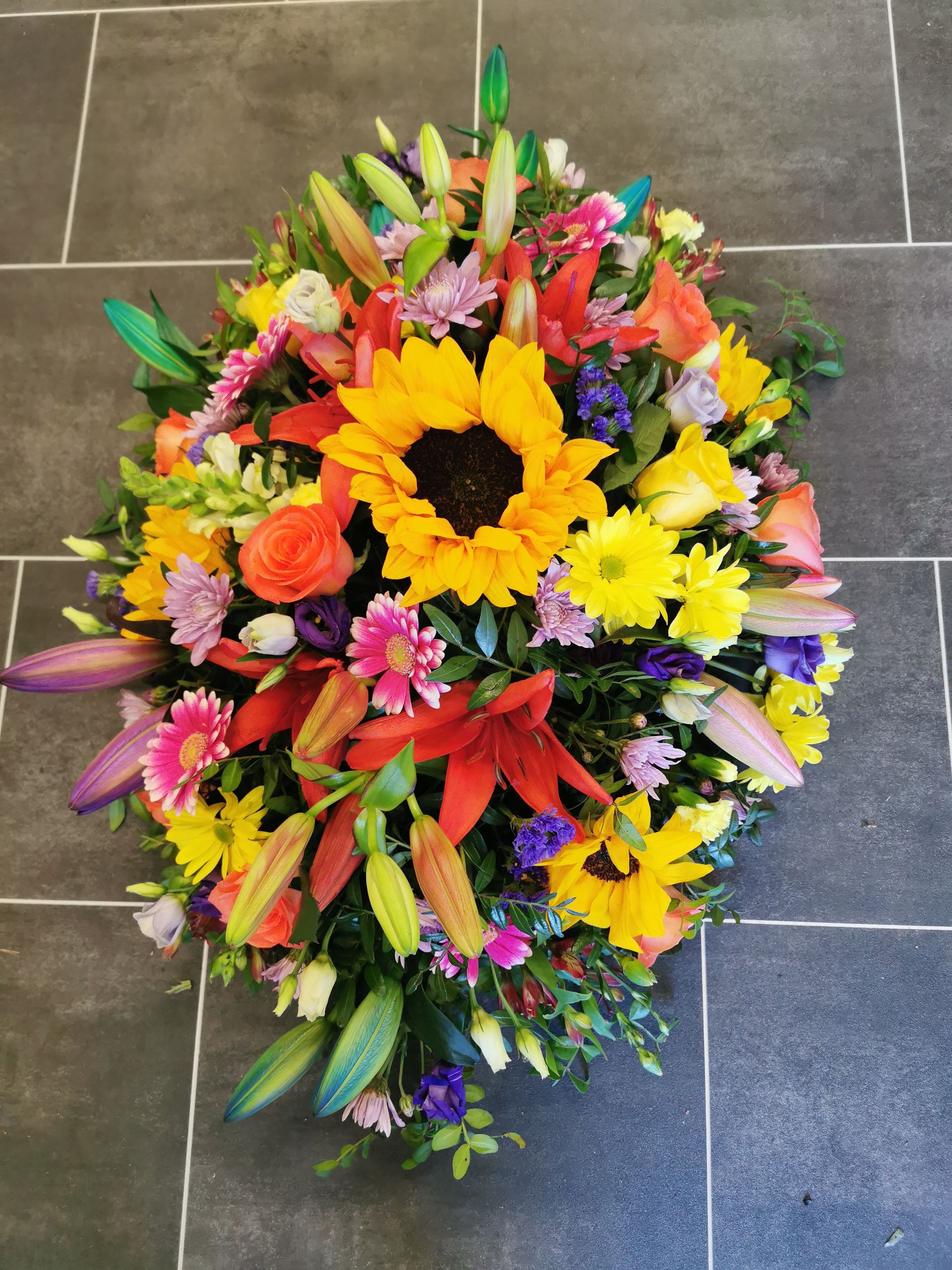 Circular posies in a dish from £25, Coffin sprays vary on flowers & sizes required. Gates to heaven £85