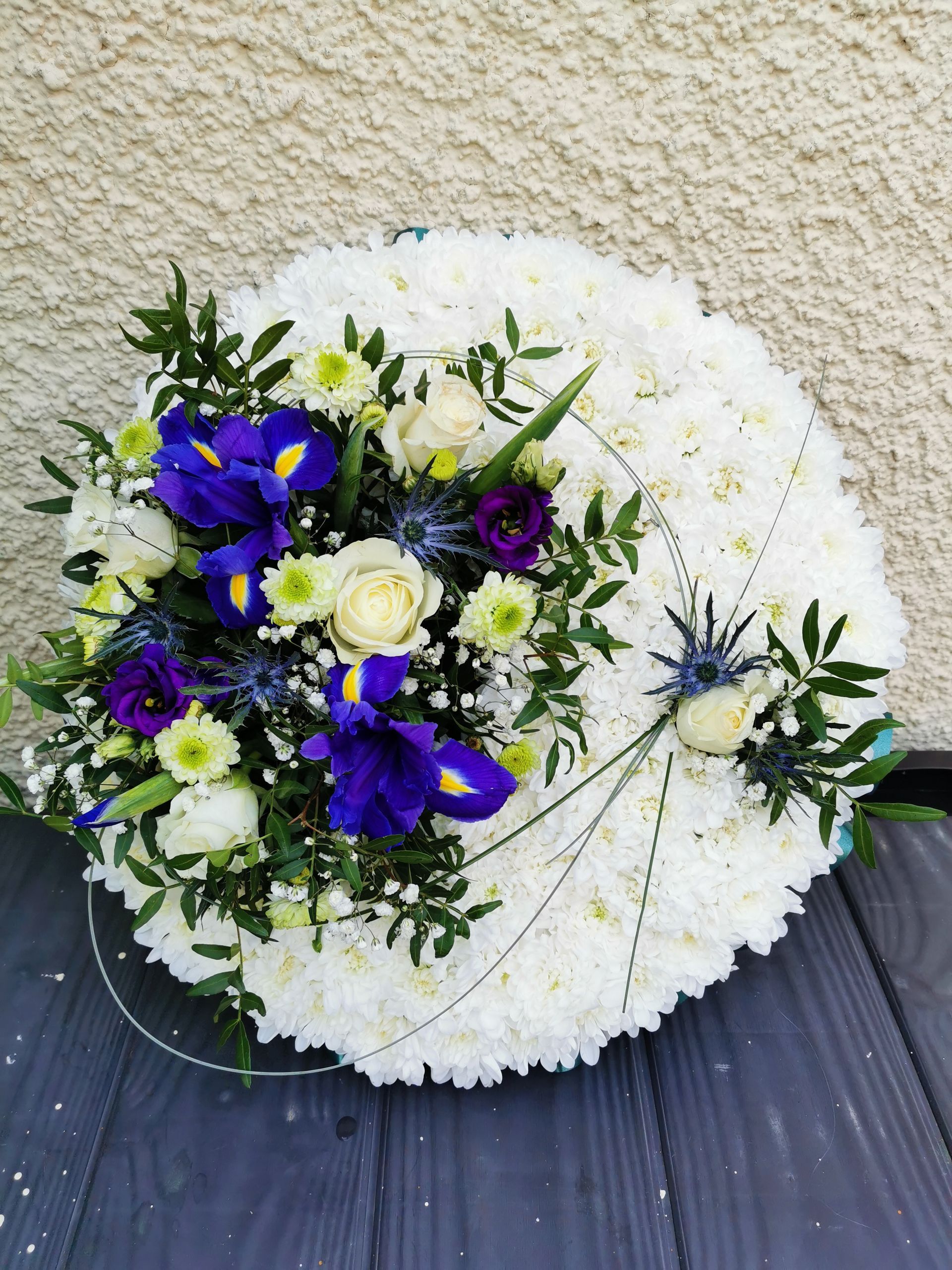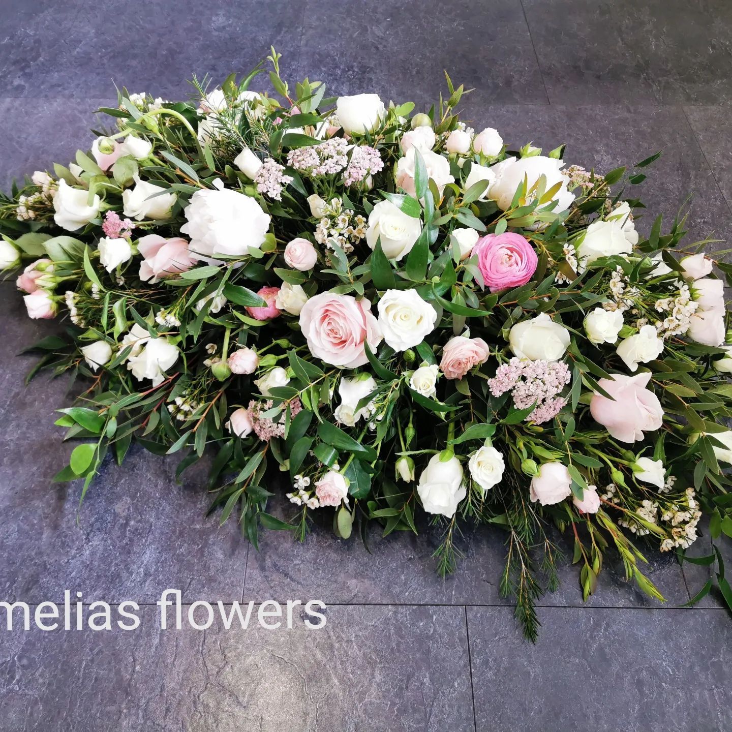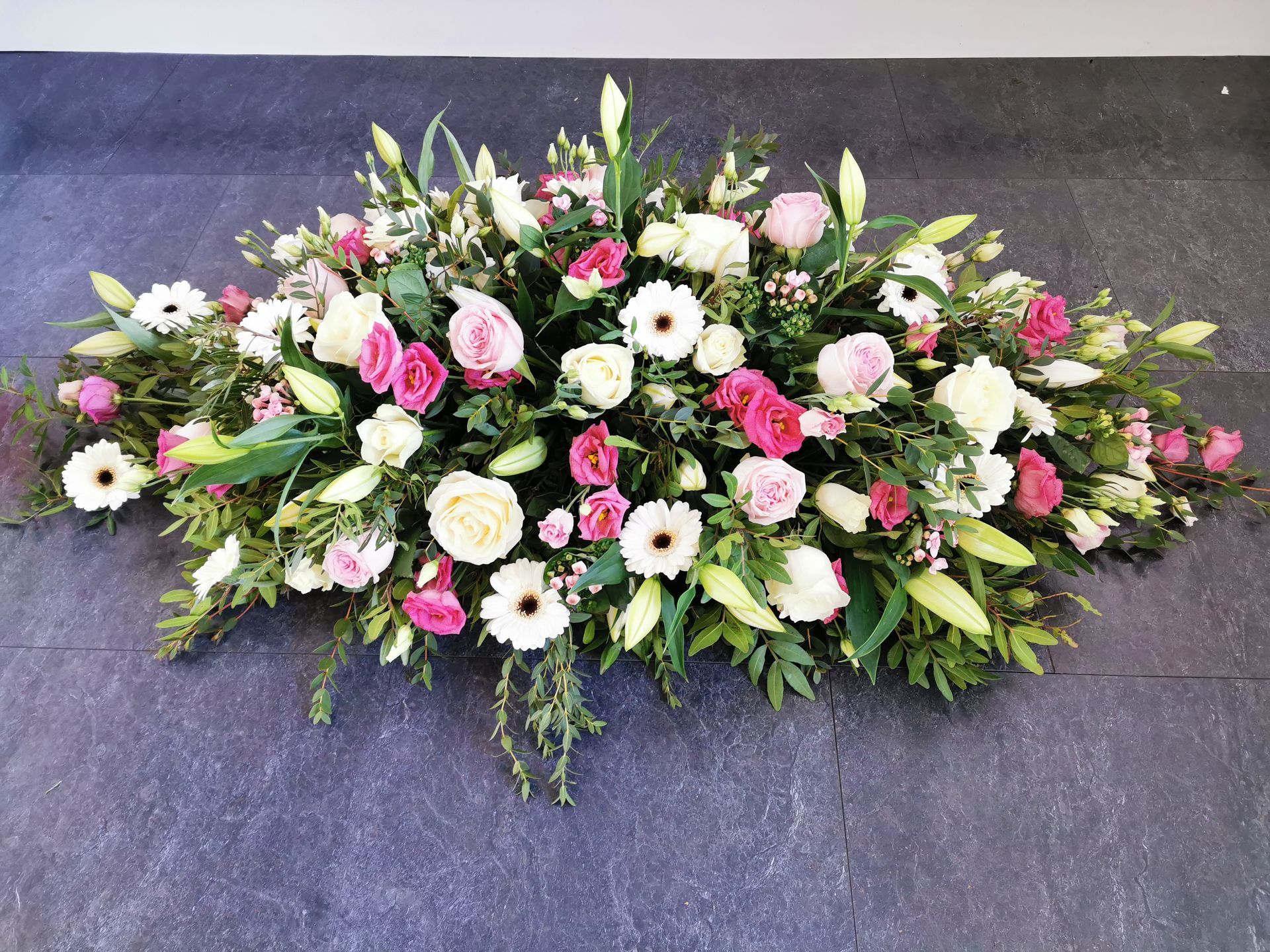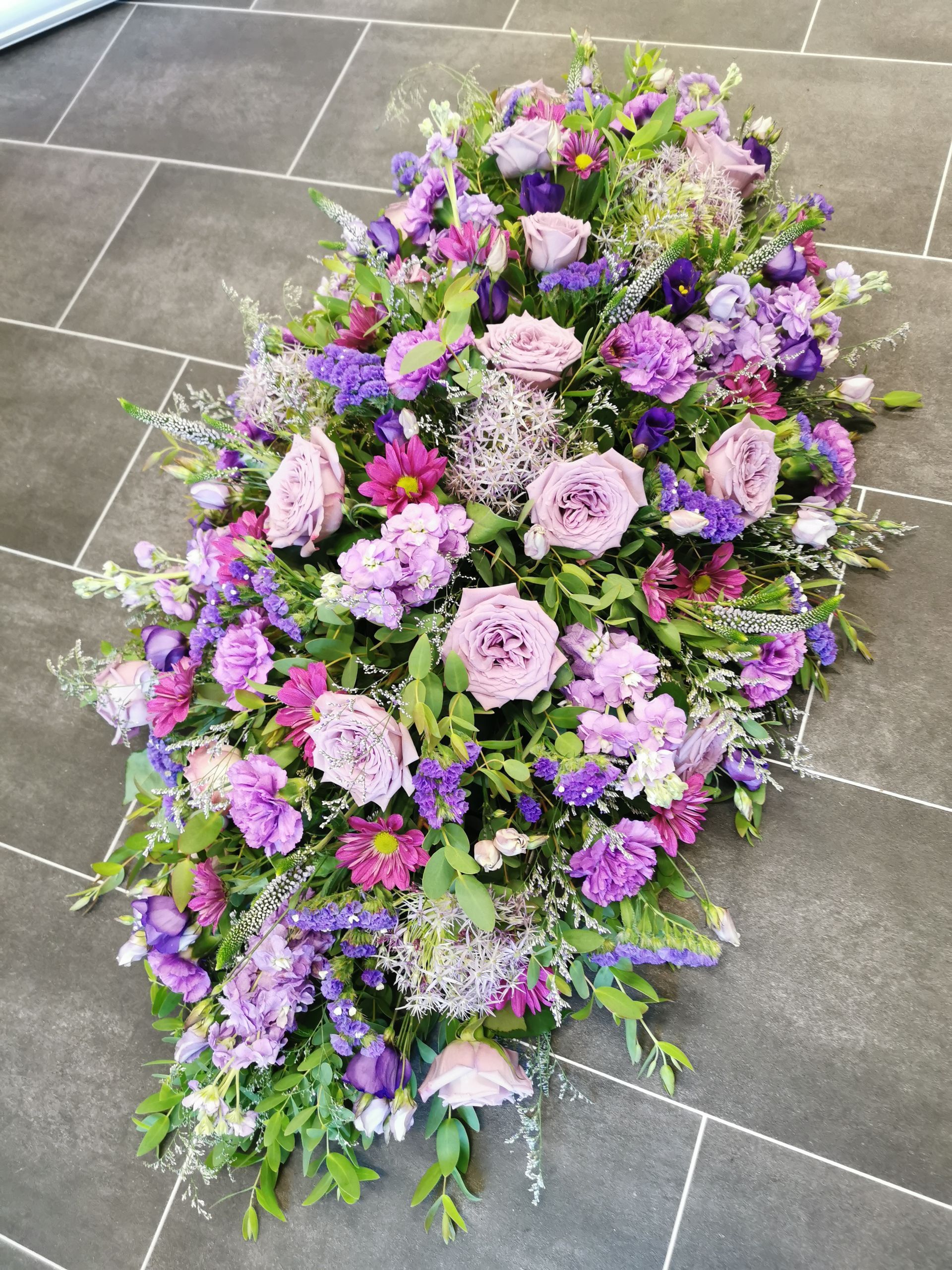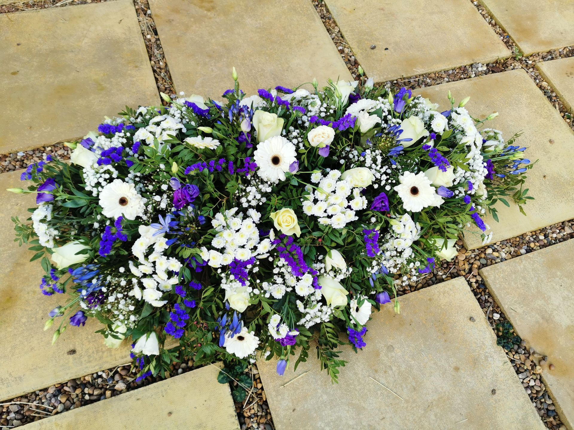 Circular posies in a dish from £25, Coffin sprays vary on flowers & sizes required. Gates to heaven £85