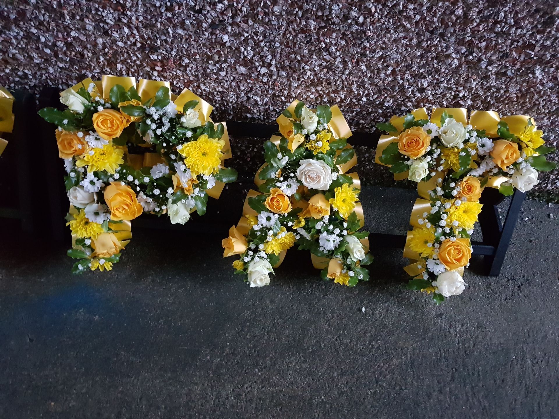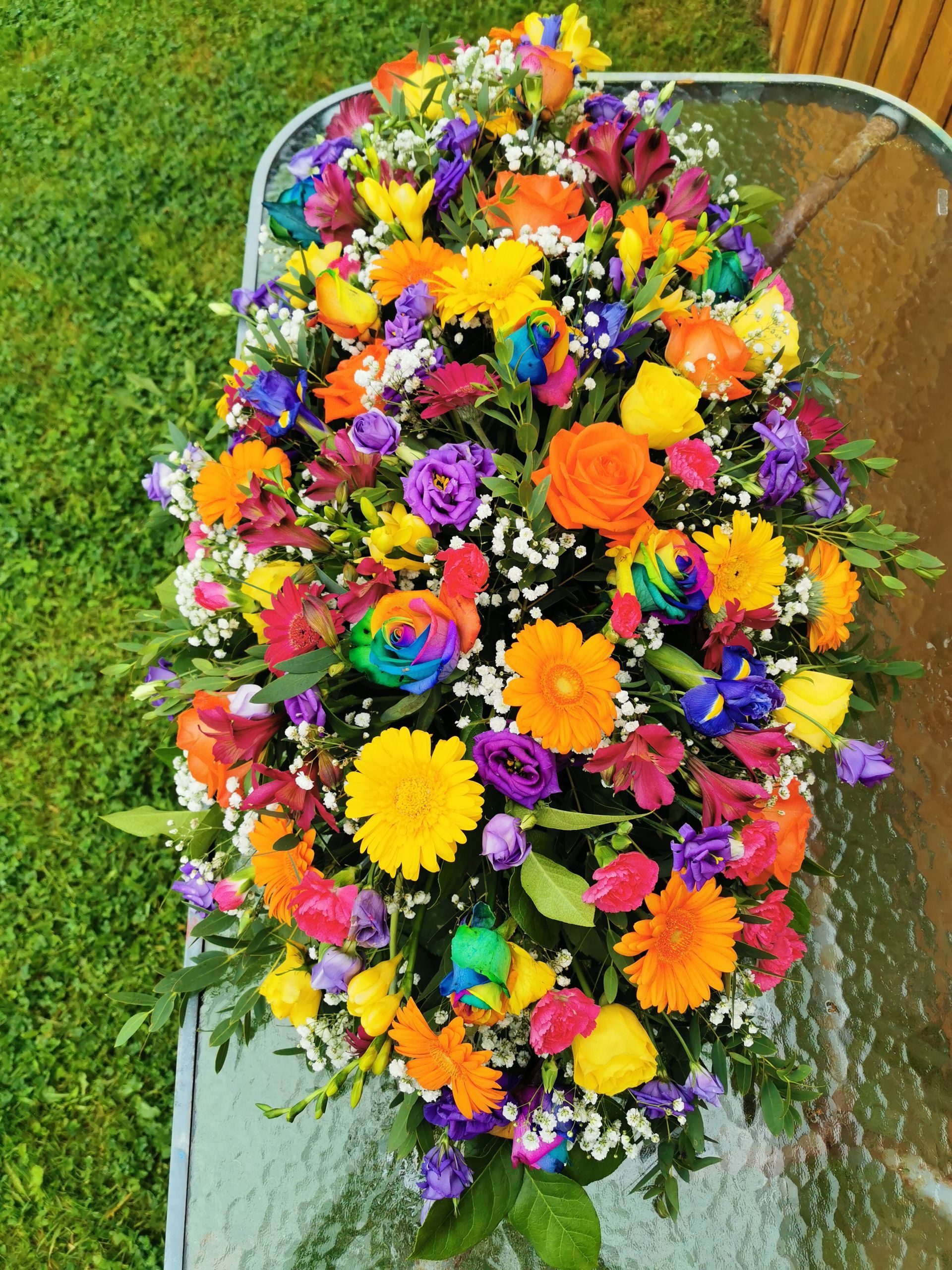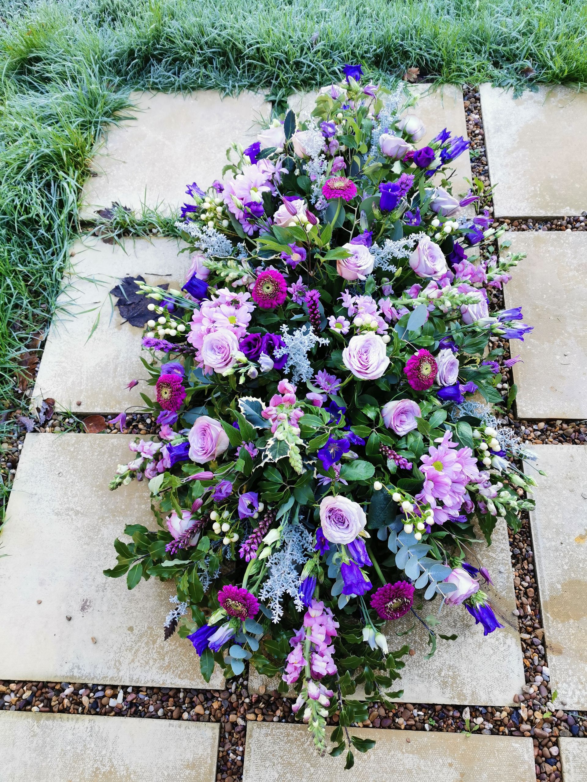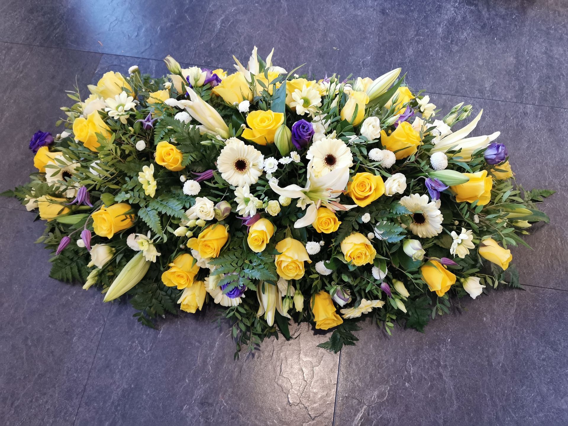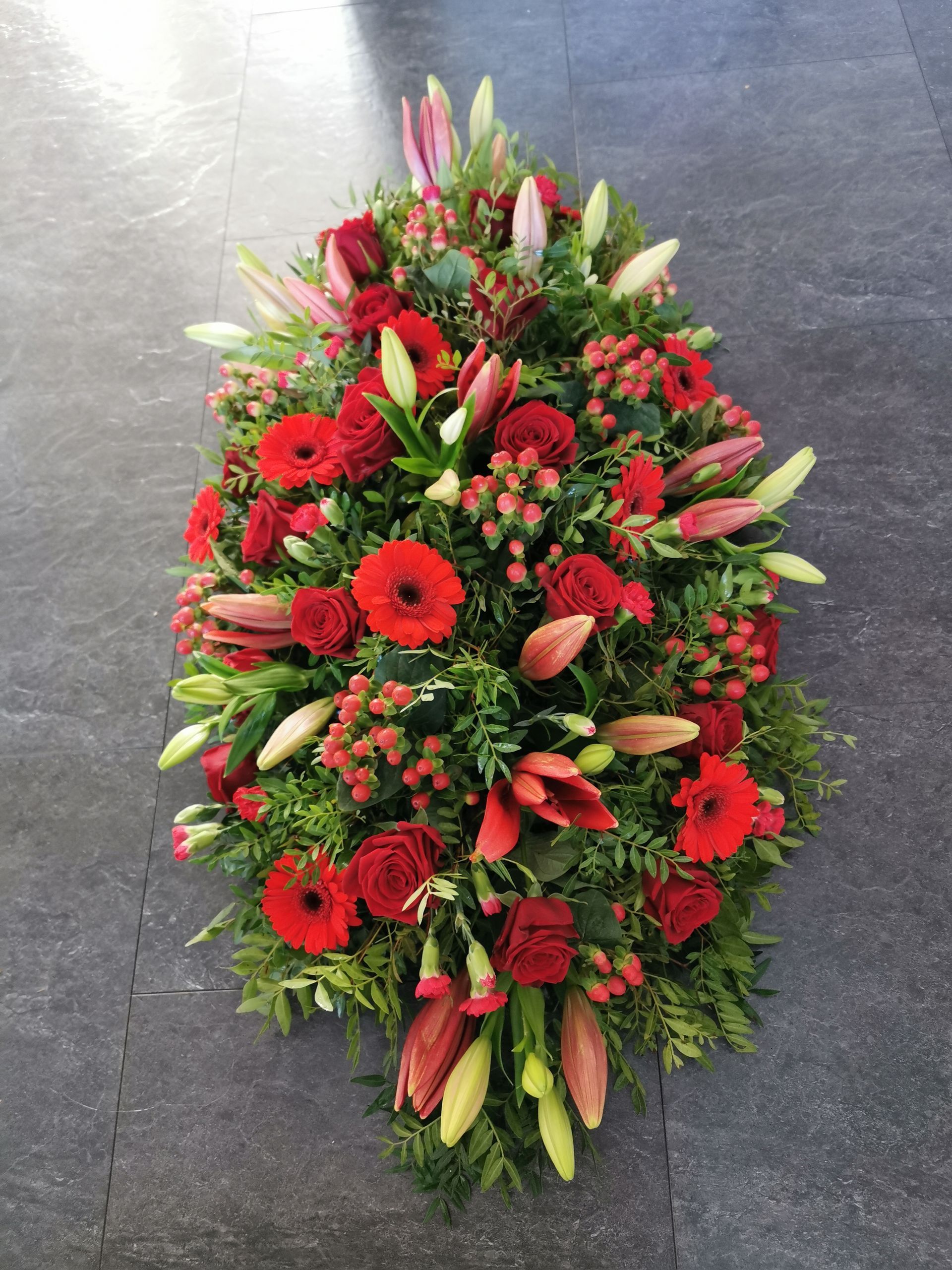 Circular posies in a dish from £25, Coffin sprays vary on flowers & sizes required. Gates to heaven £85