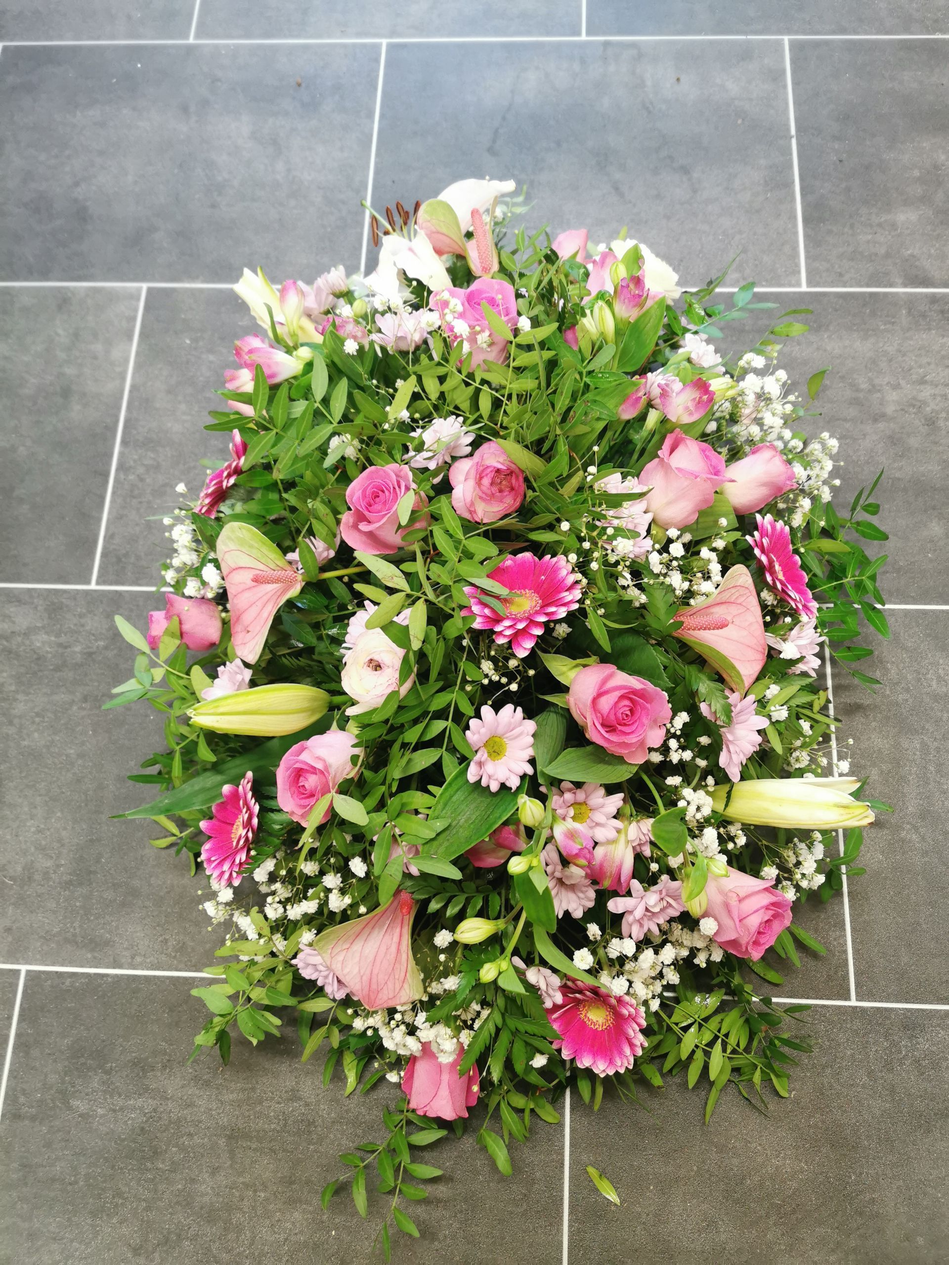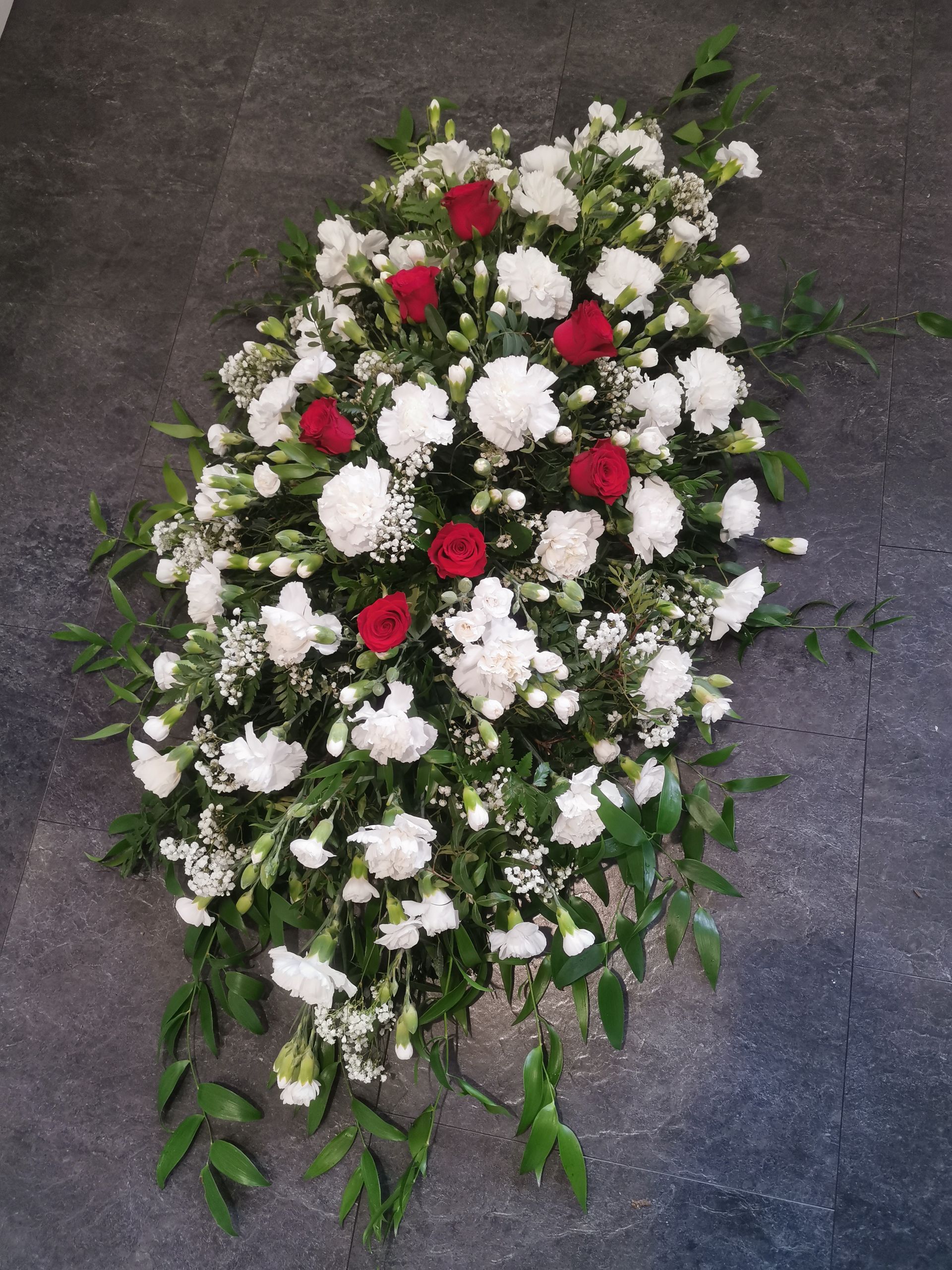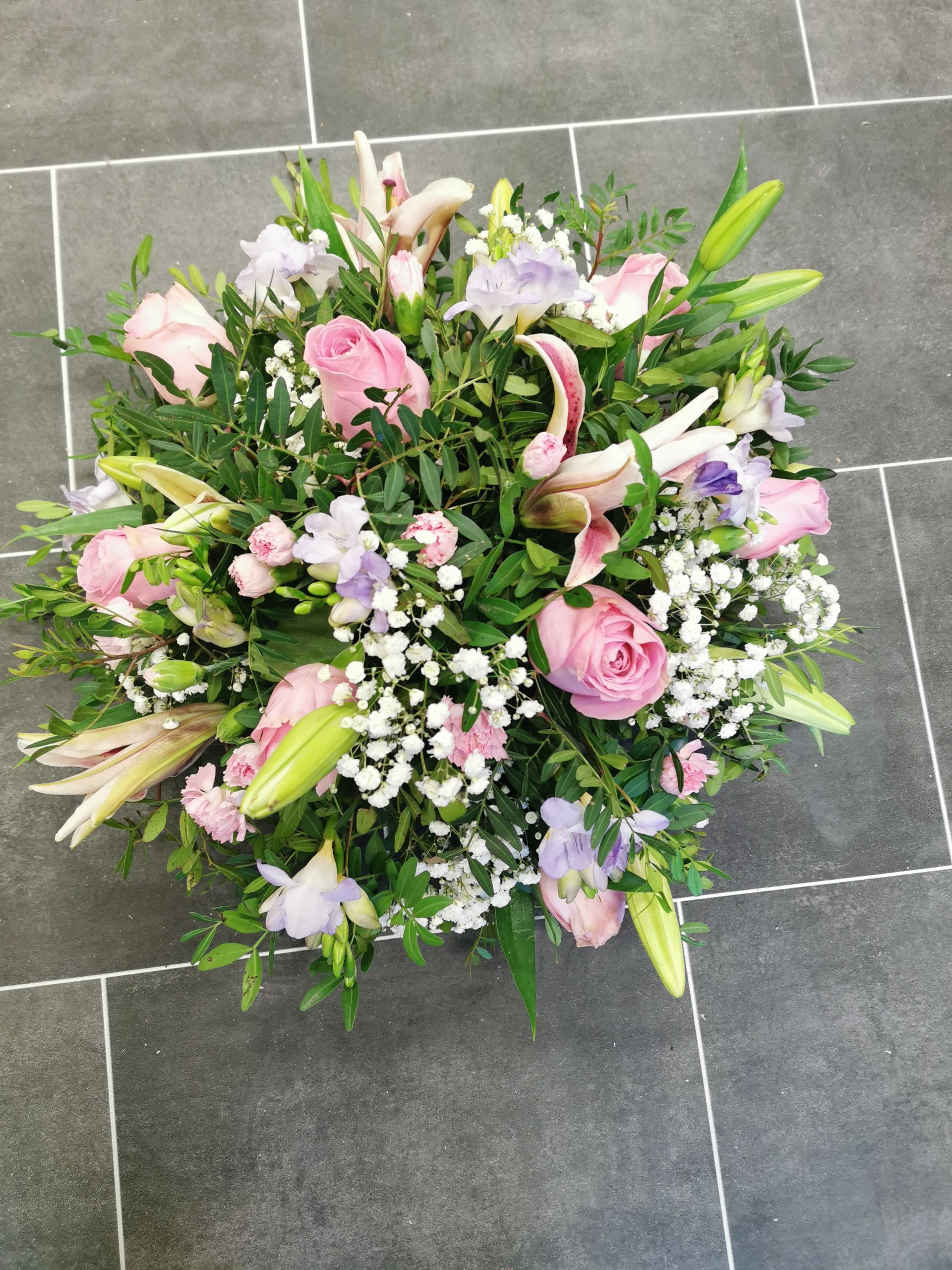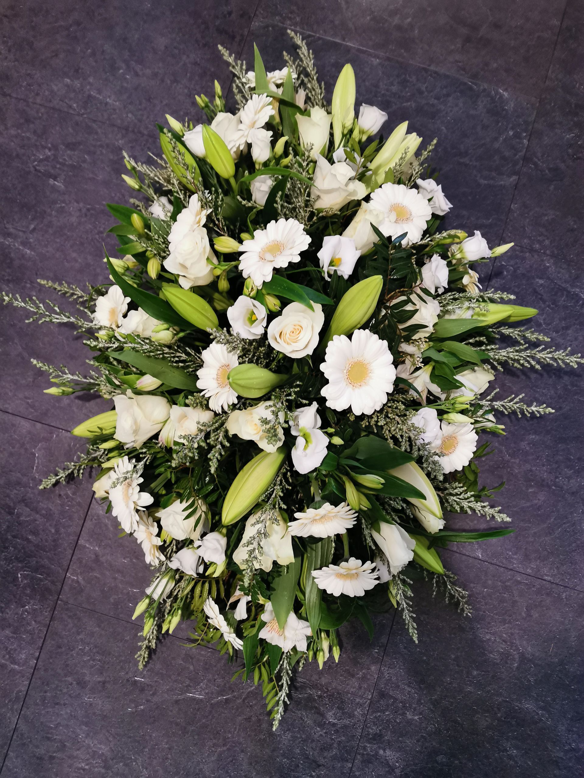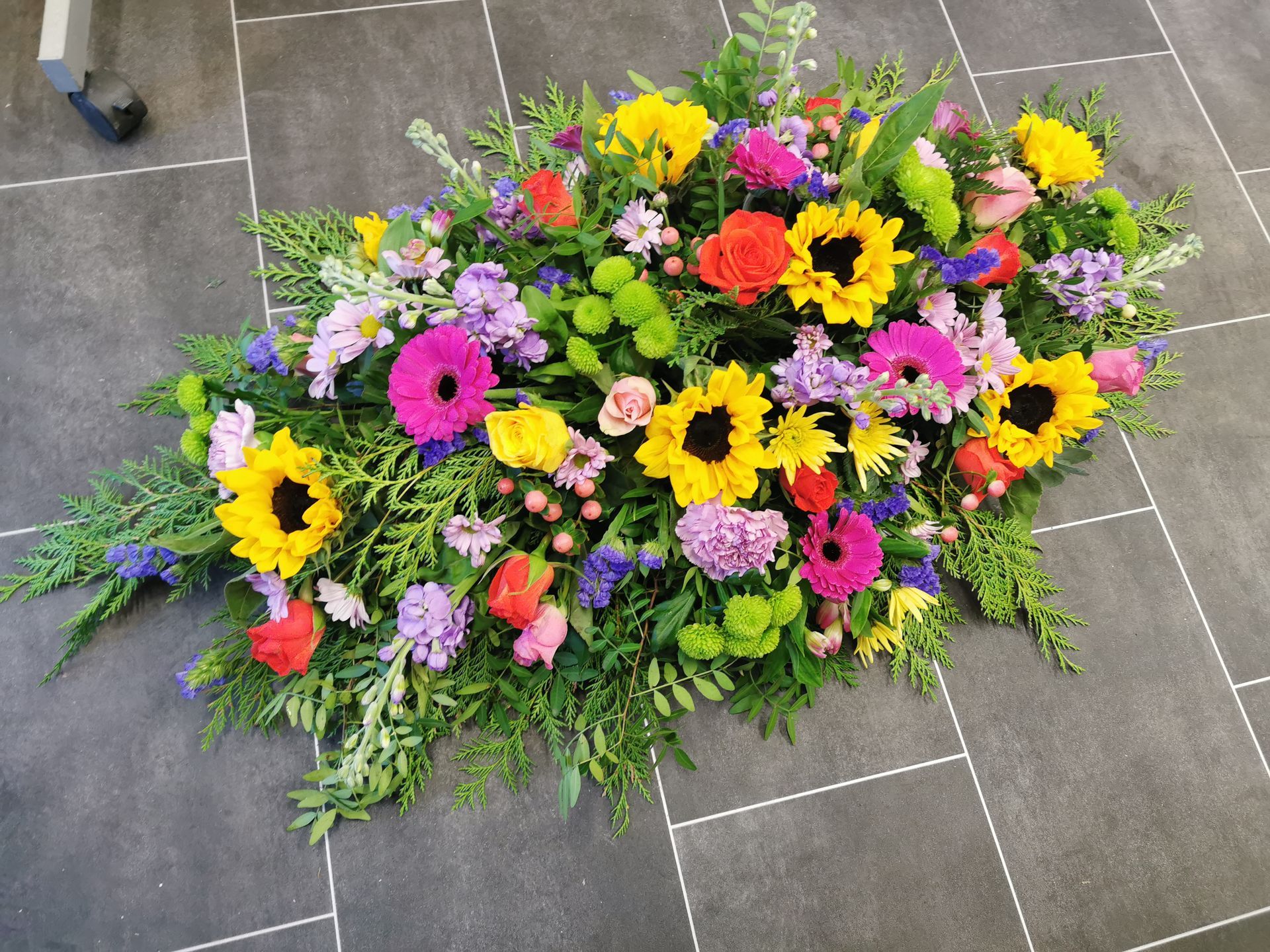 Circular posies in a dish from £25, Coffin sprays vary on flowers & sizes required. Gates to heaven £85