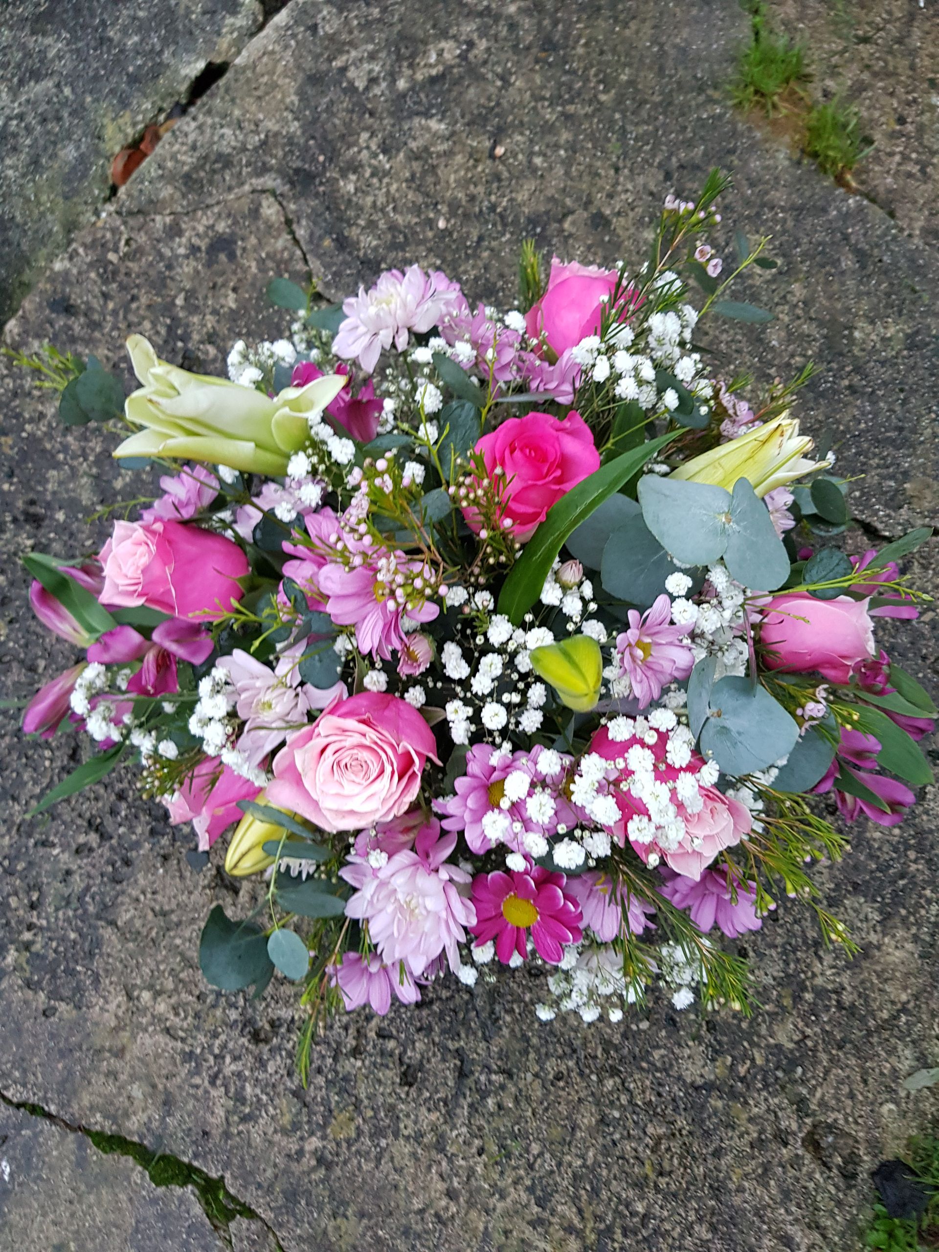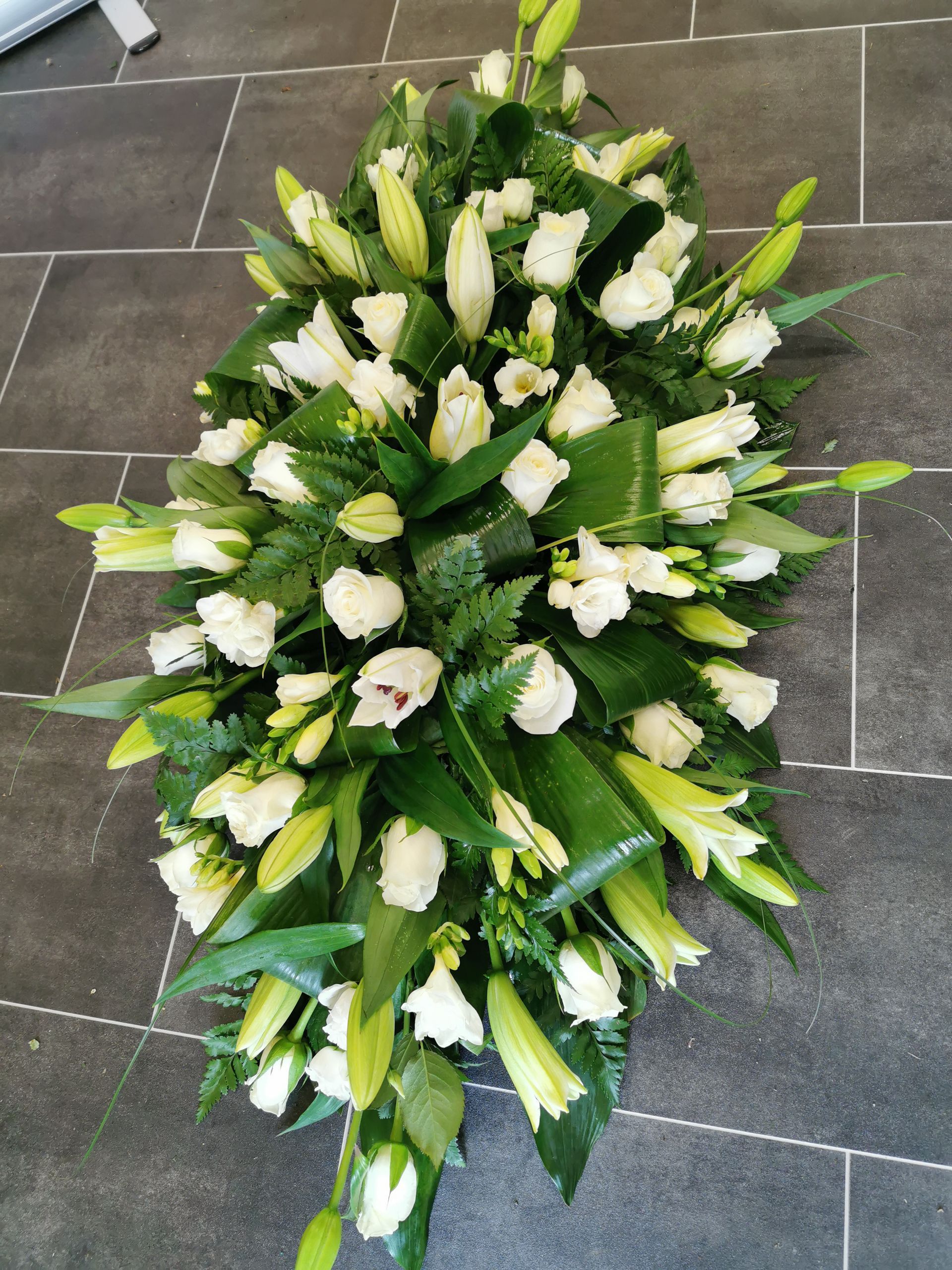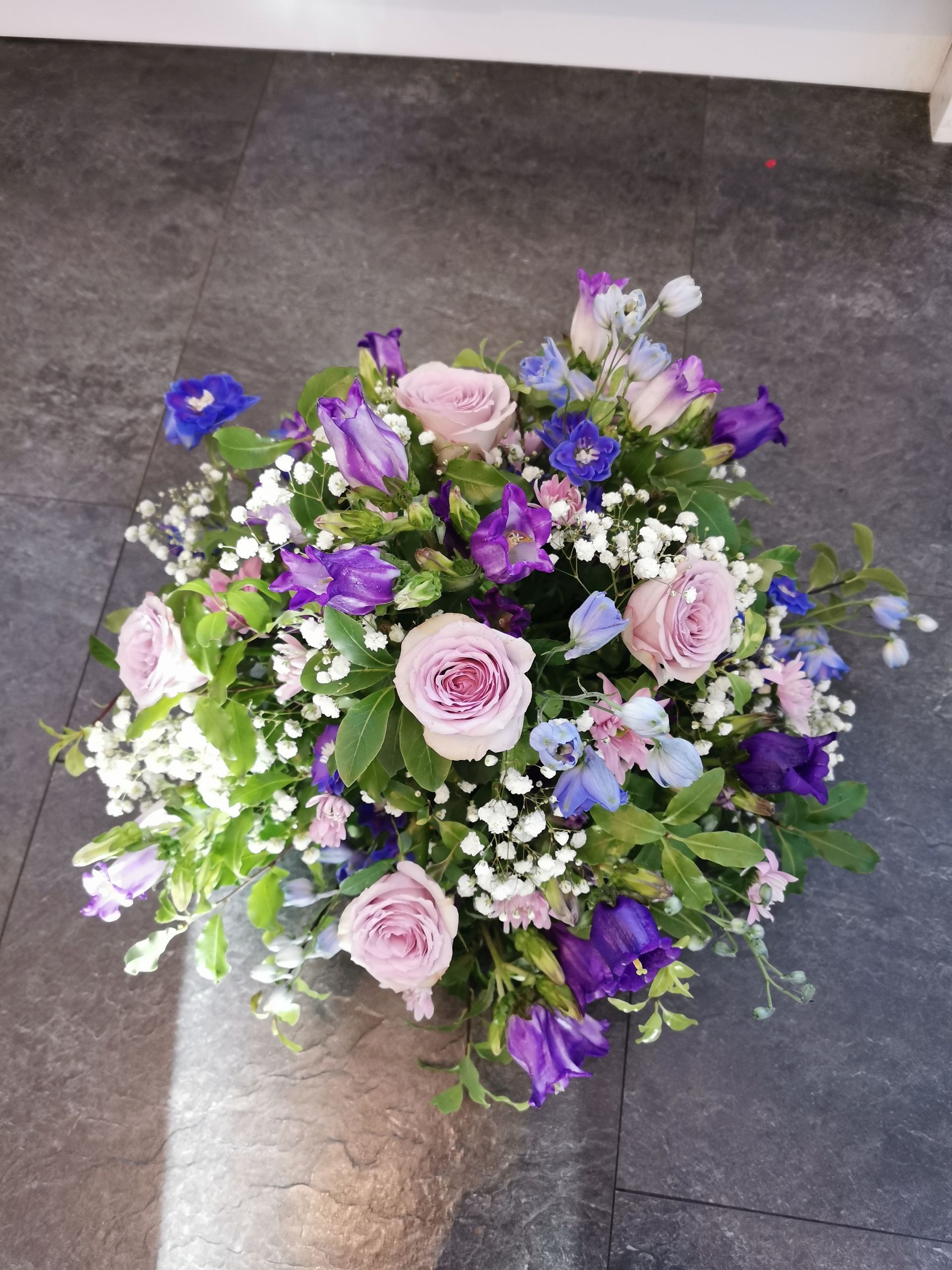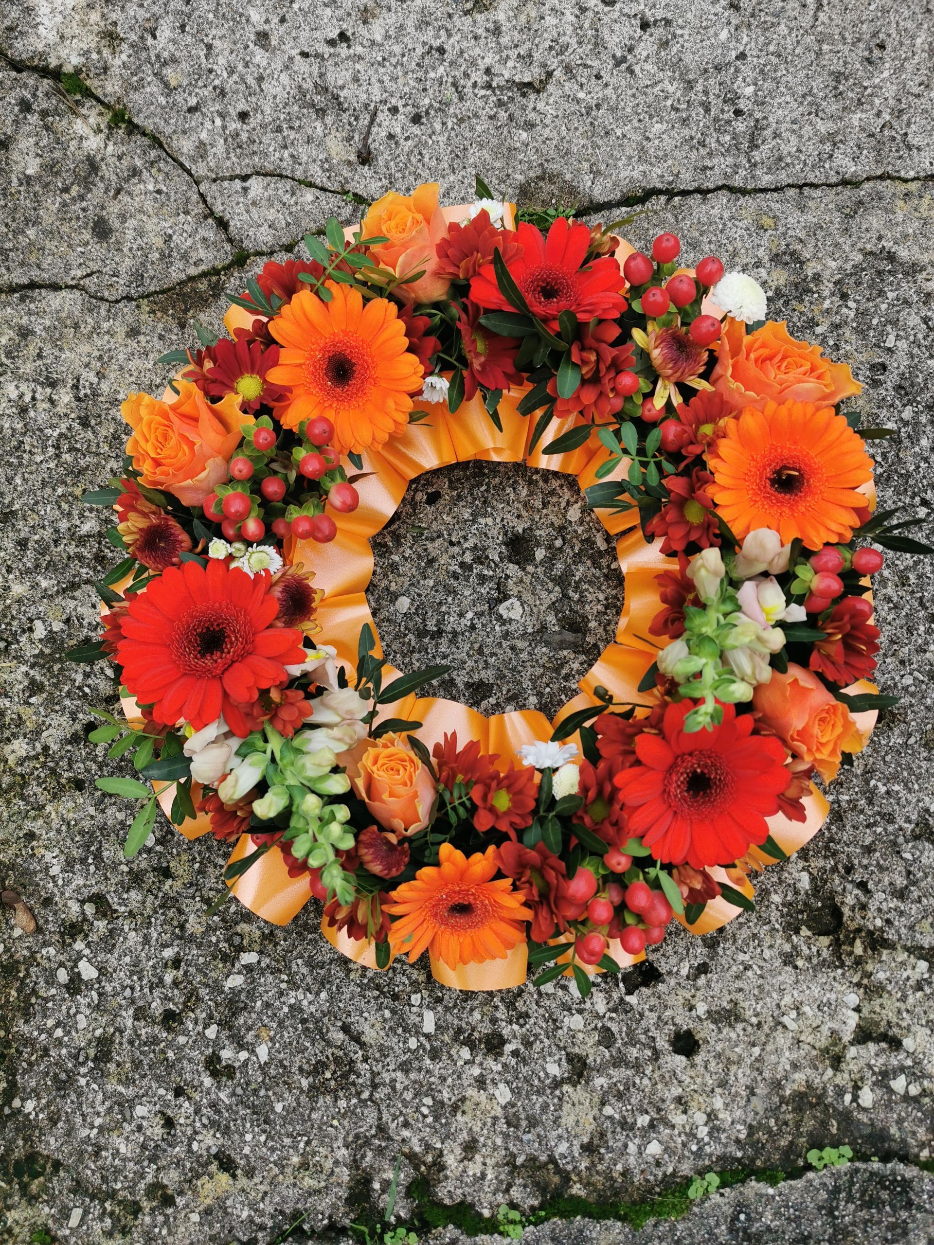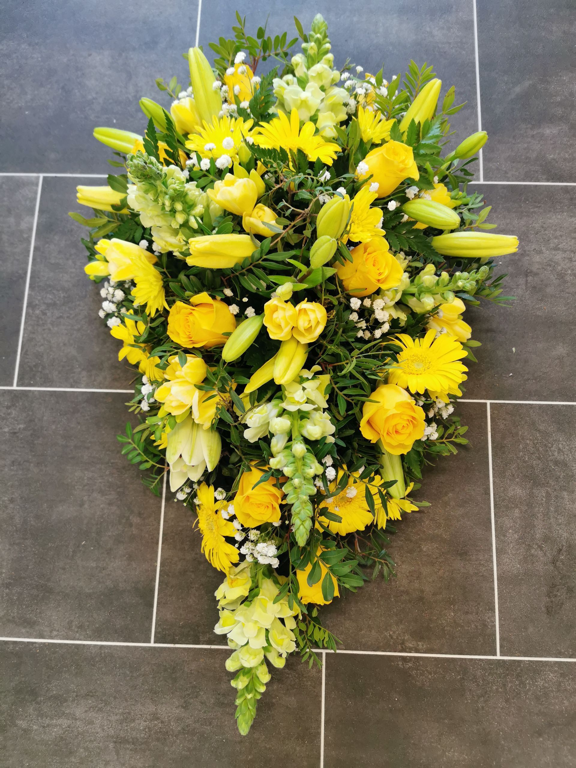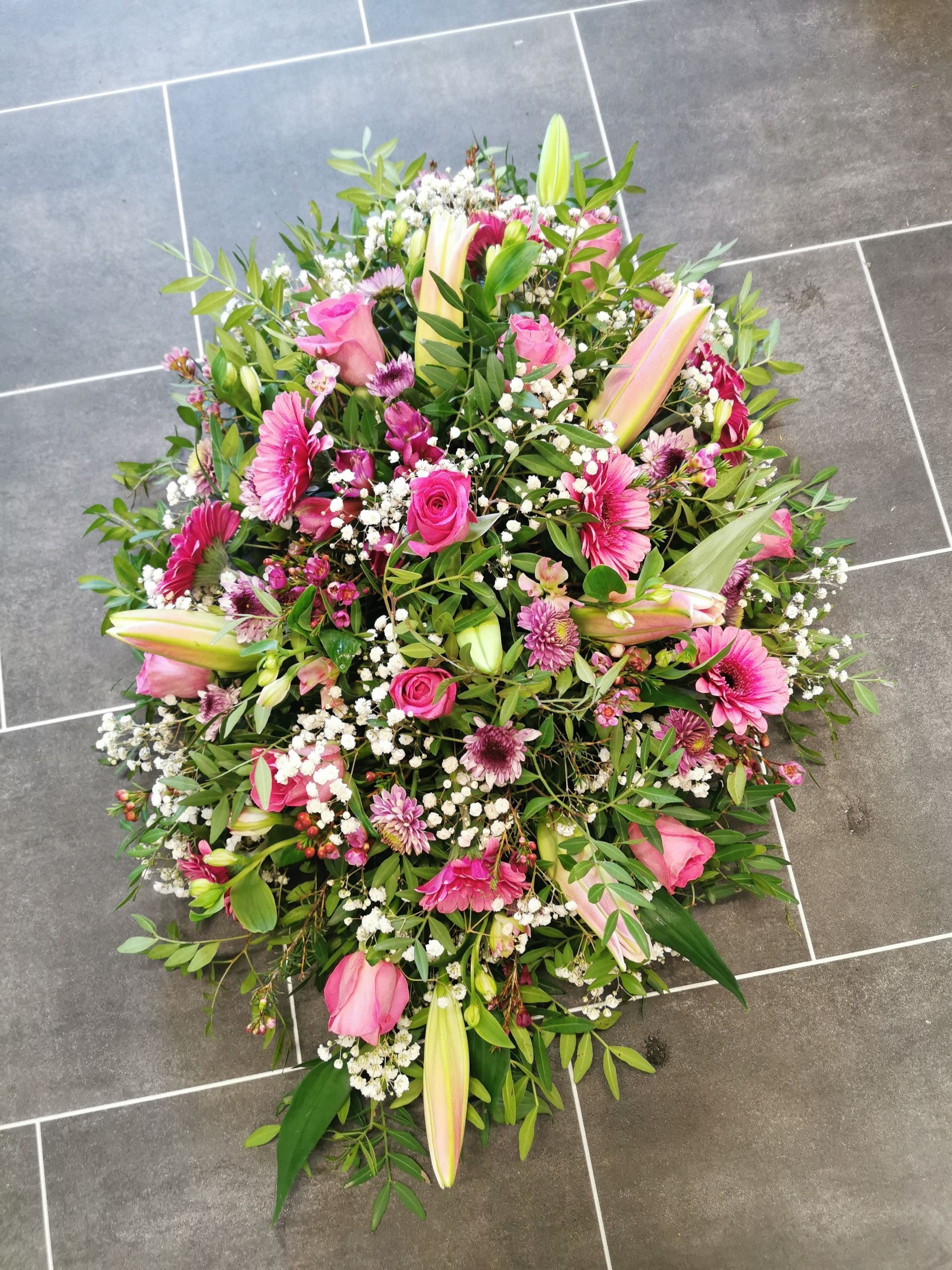 Circular posies in a dish from £25, Coffin sprays vary on flowers & sizes required. Gates to heaven £85