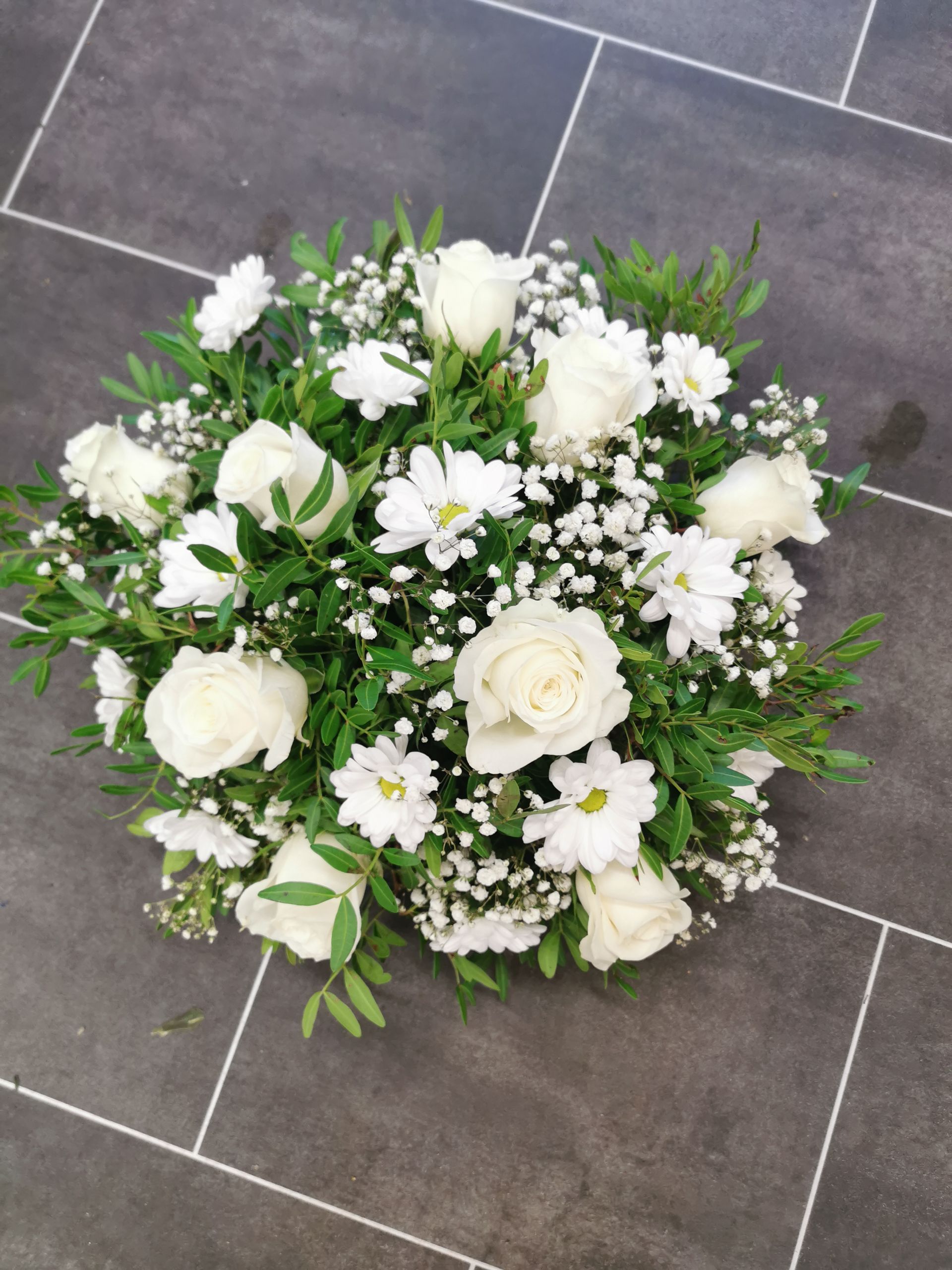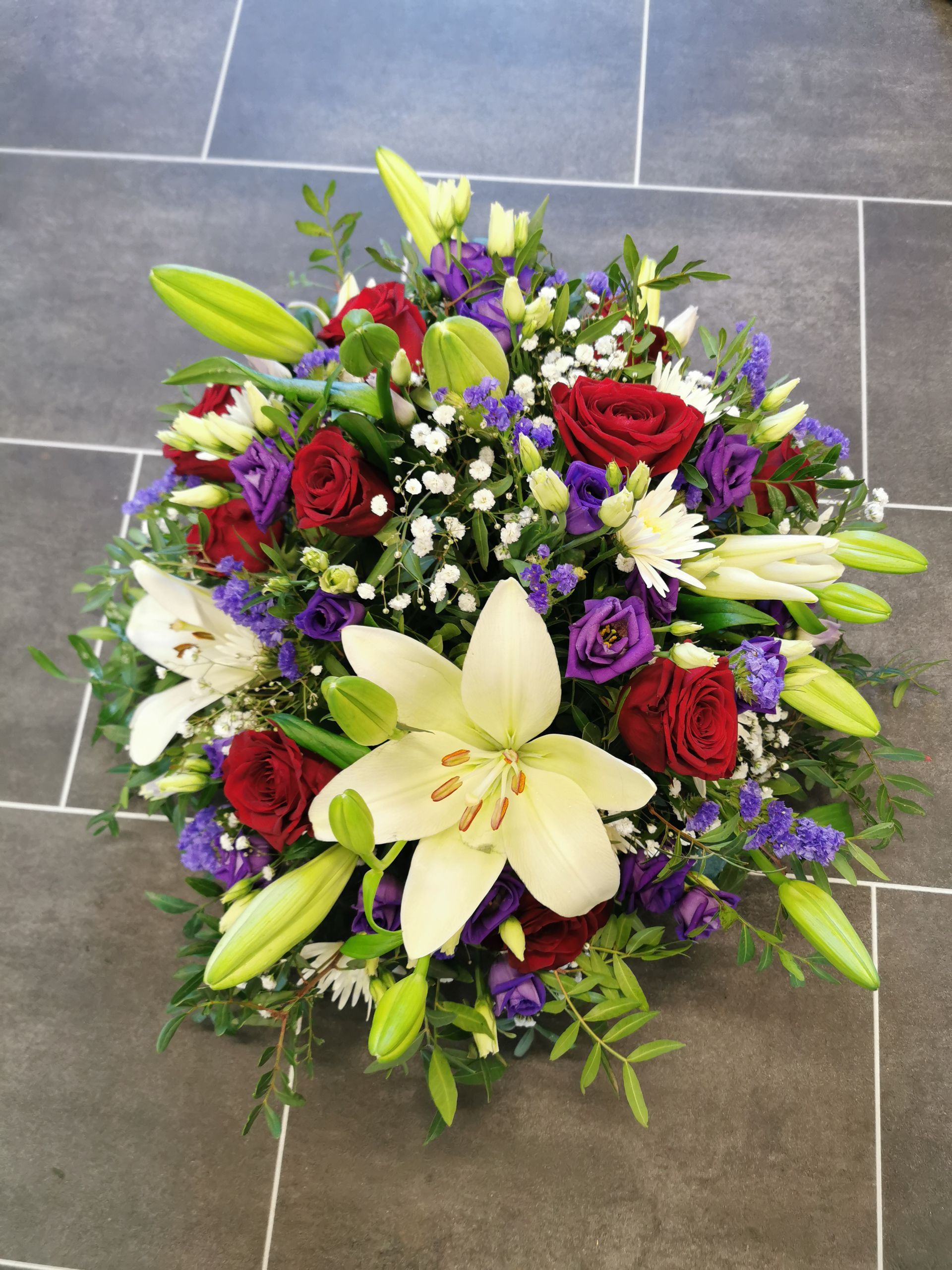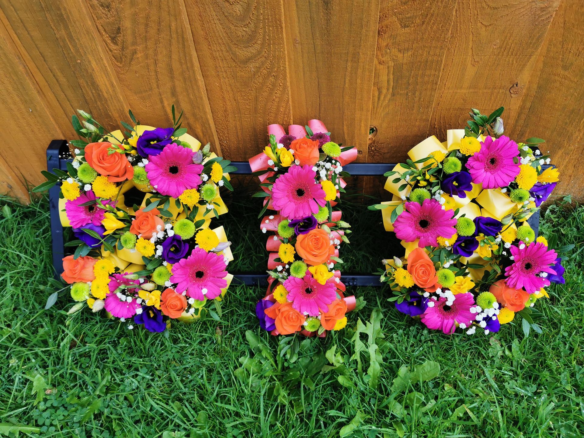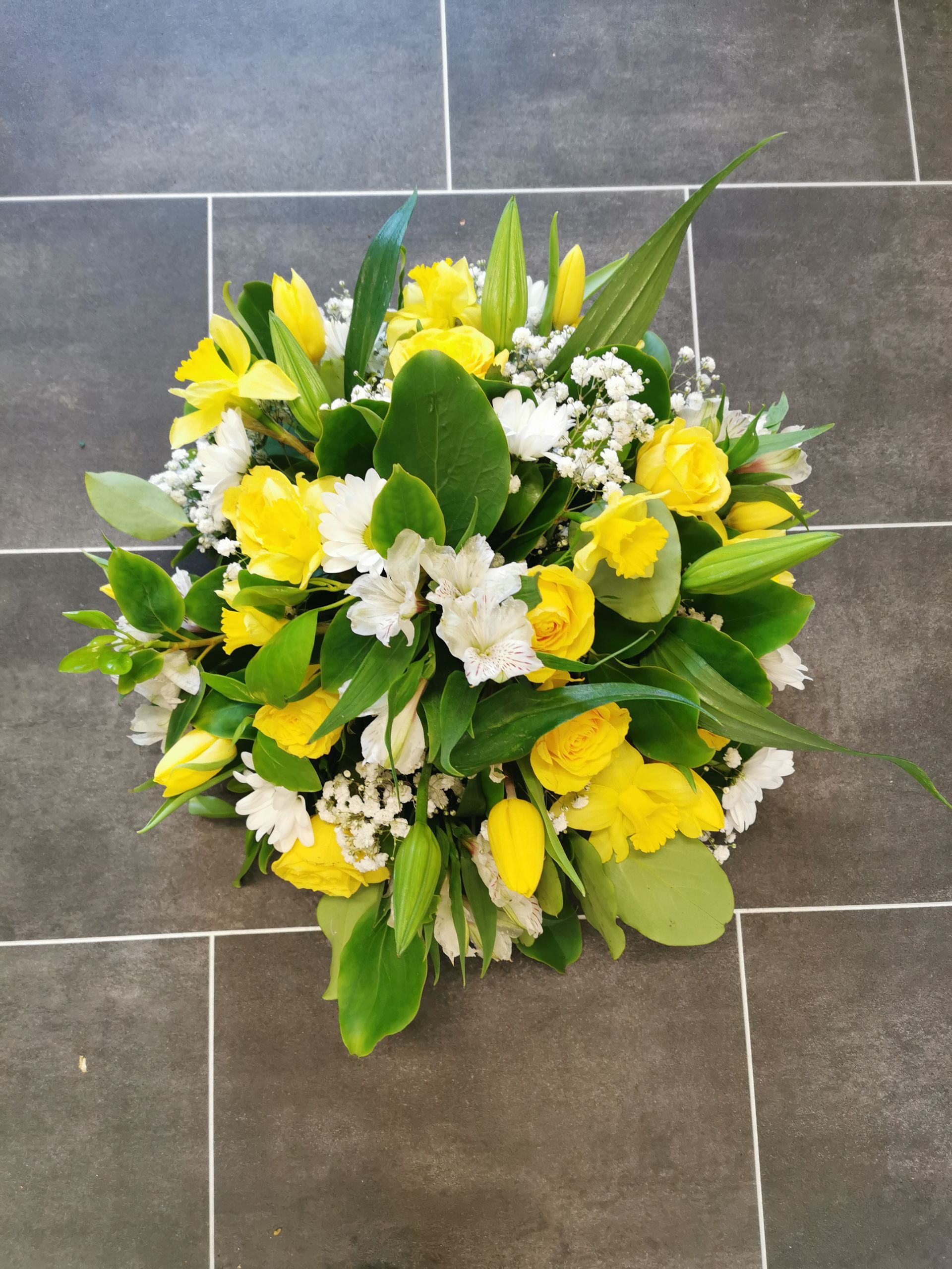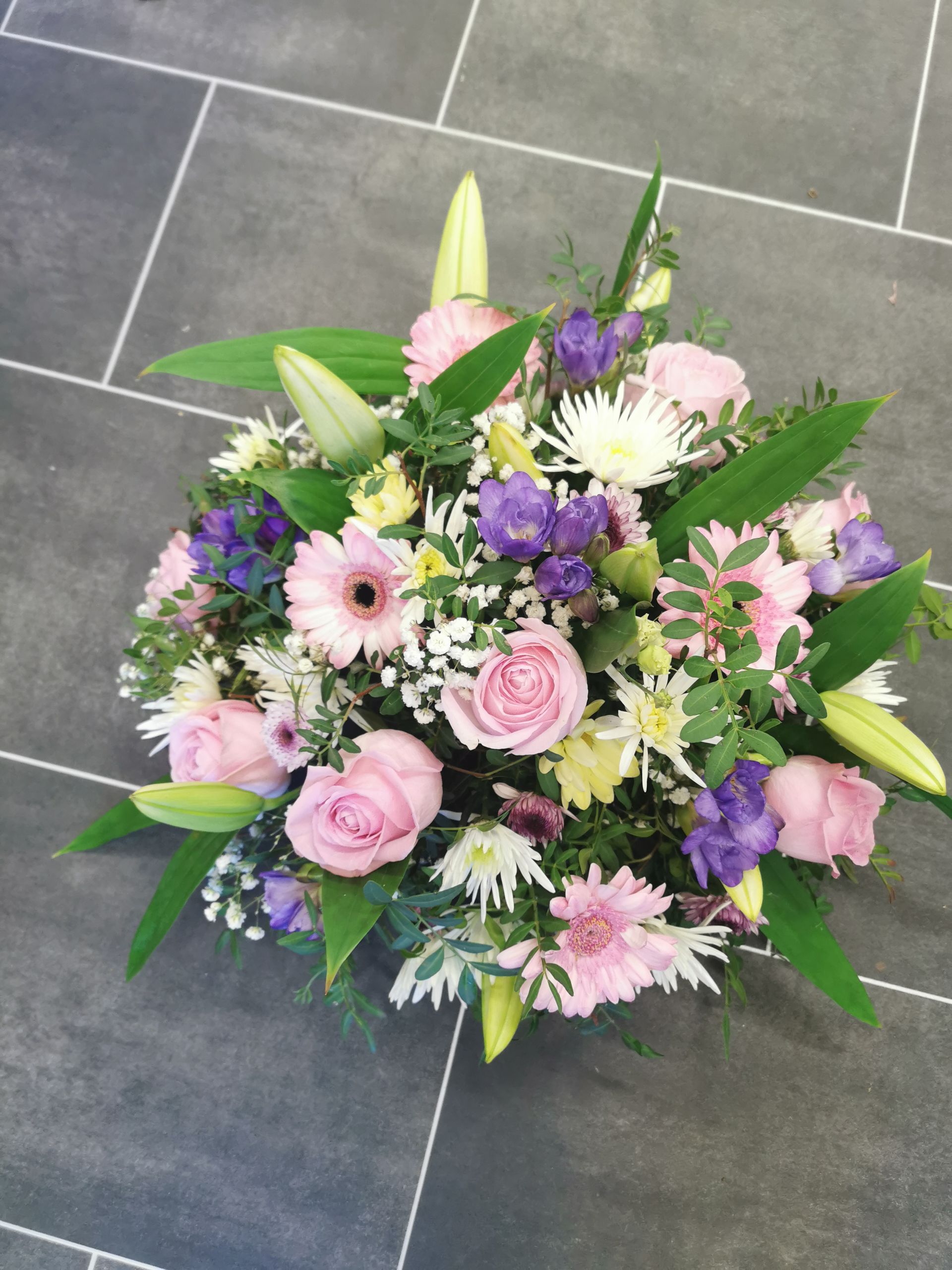 Circular posies in a dish from £25, Coffin sprays vary on flowers & sizes required. Gates to heaven £85