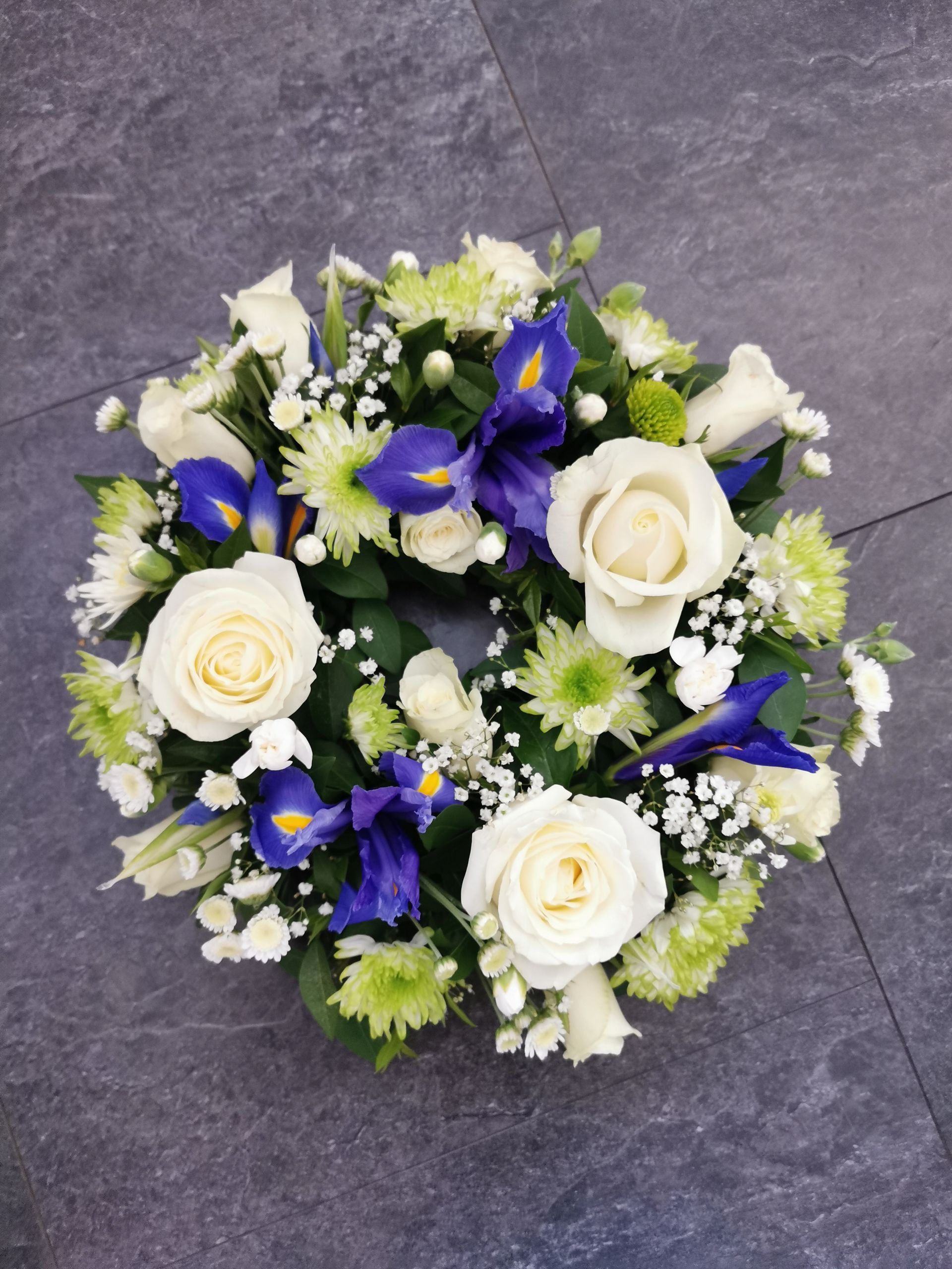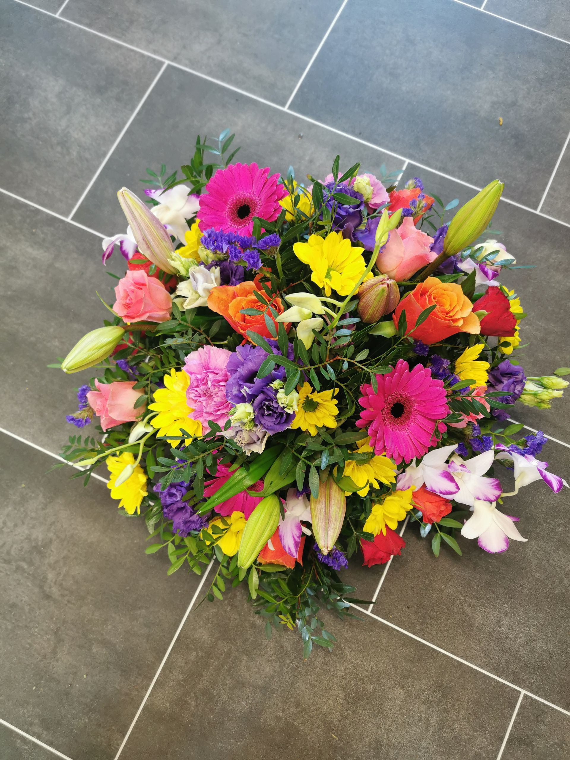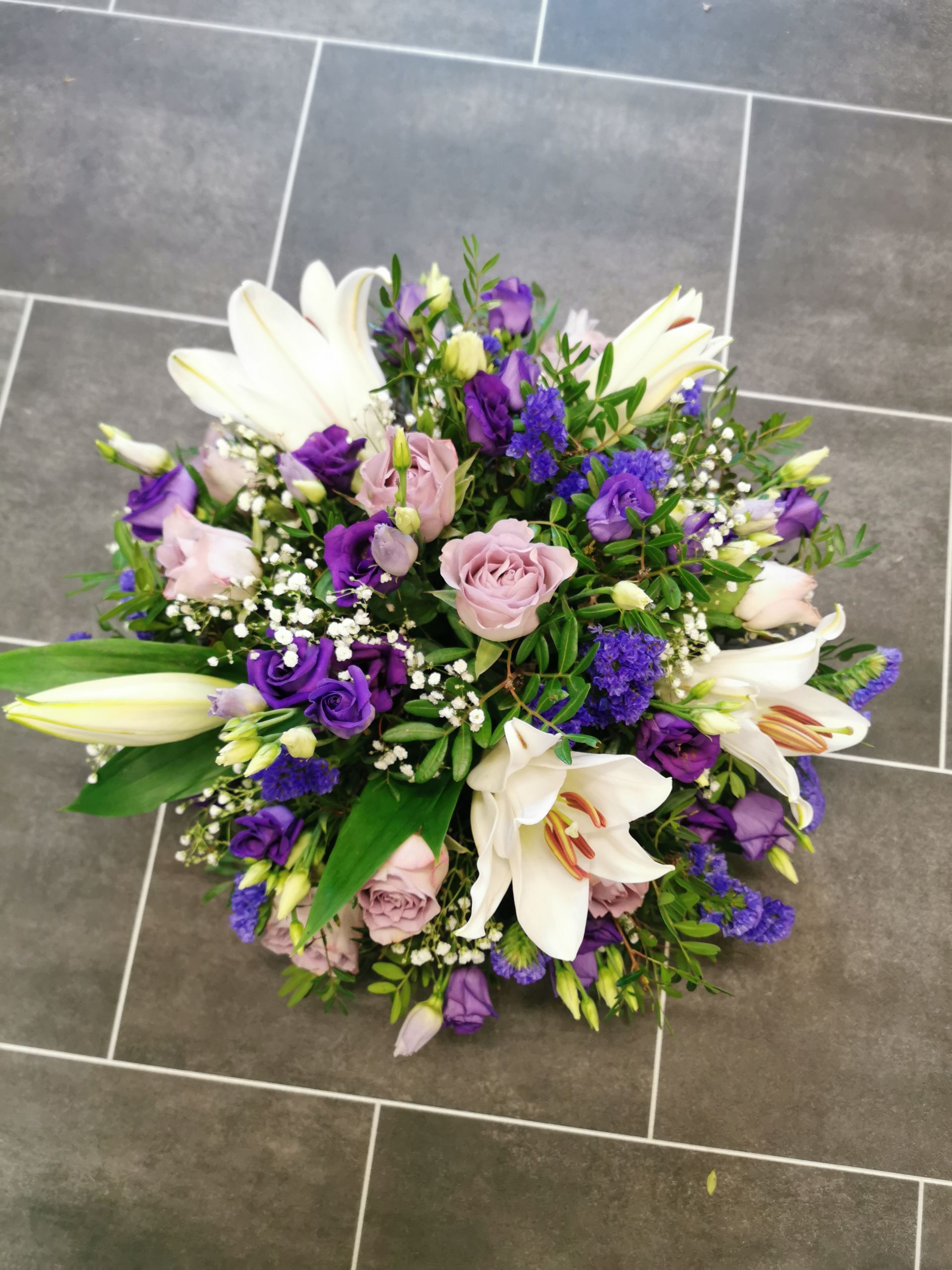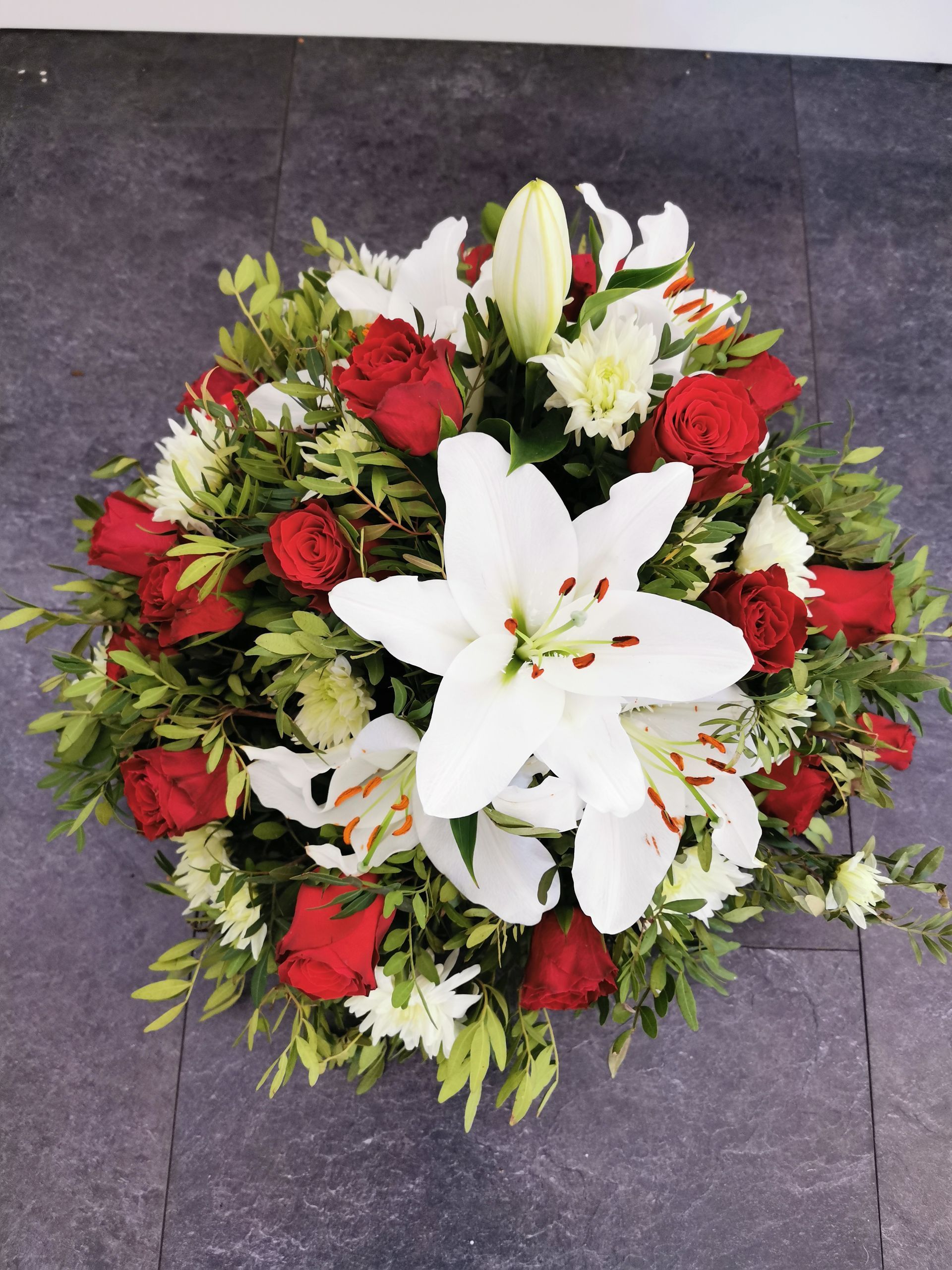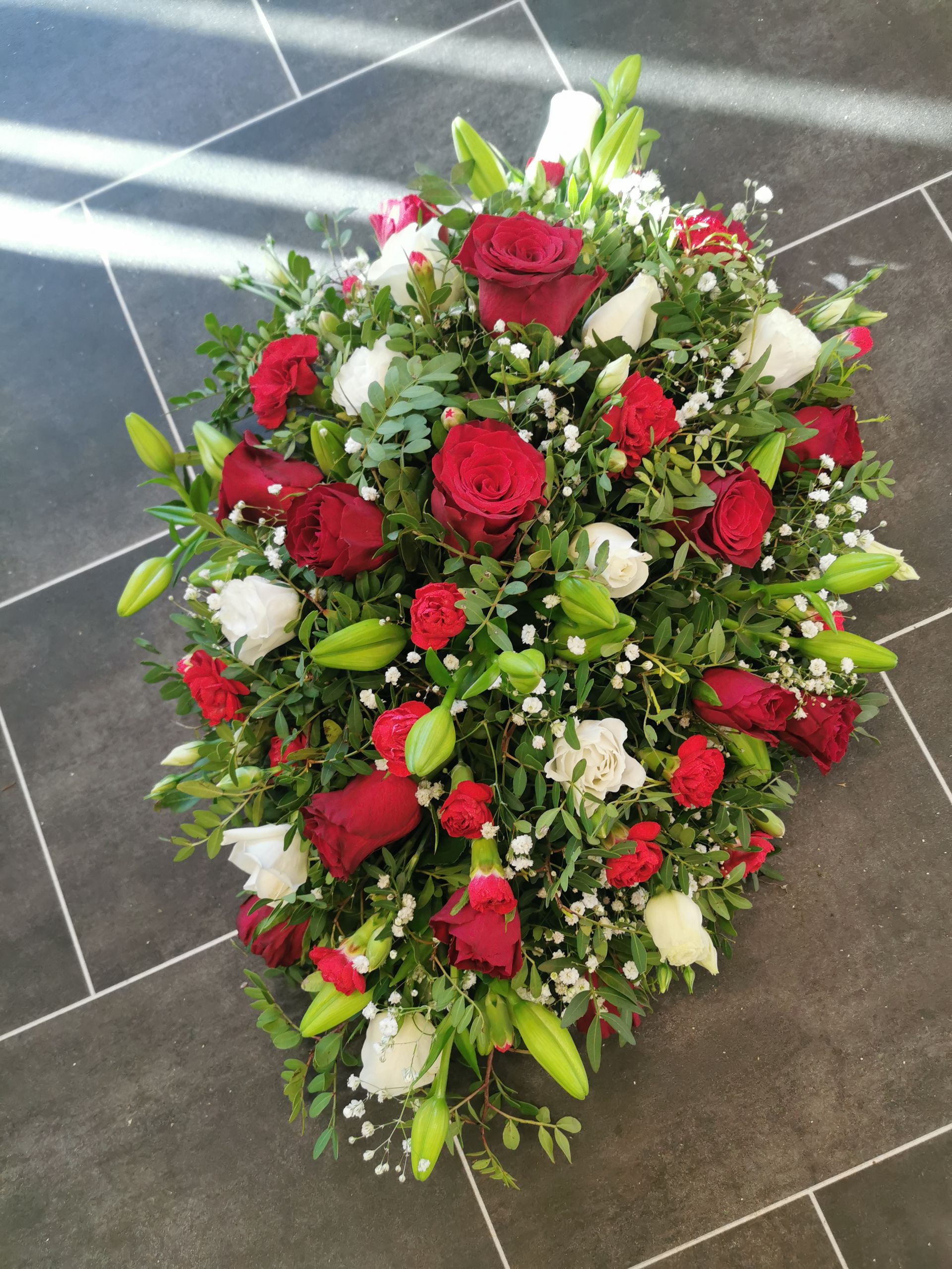 Circular posies in a dish from £25, Coffin sprays vary on flowers & sizes required. Gates to heaven £85