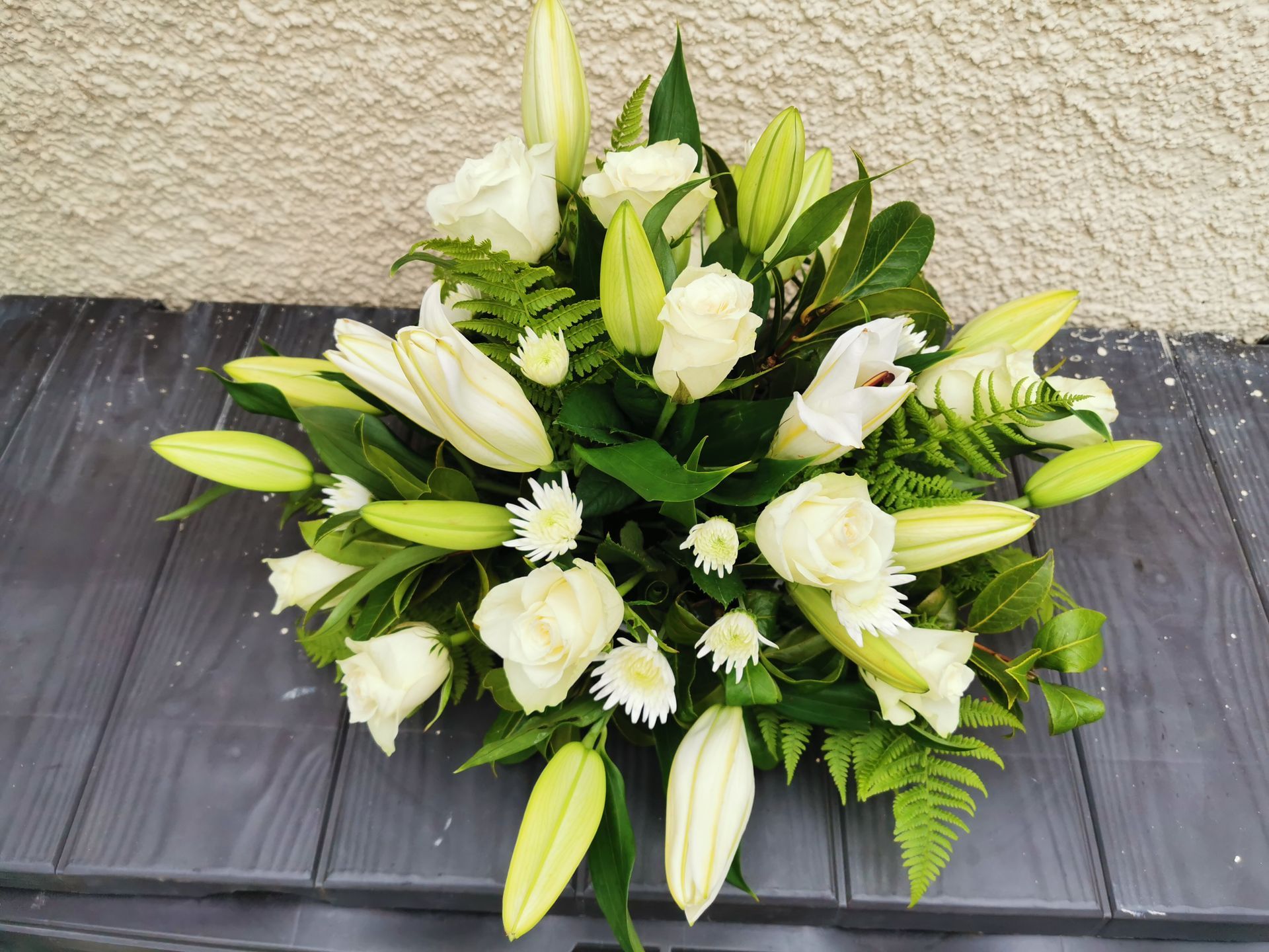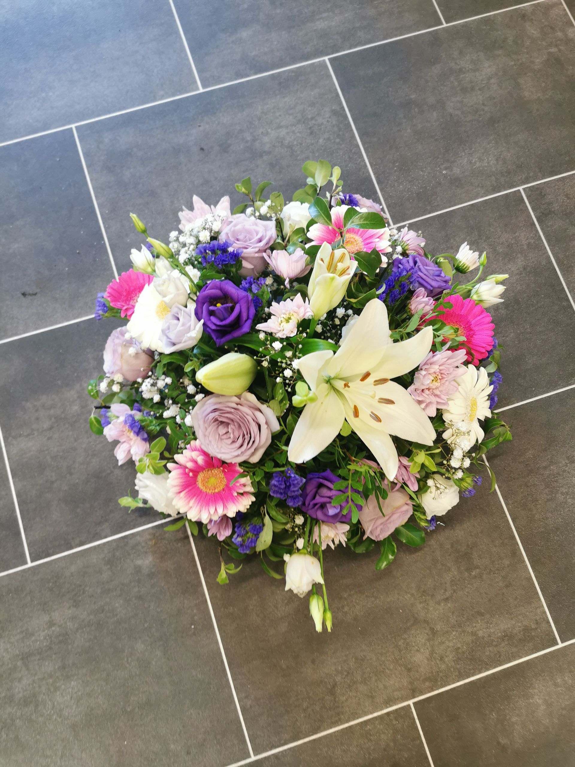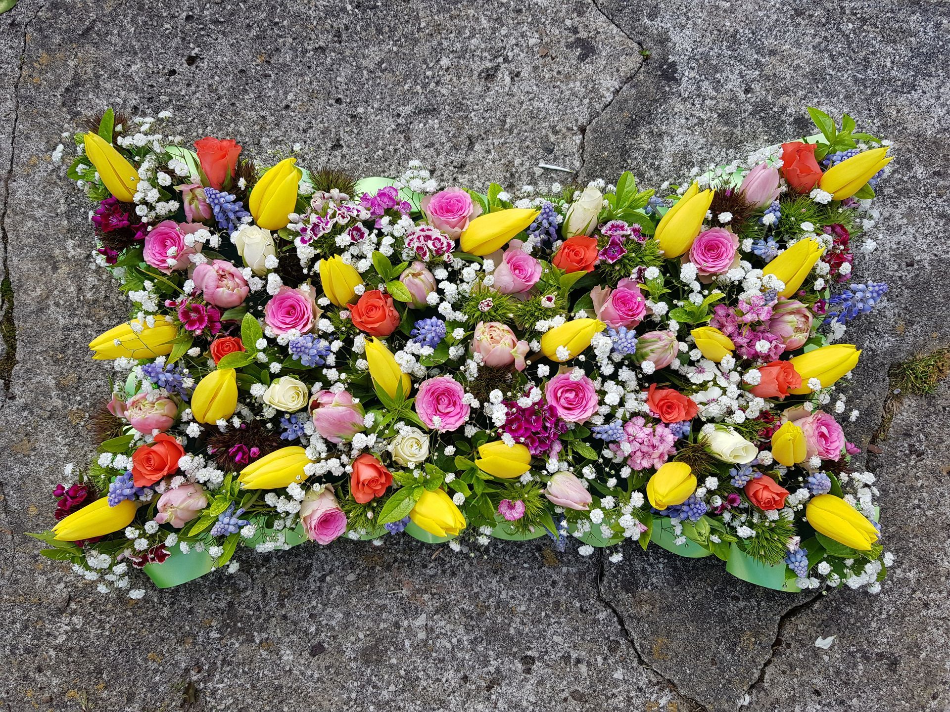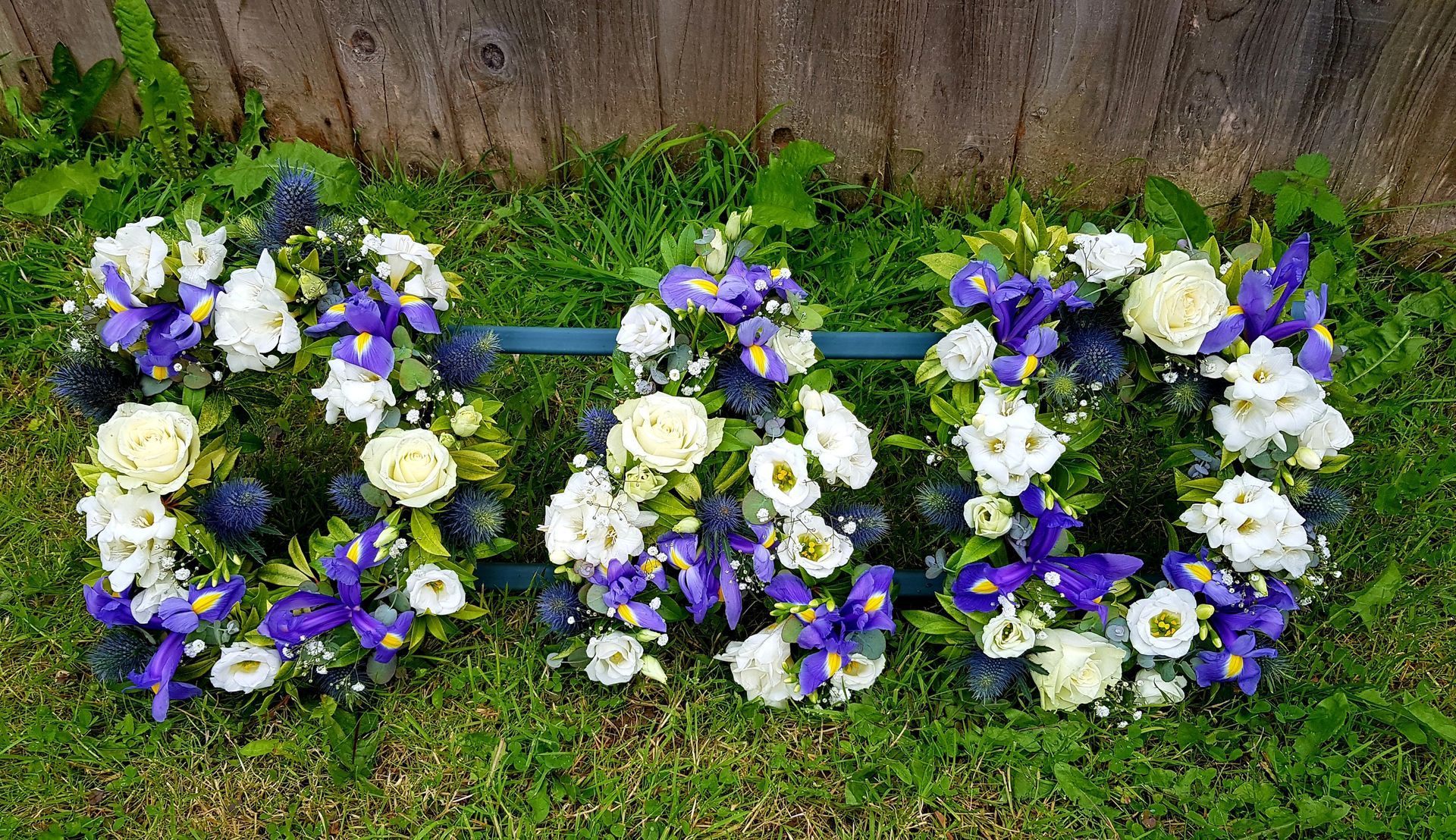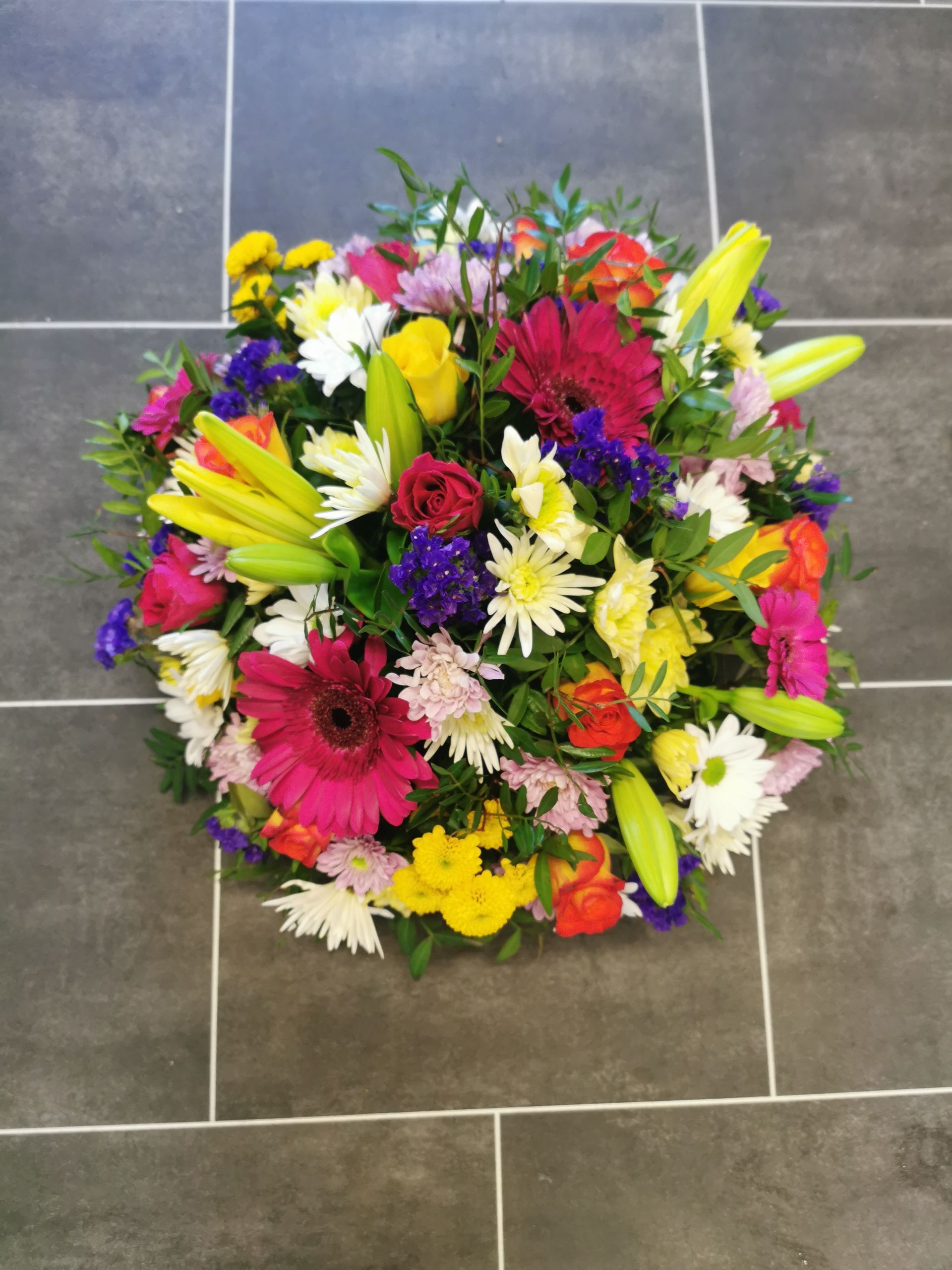 Circular posies in a dish from £25, Coffin sprays vary on flowers & sizes required. Gates to heaven £85