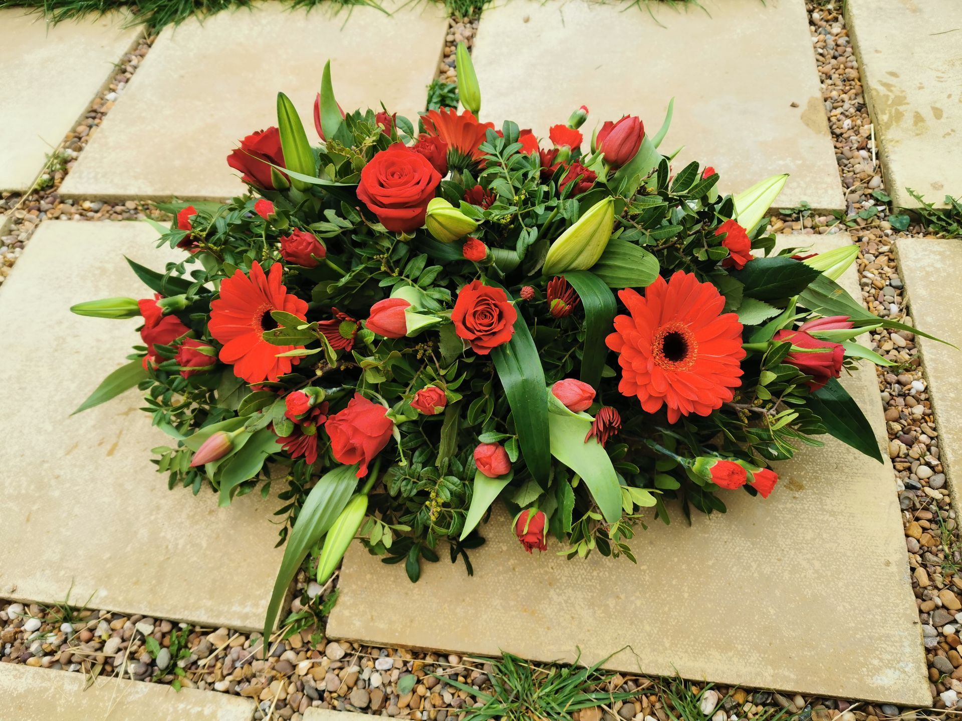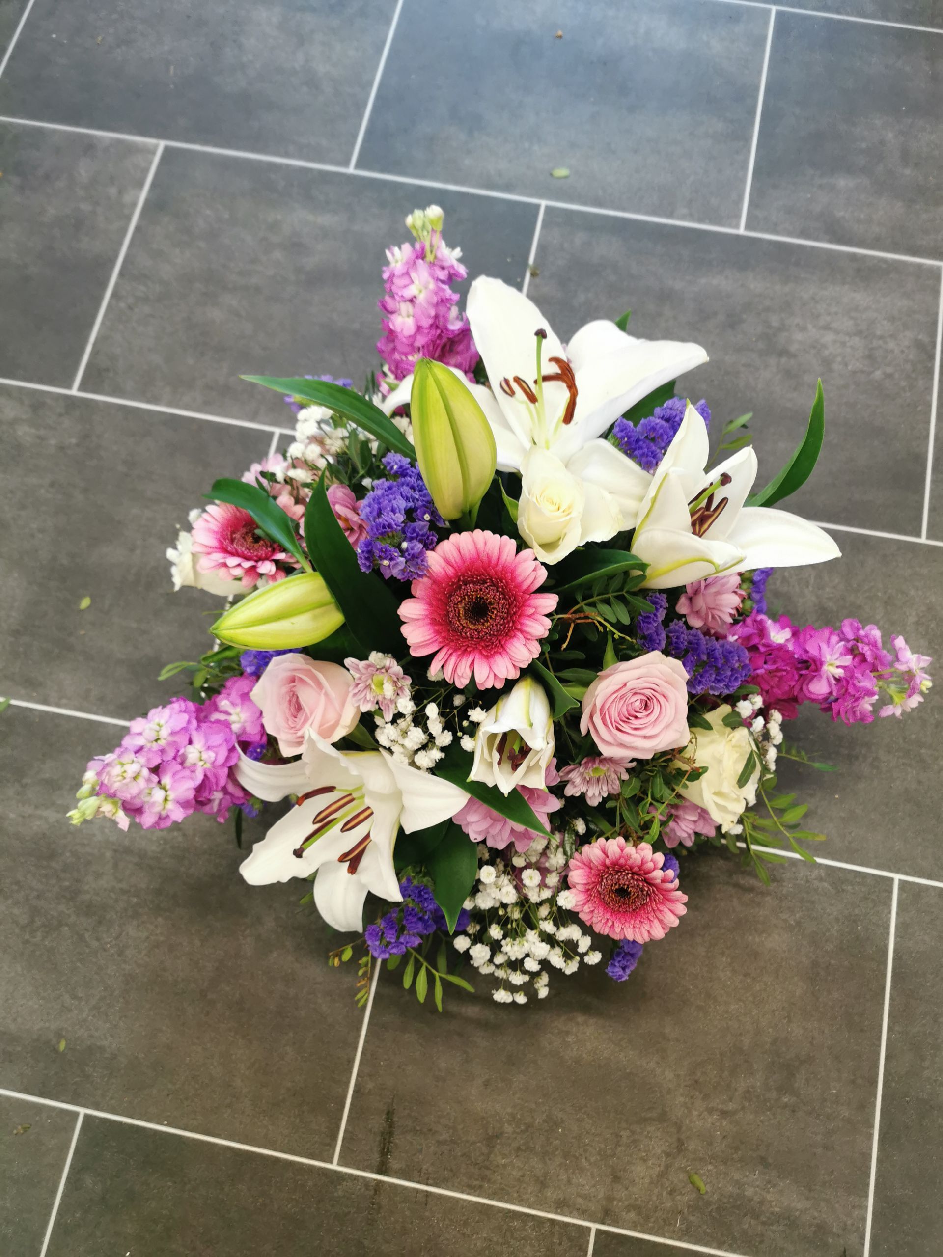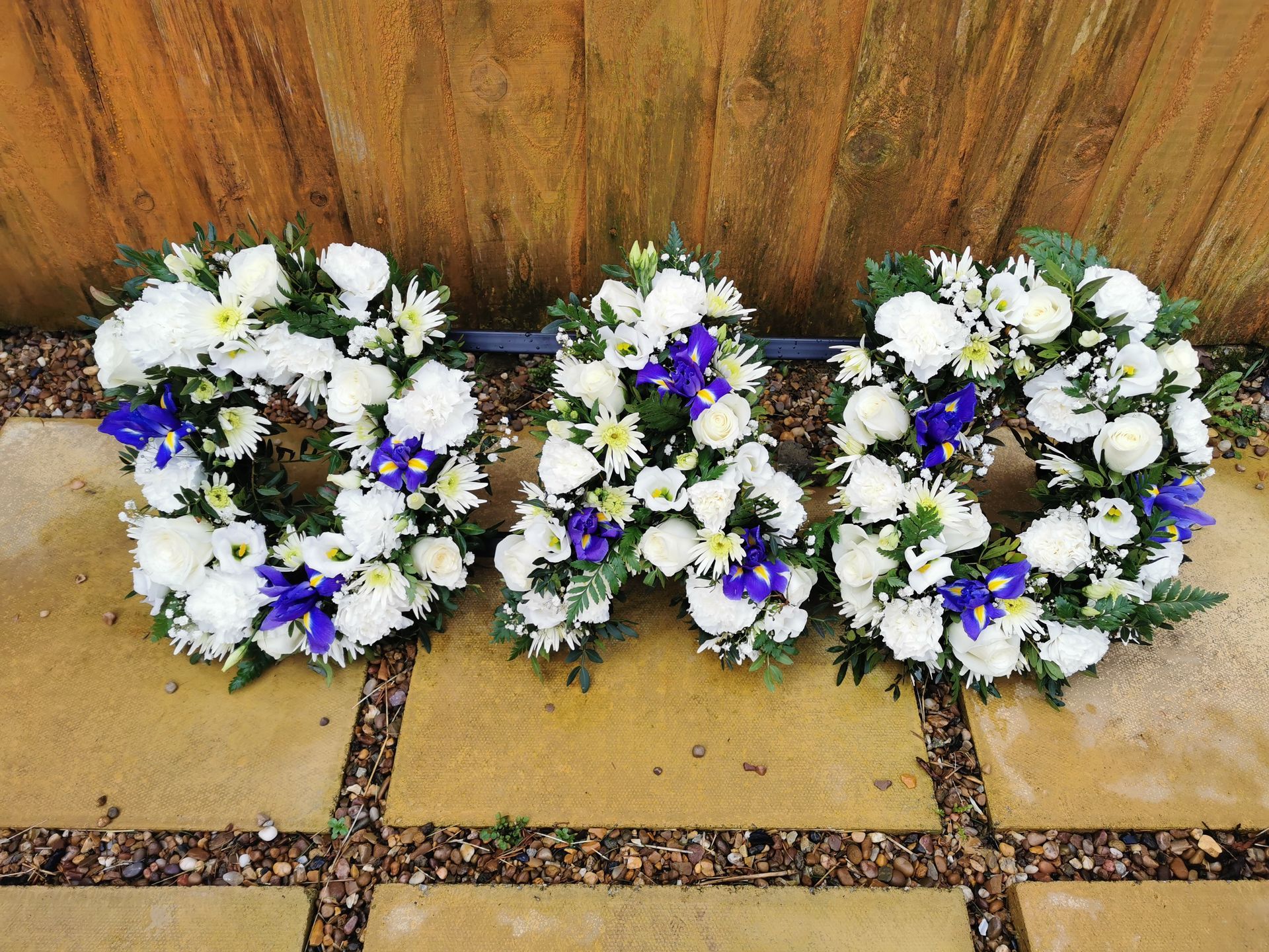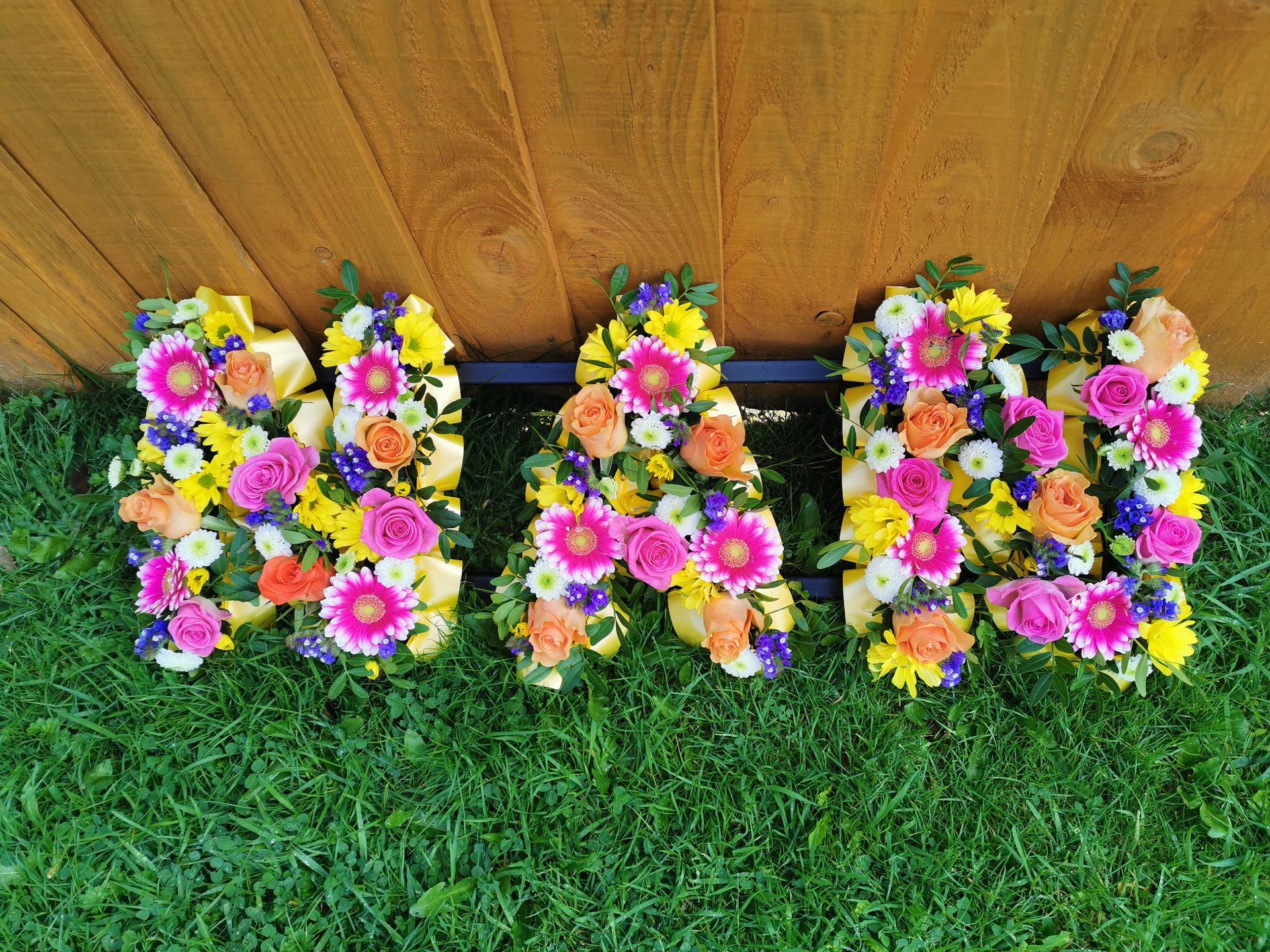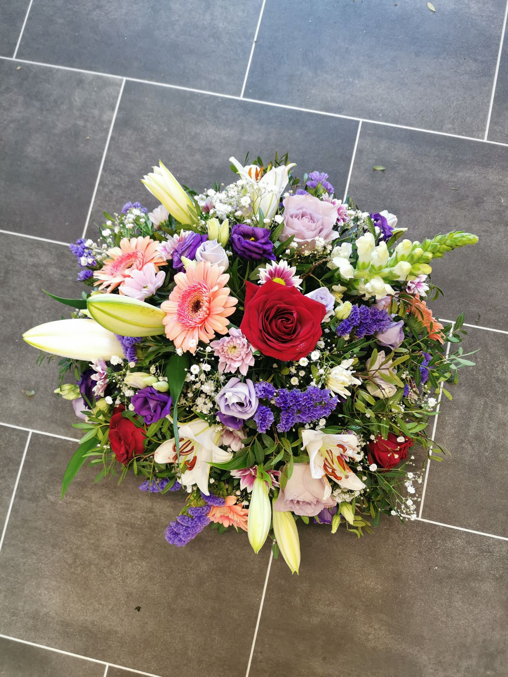 Circular posies in a dish from £25, Coffin sprays vary on flowers & sizes required. Gates to heaven £85
