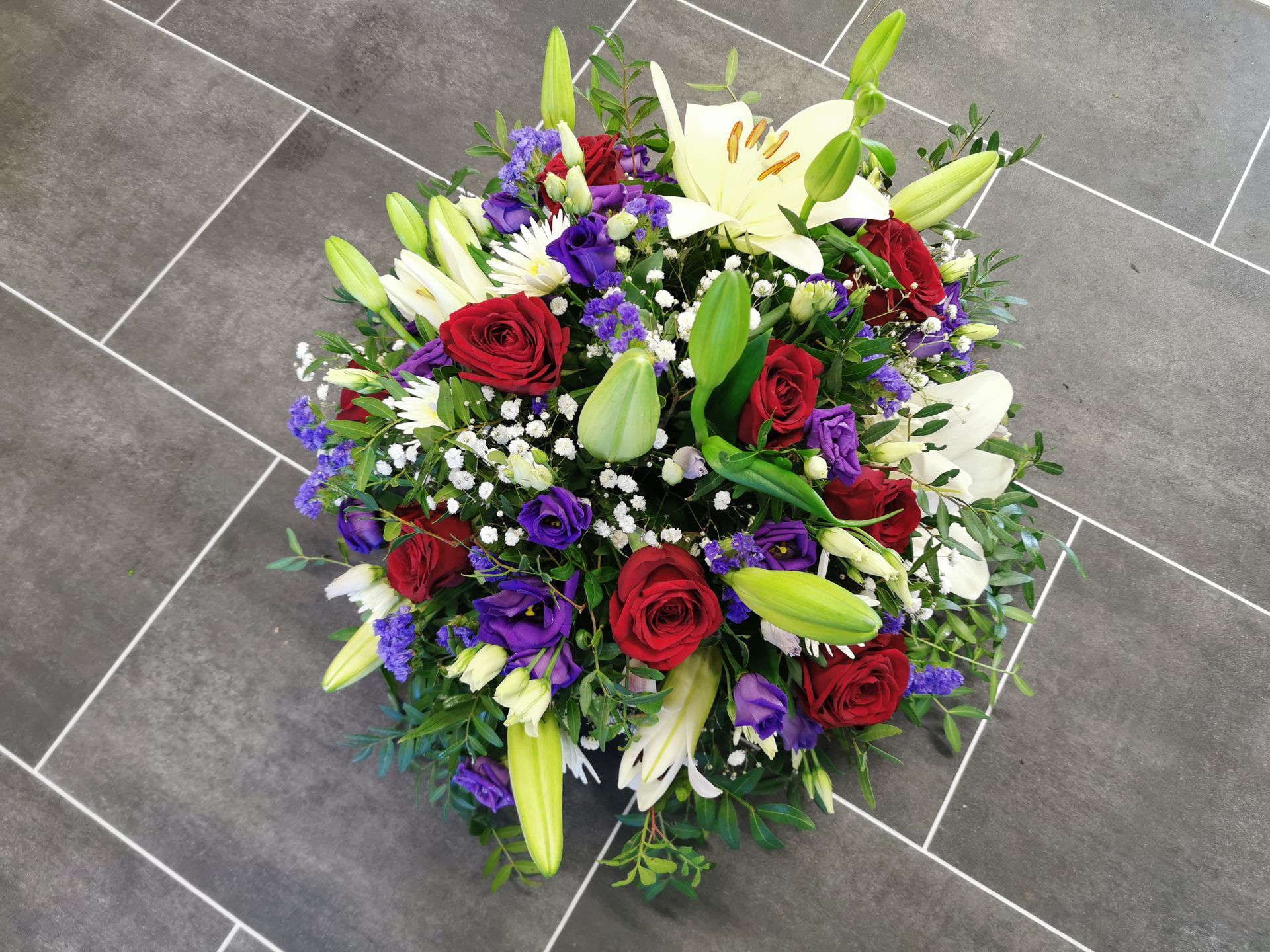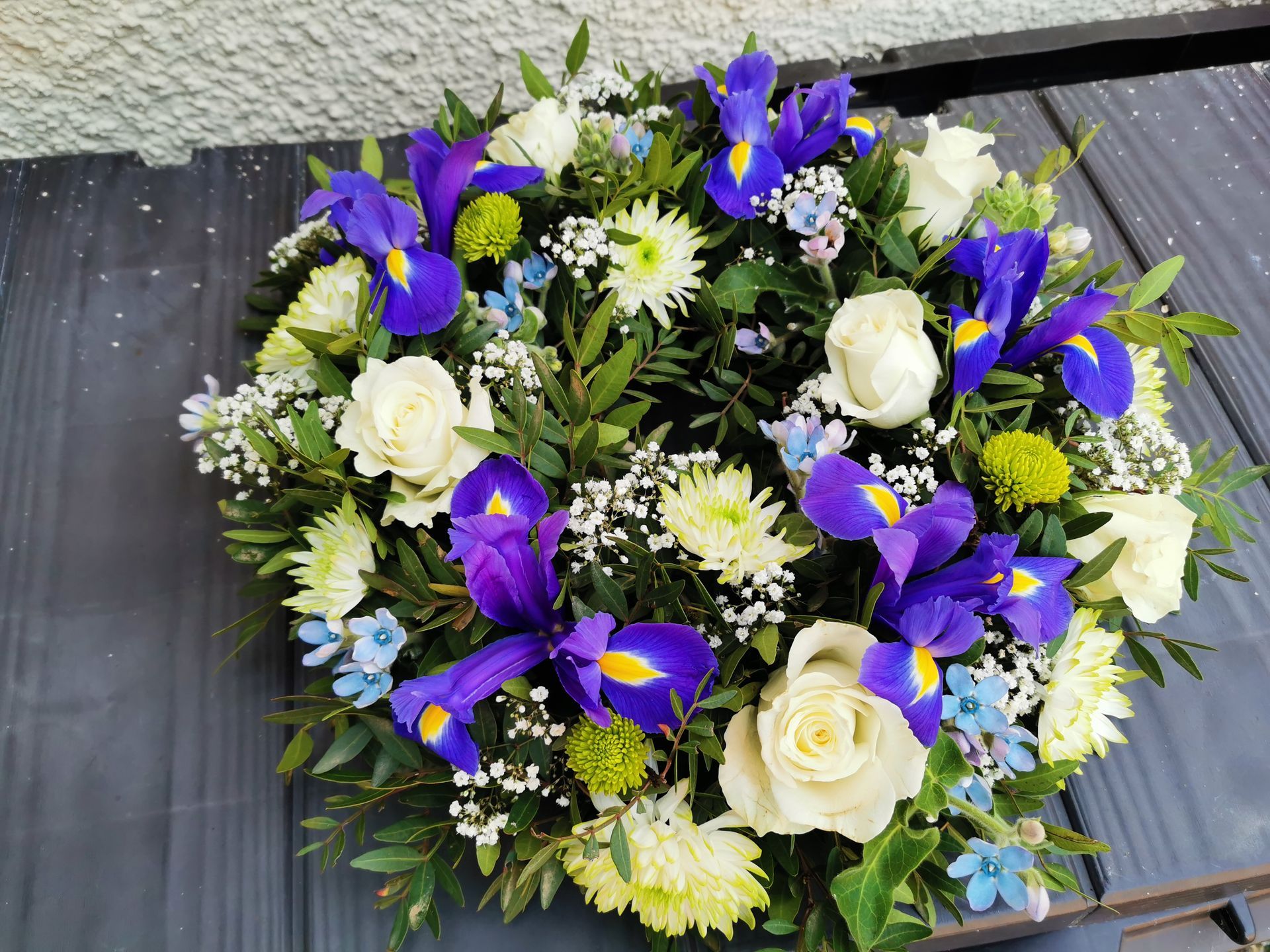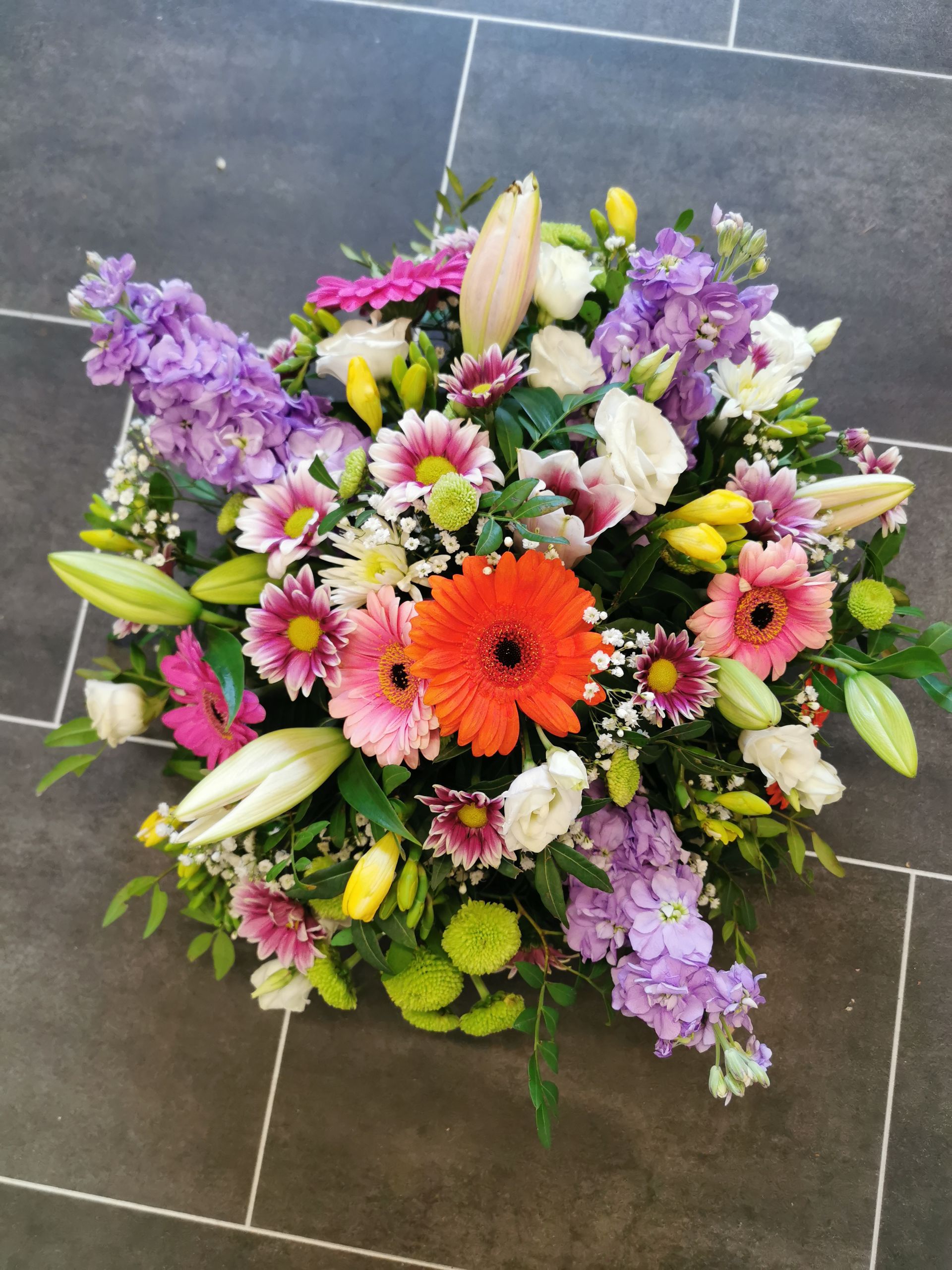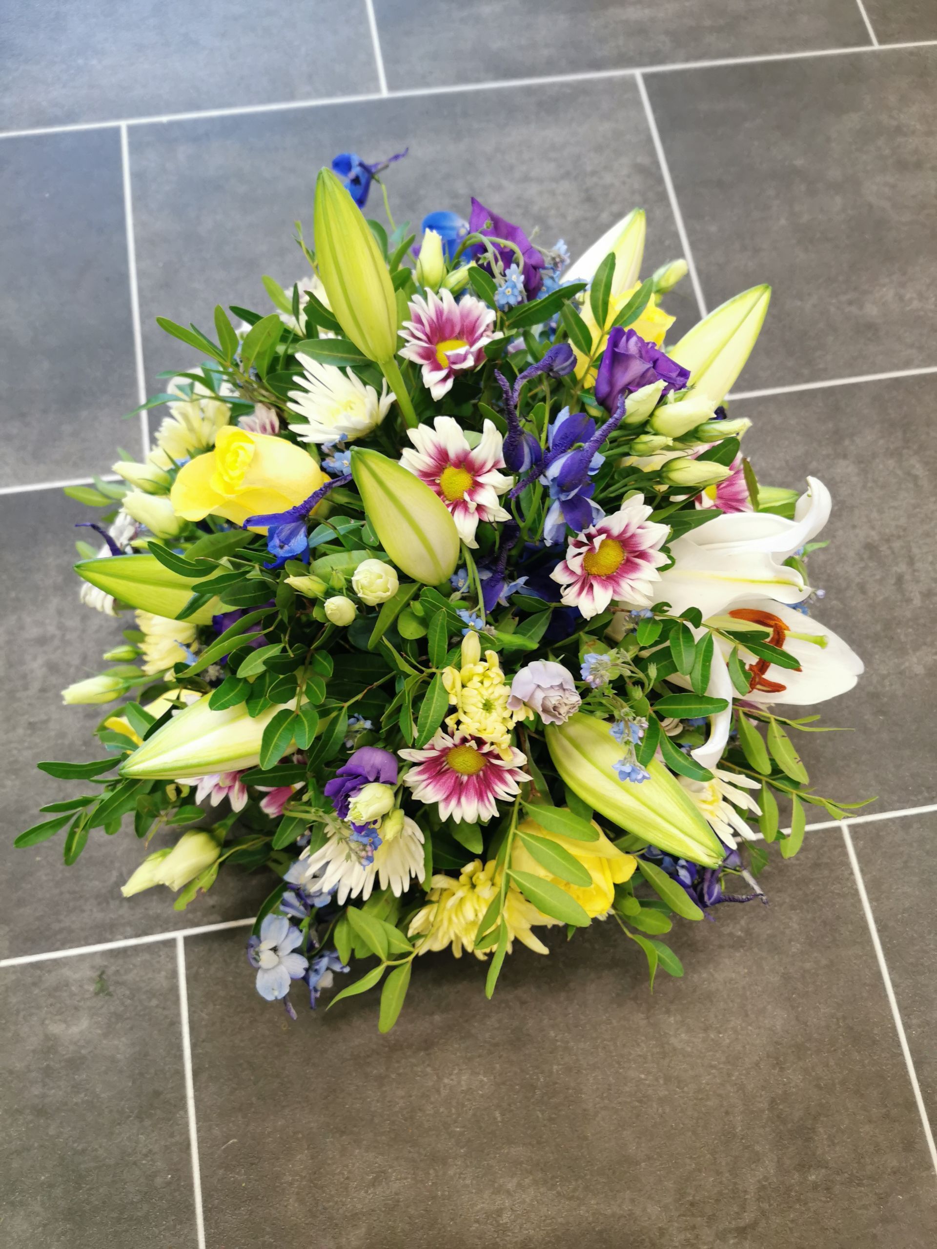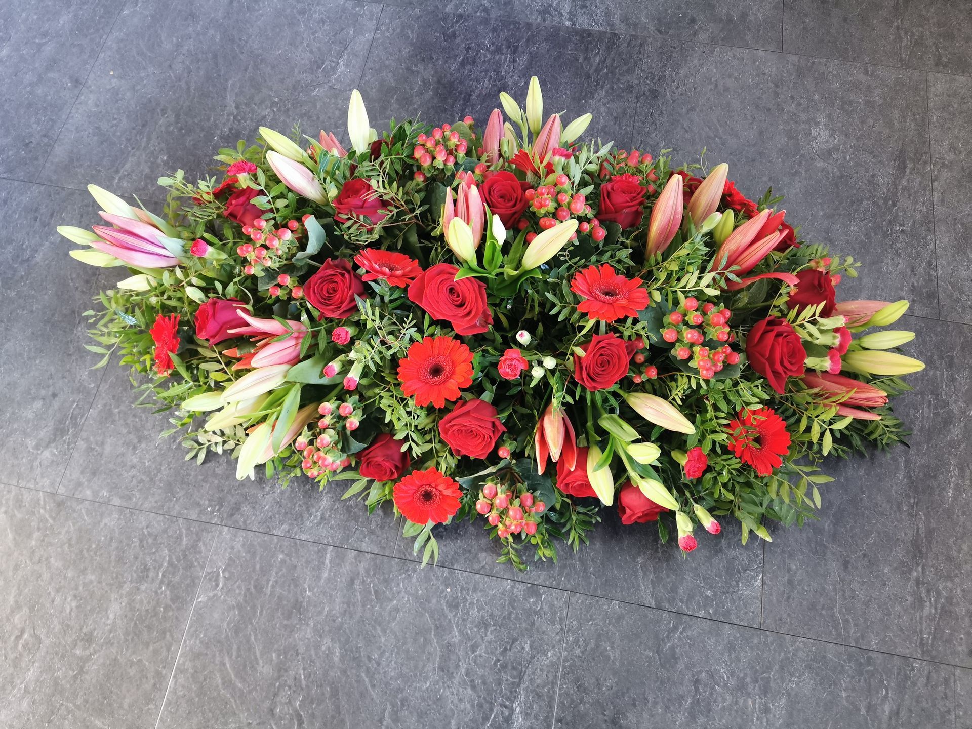 Circular posies in a dish from £25, Coffin sprays vary on flowers & sizes required. Gates to heaven £85