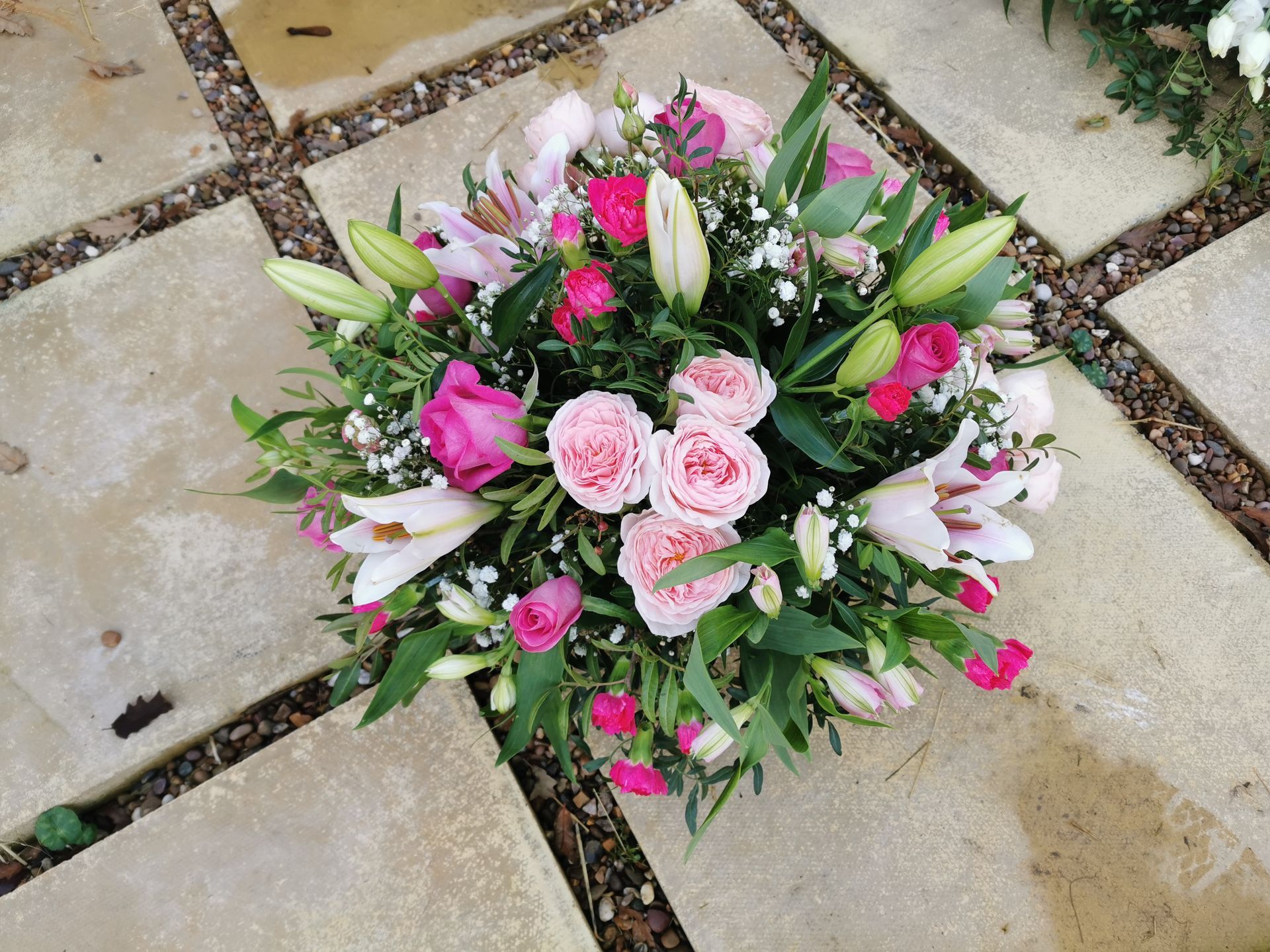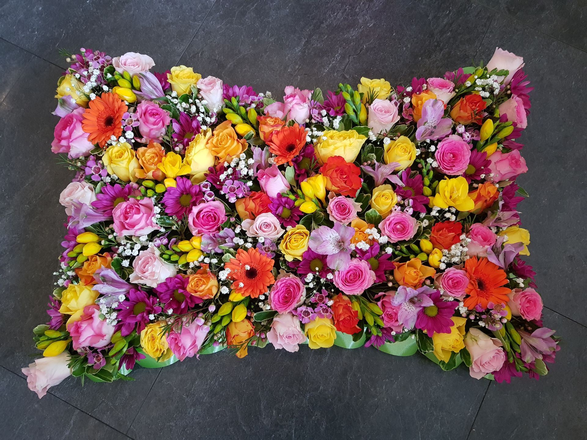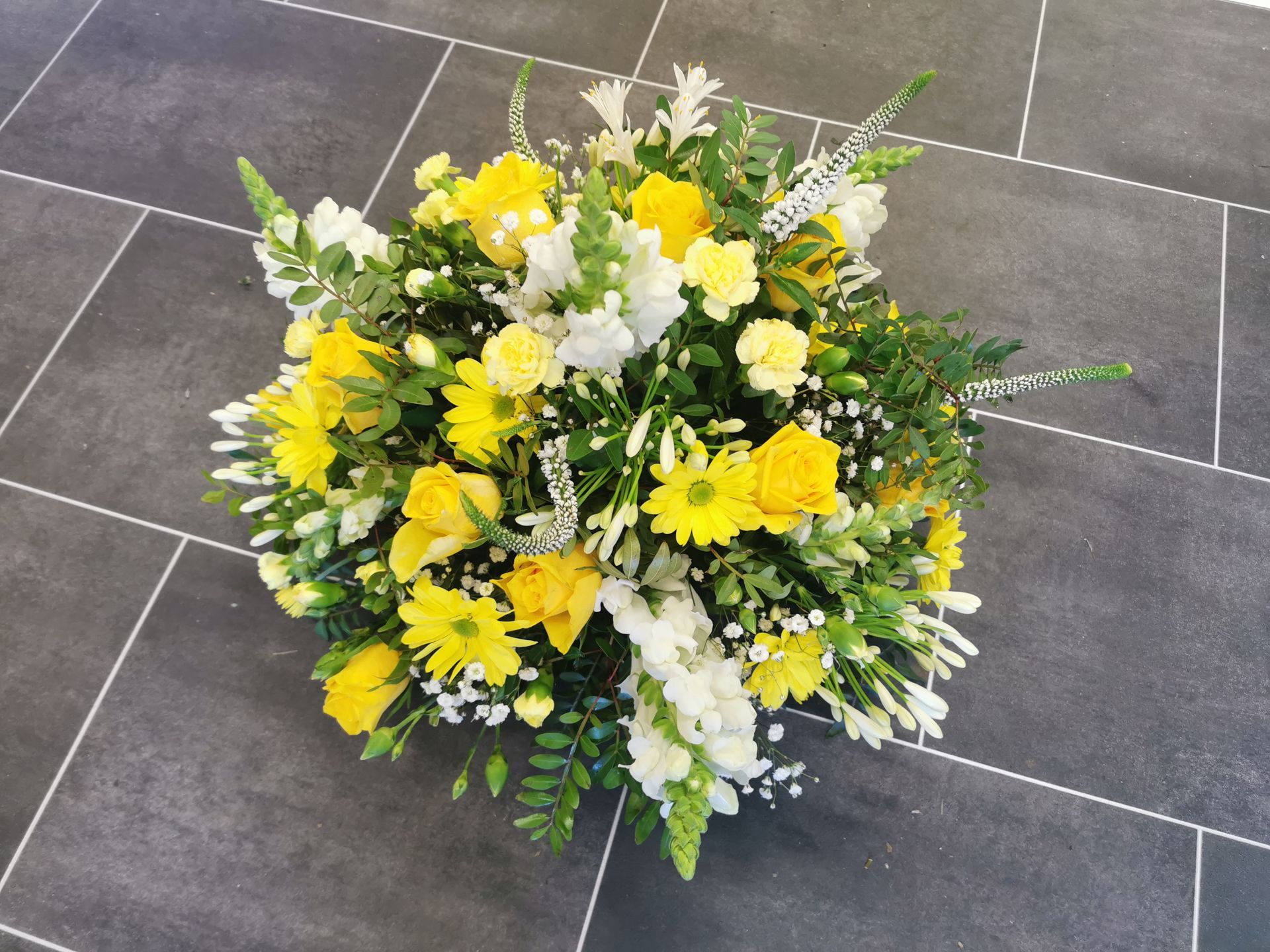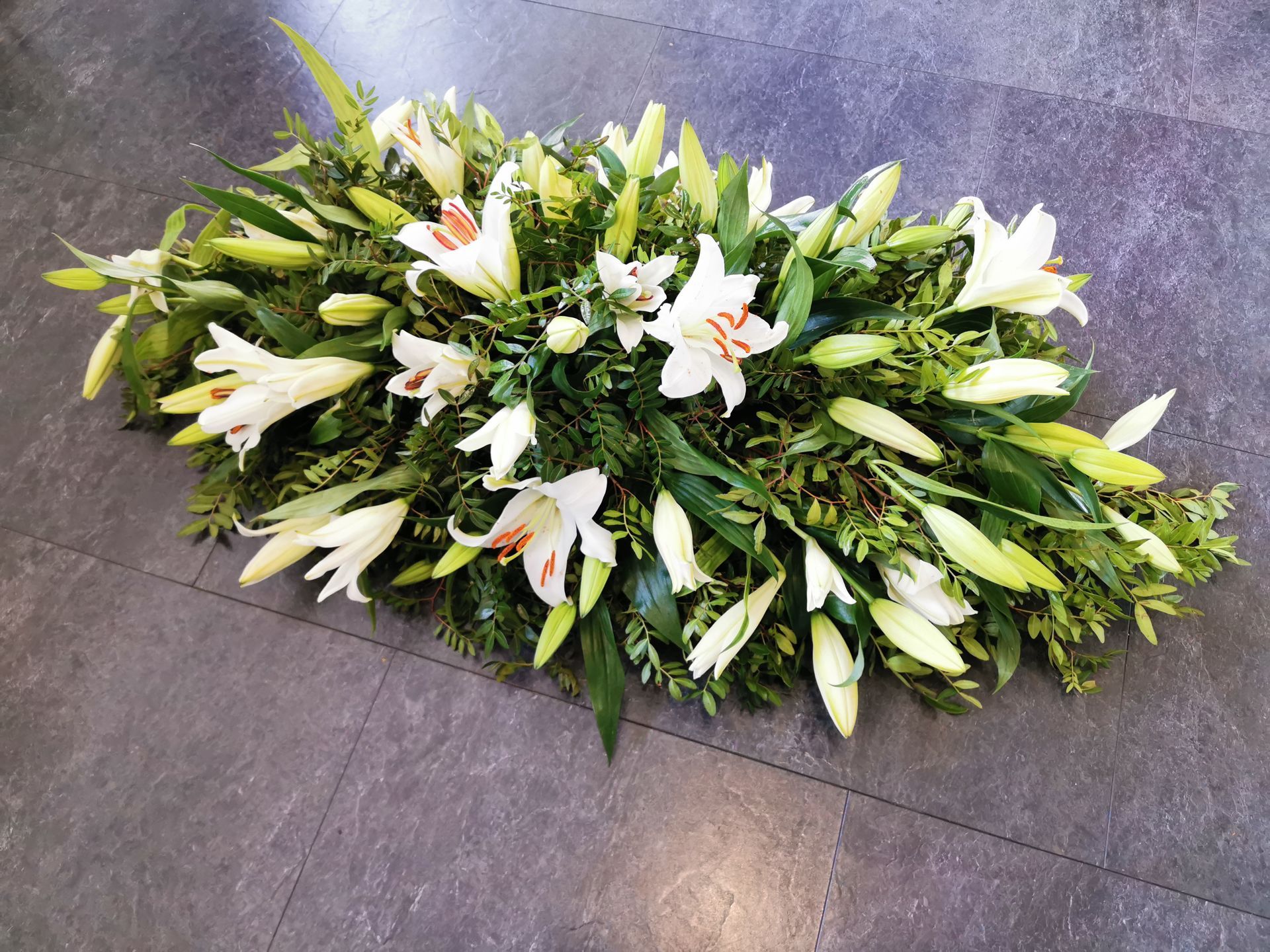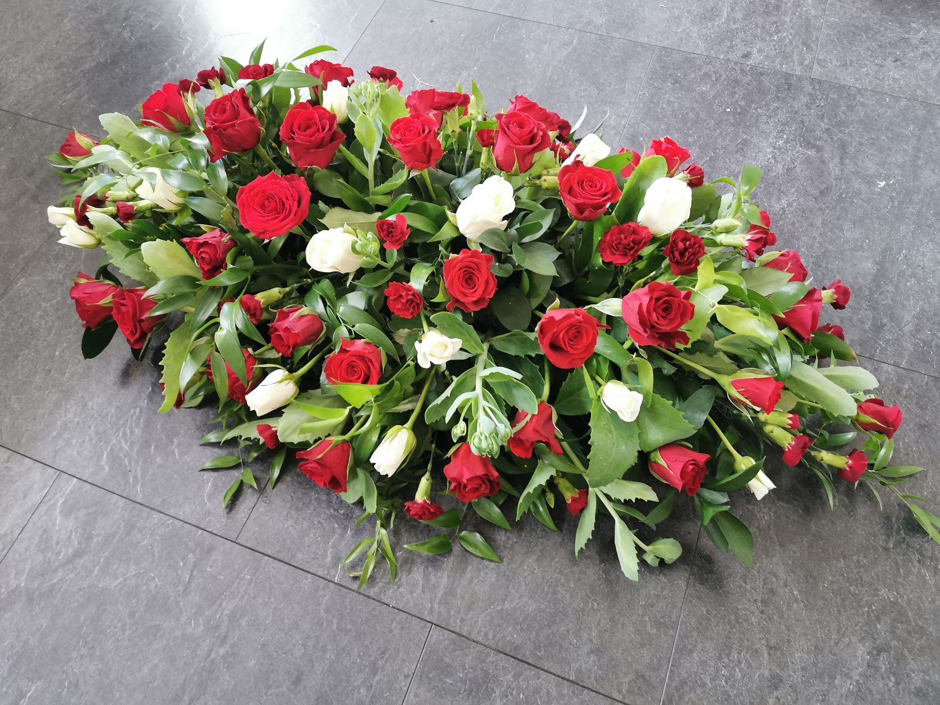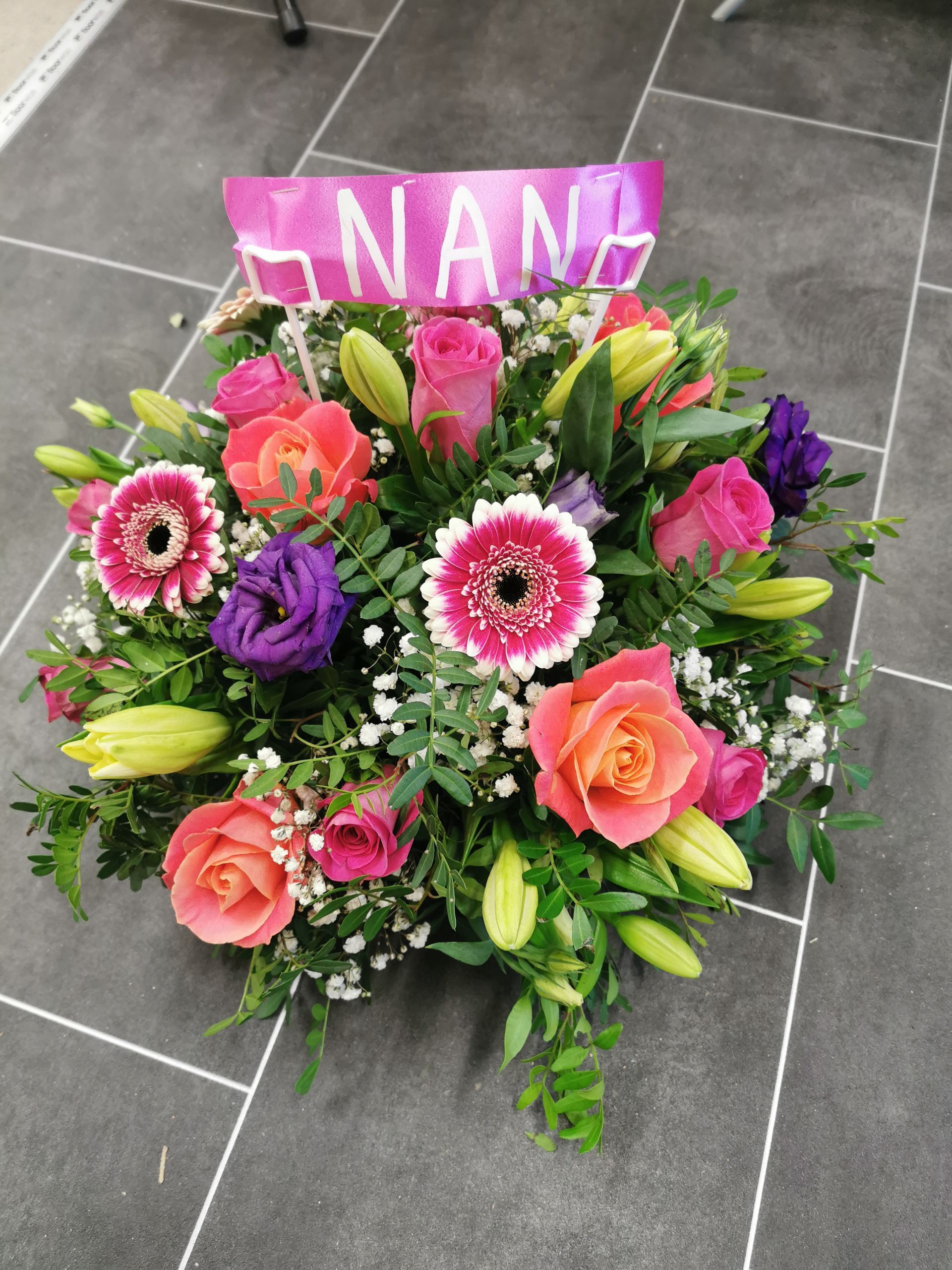 Circular posies in a dish from £25, Coffin sprays vary on flowers & sizes required. Gates to heaven £85