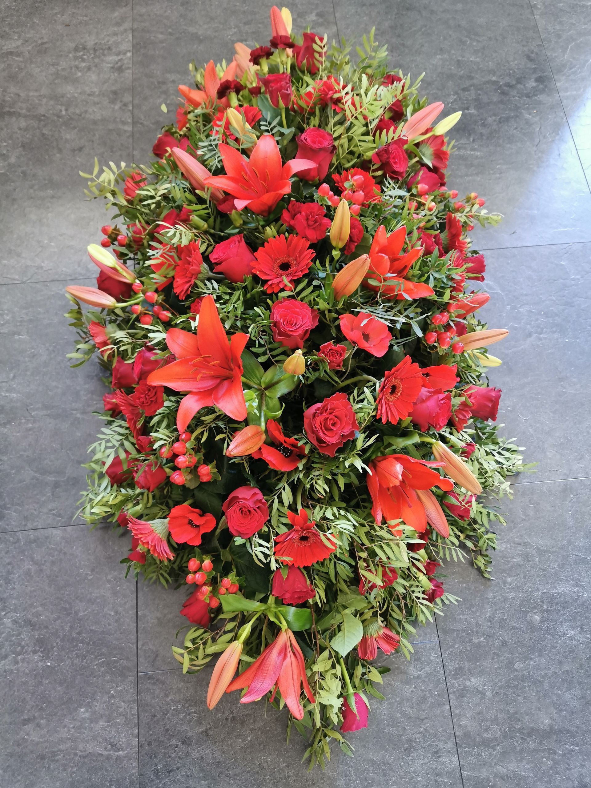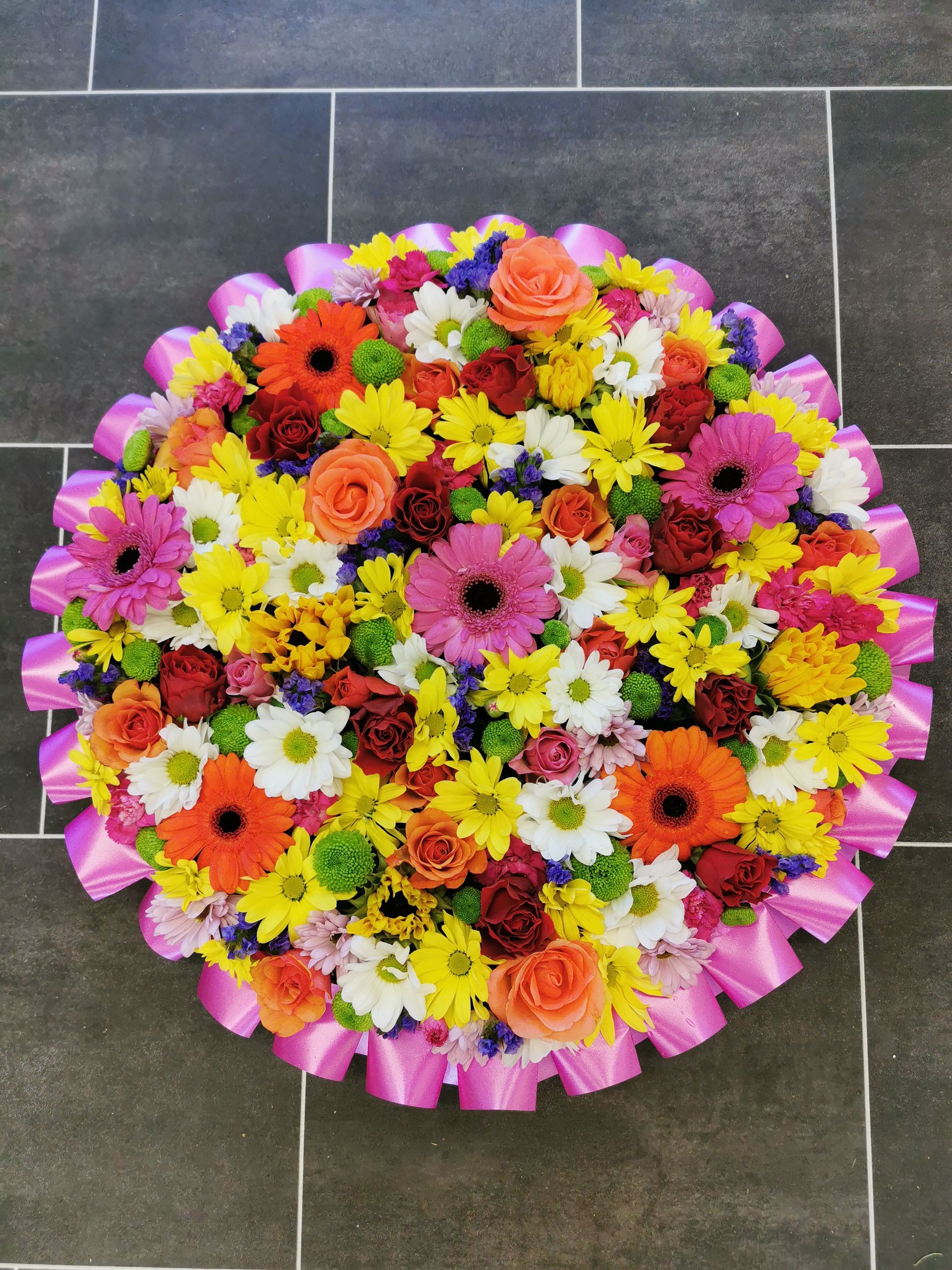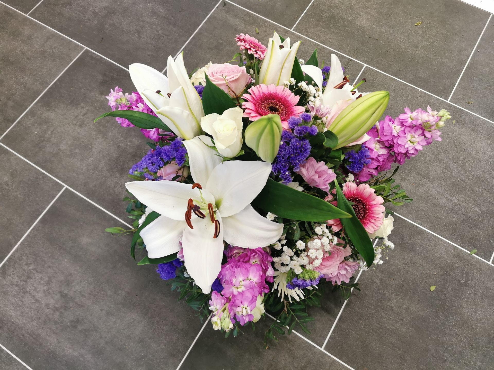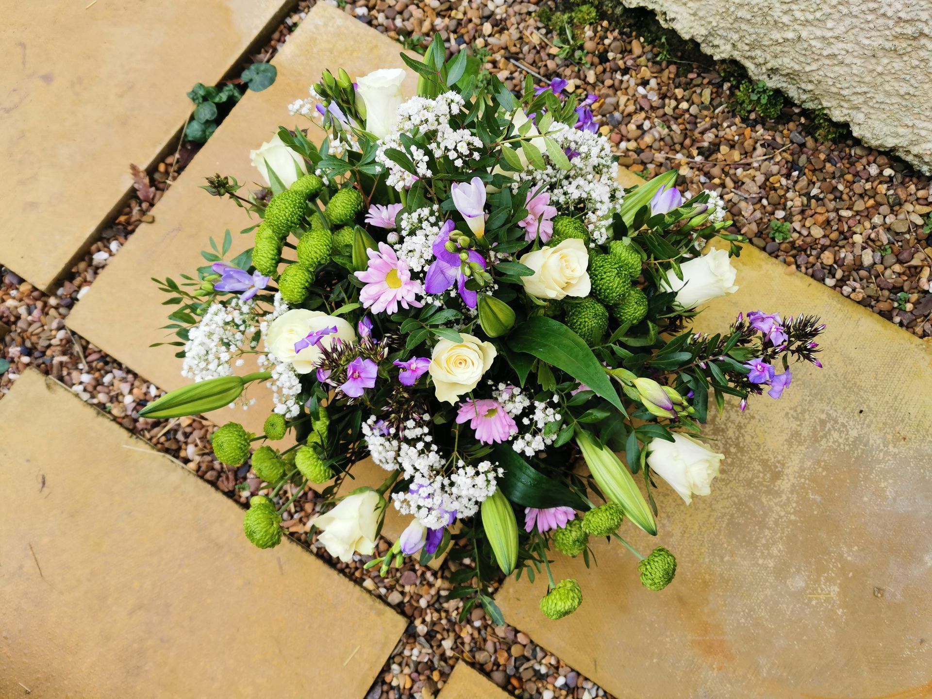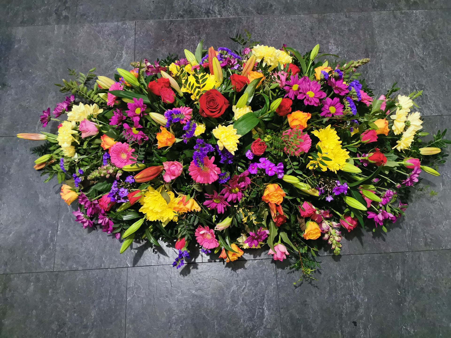 Circular posies in a dish from £25, Coffin sprays vary on flowers & sizes required. Gates to heaven £85