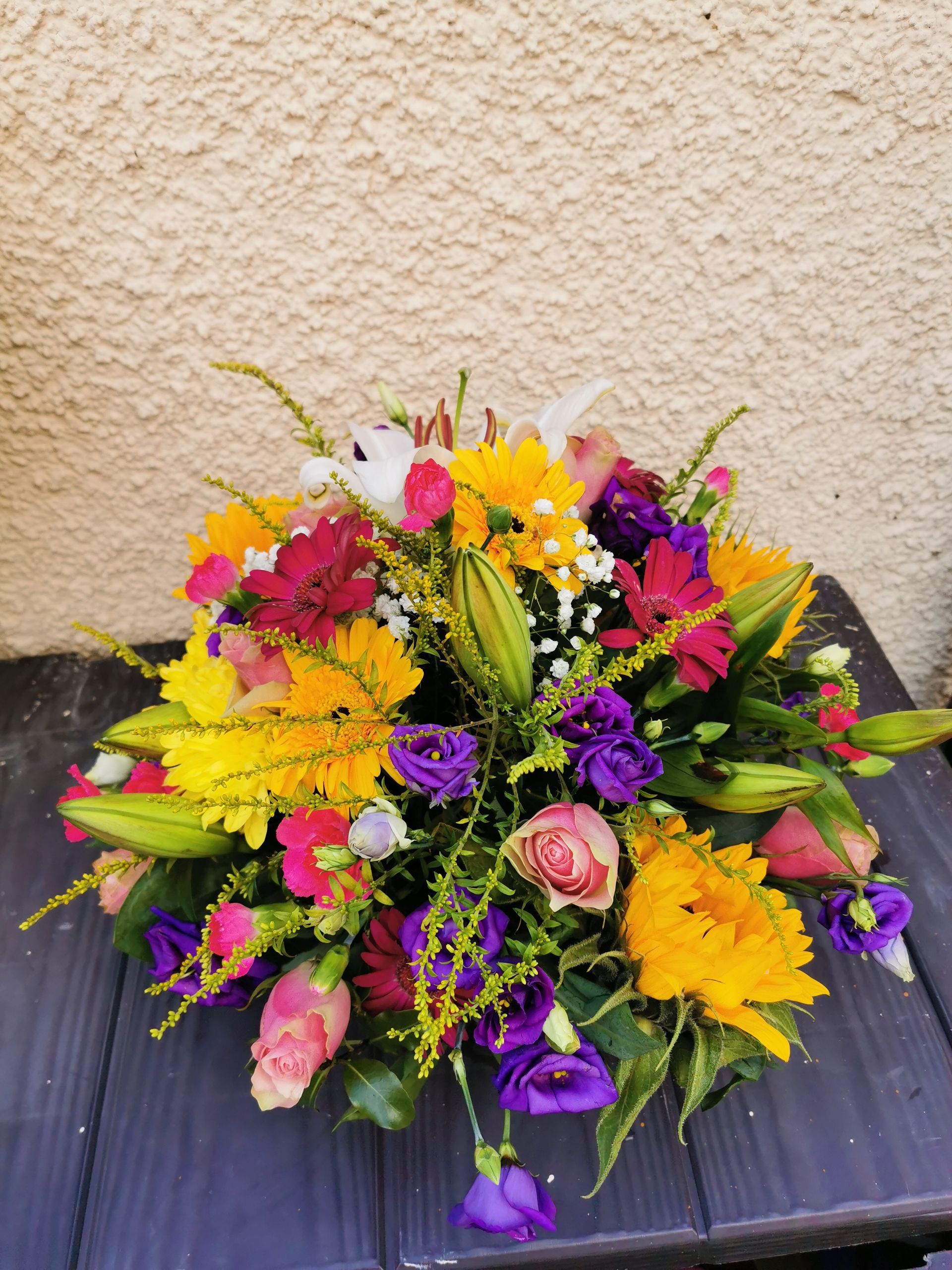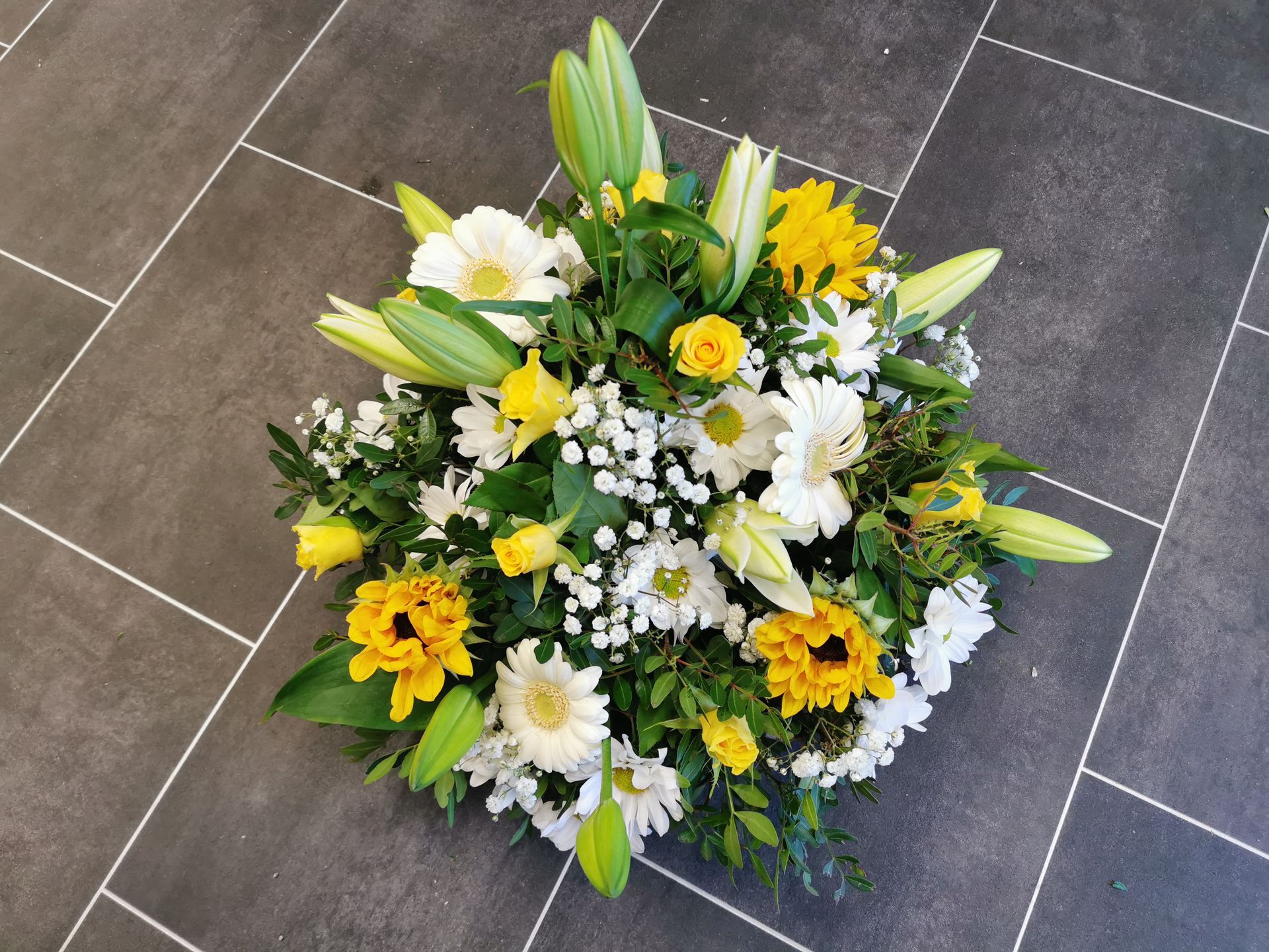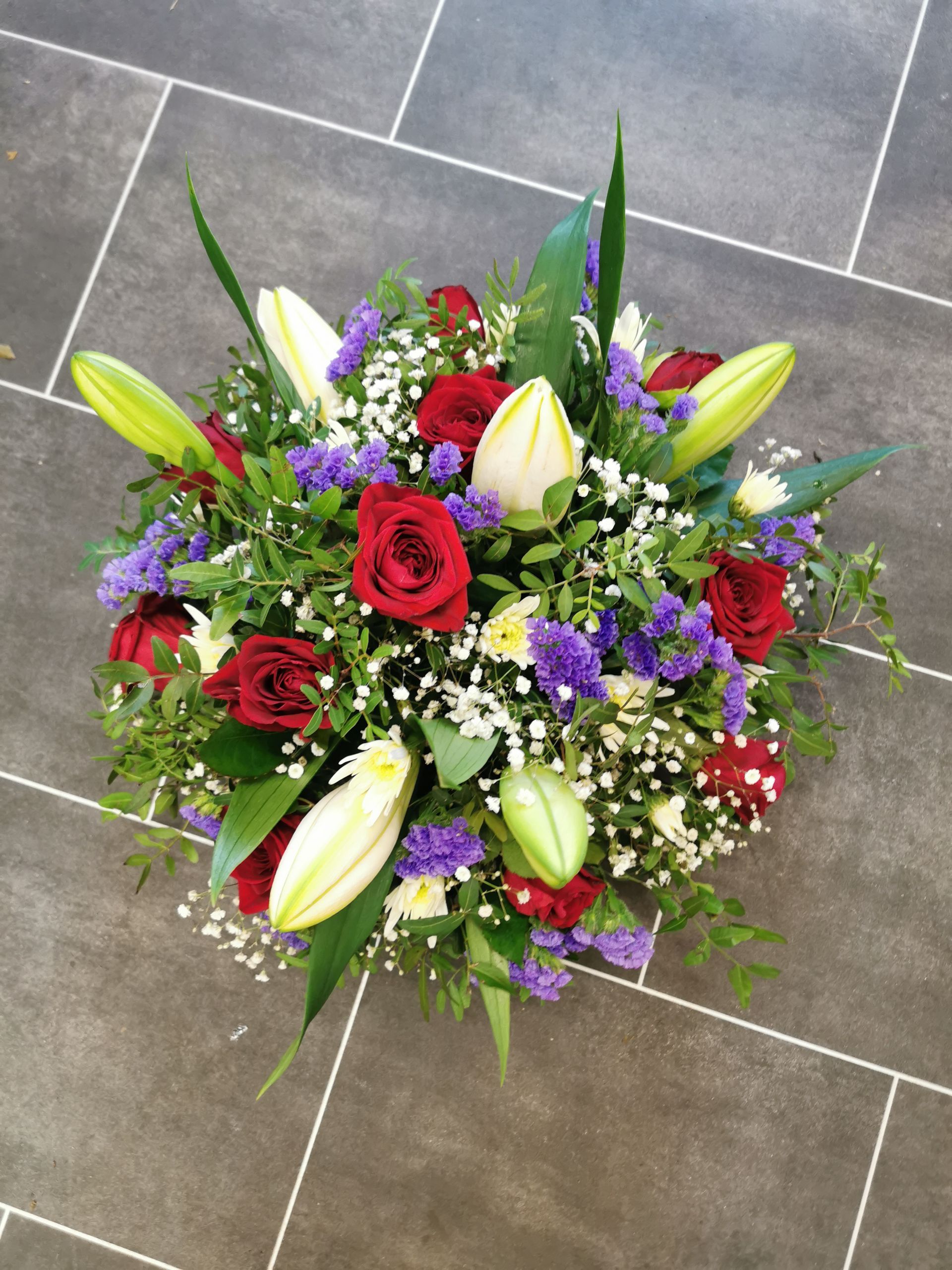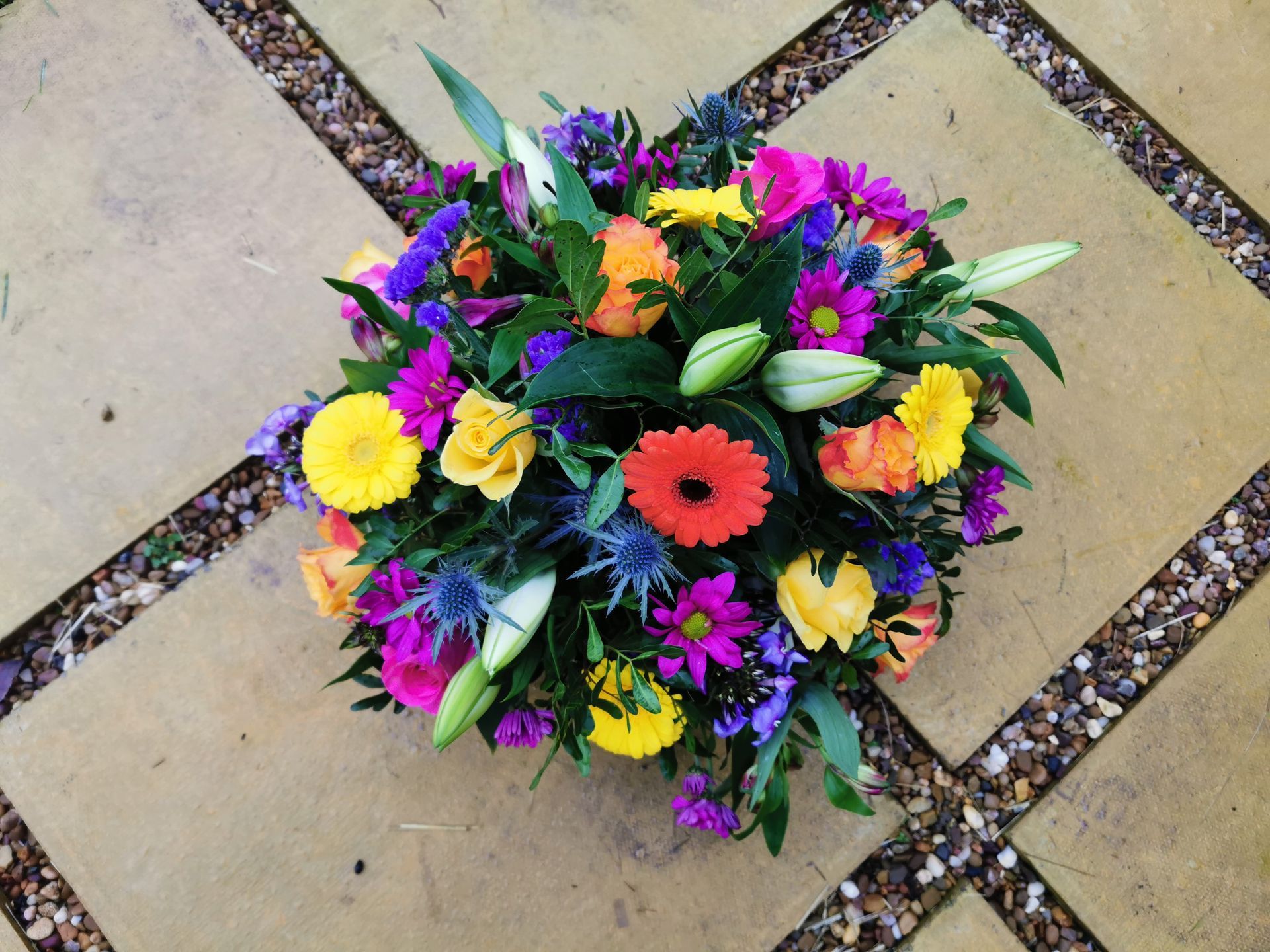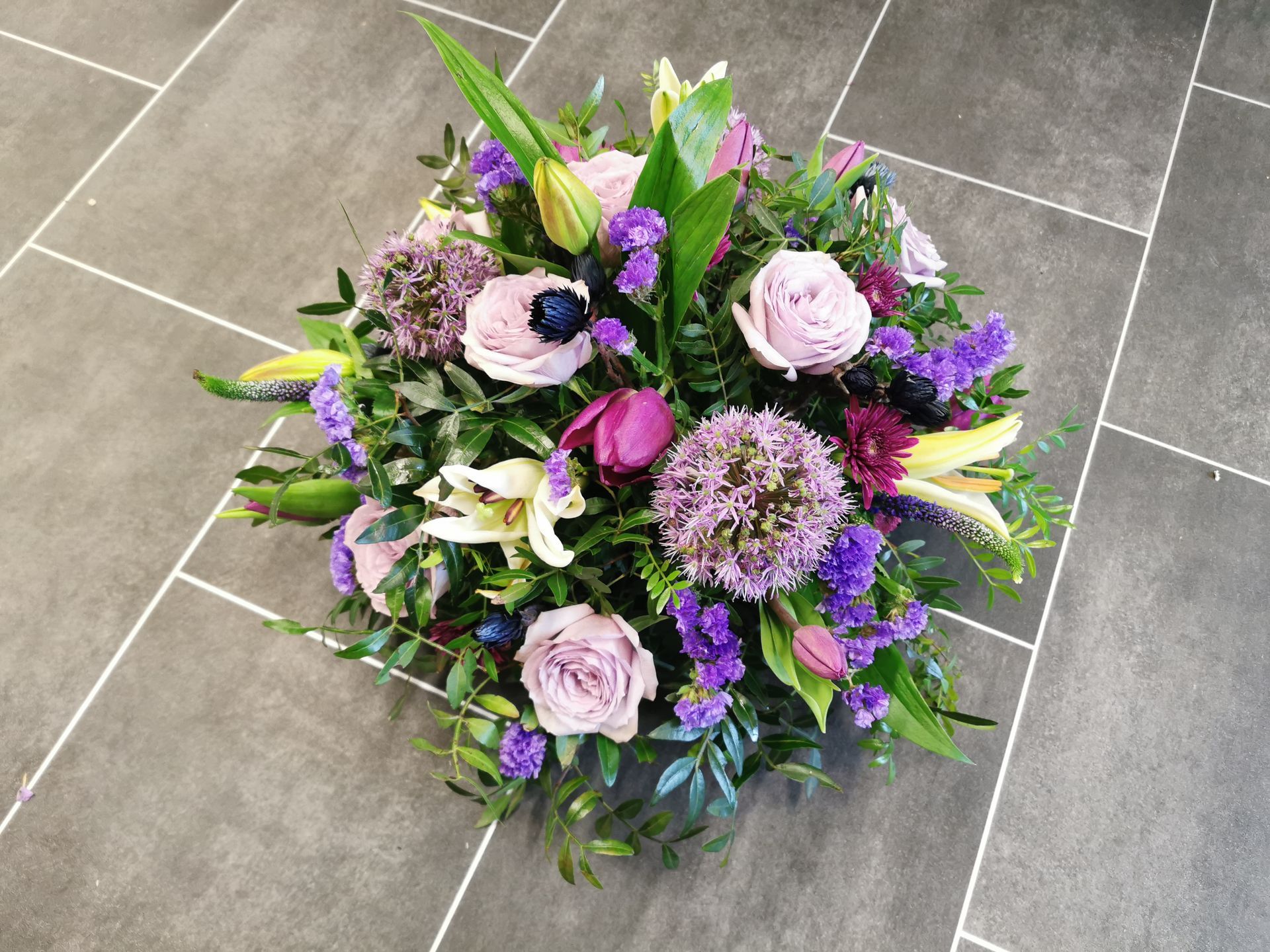Circular posies in a dish from £25, Coffin sprays vary on flowers & sizes required. Gates to heaven £85