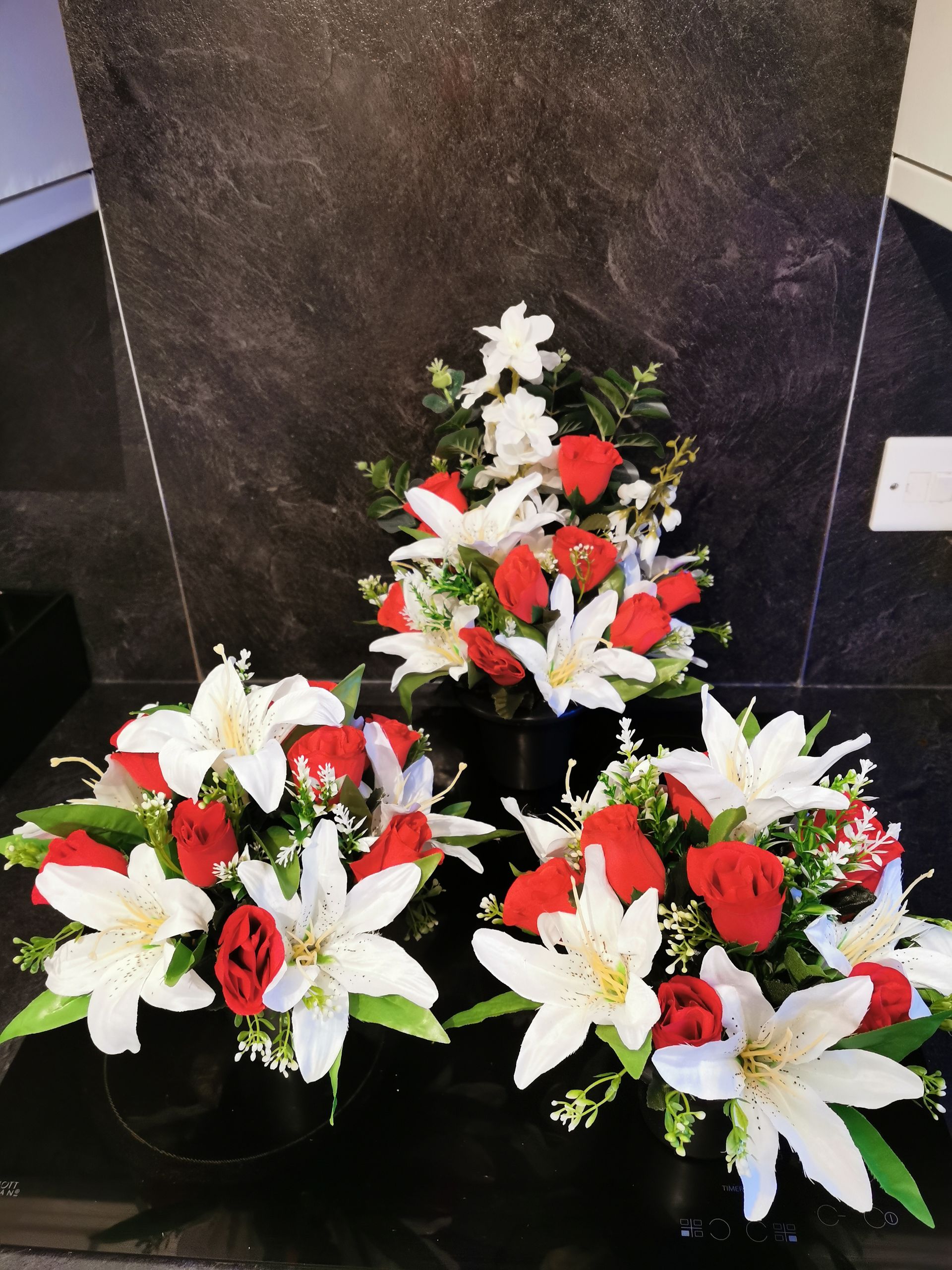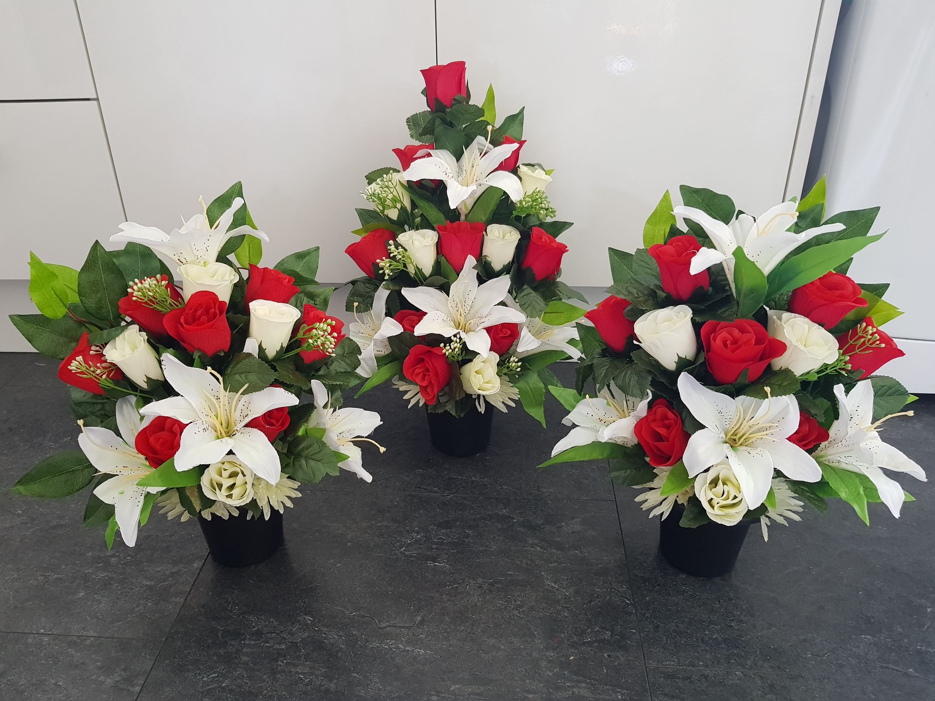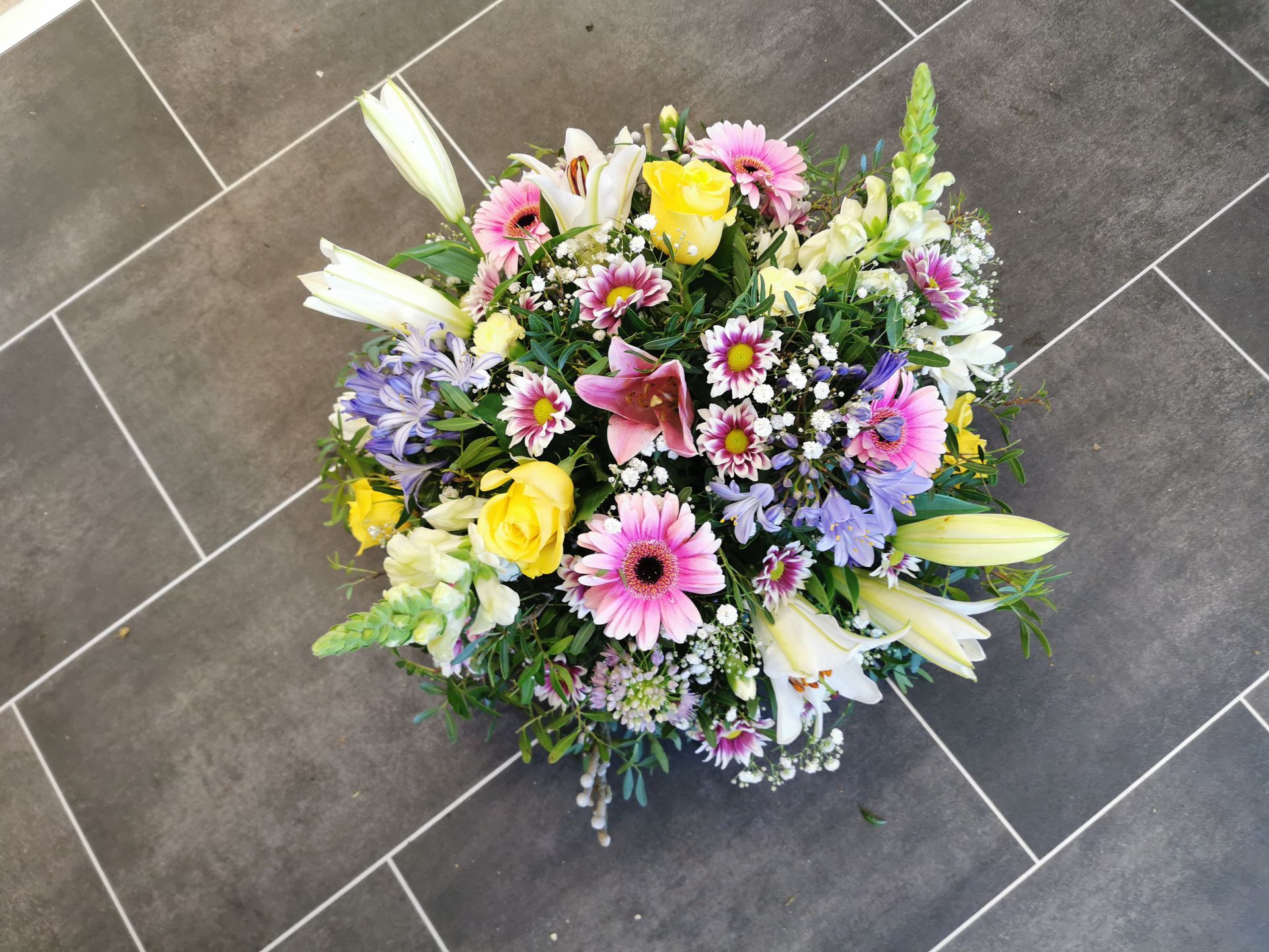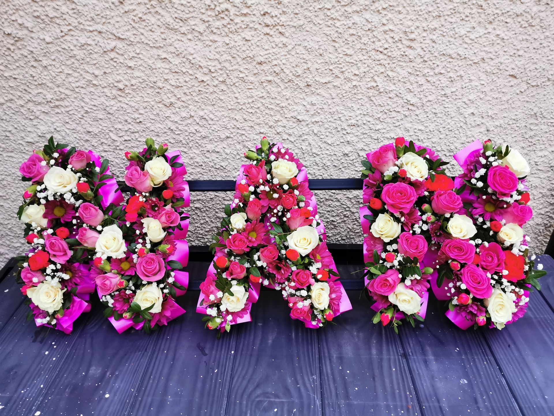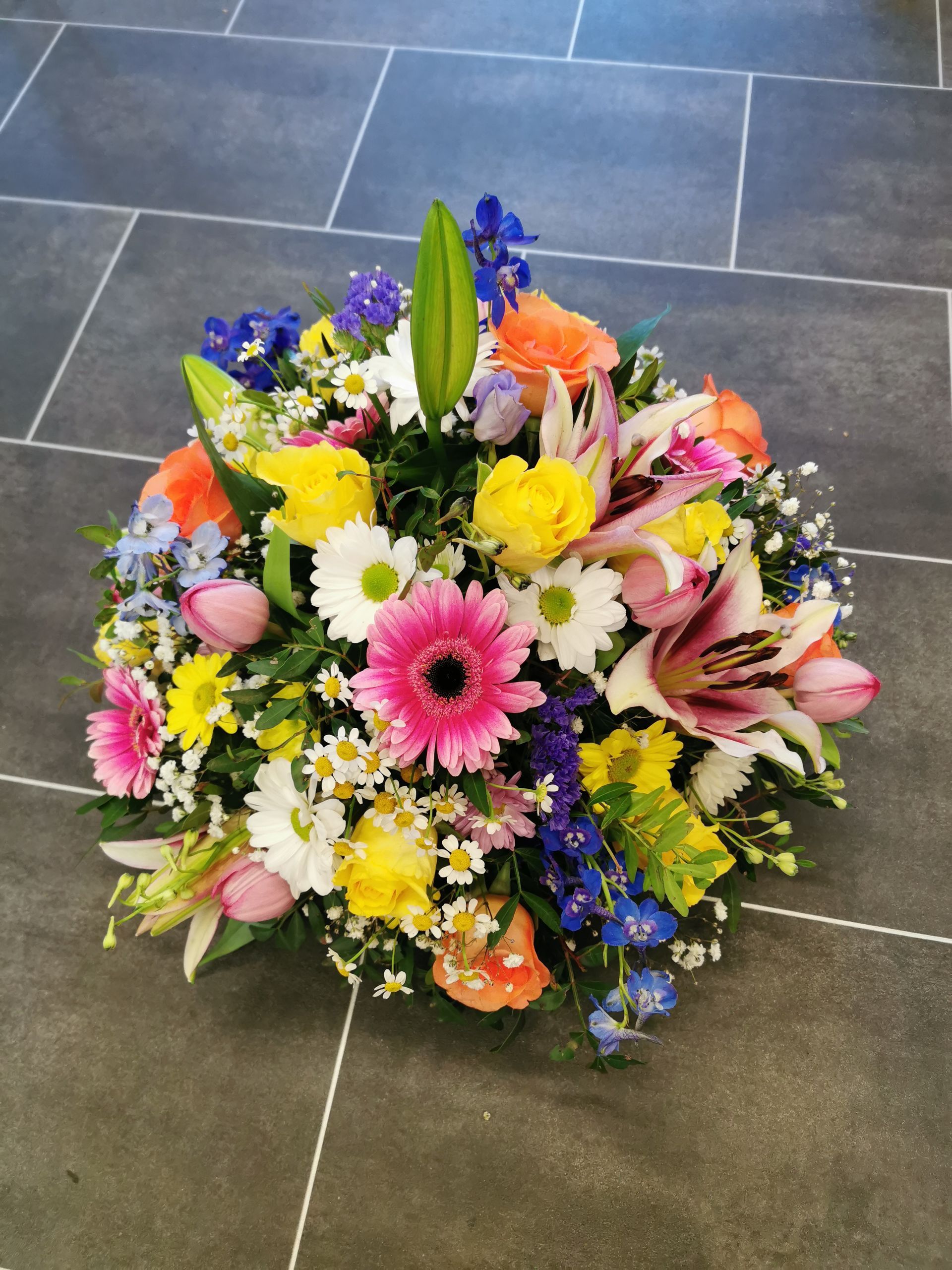 Circular posies in a dish from £25, Coffin sprays vary on flowers & sizes required. Gates to heaven £85
