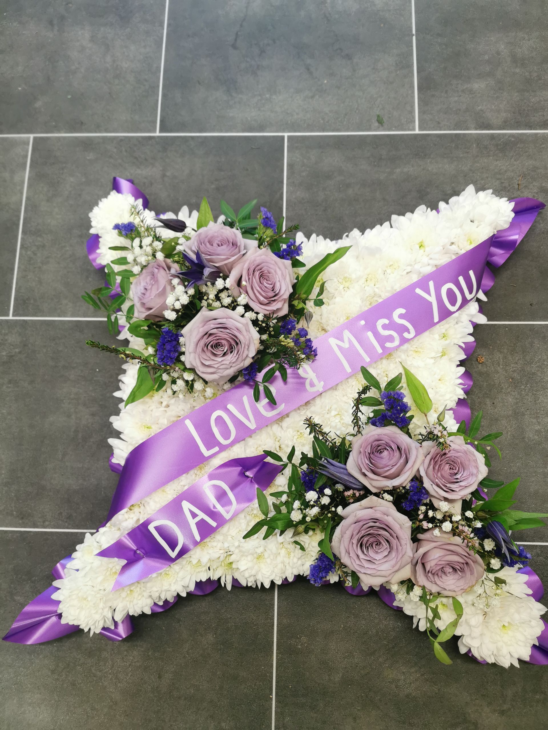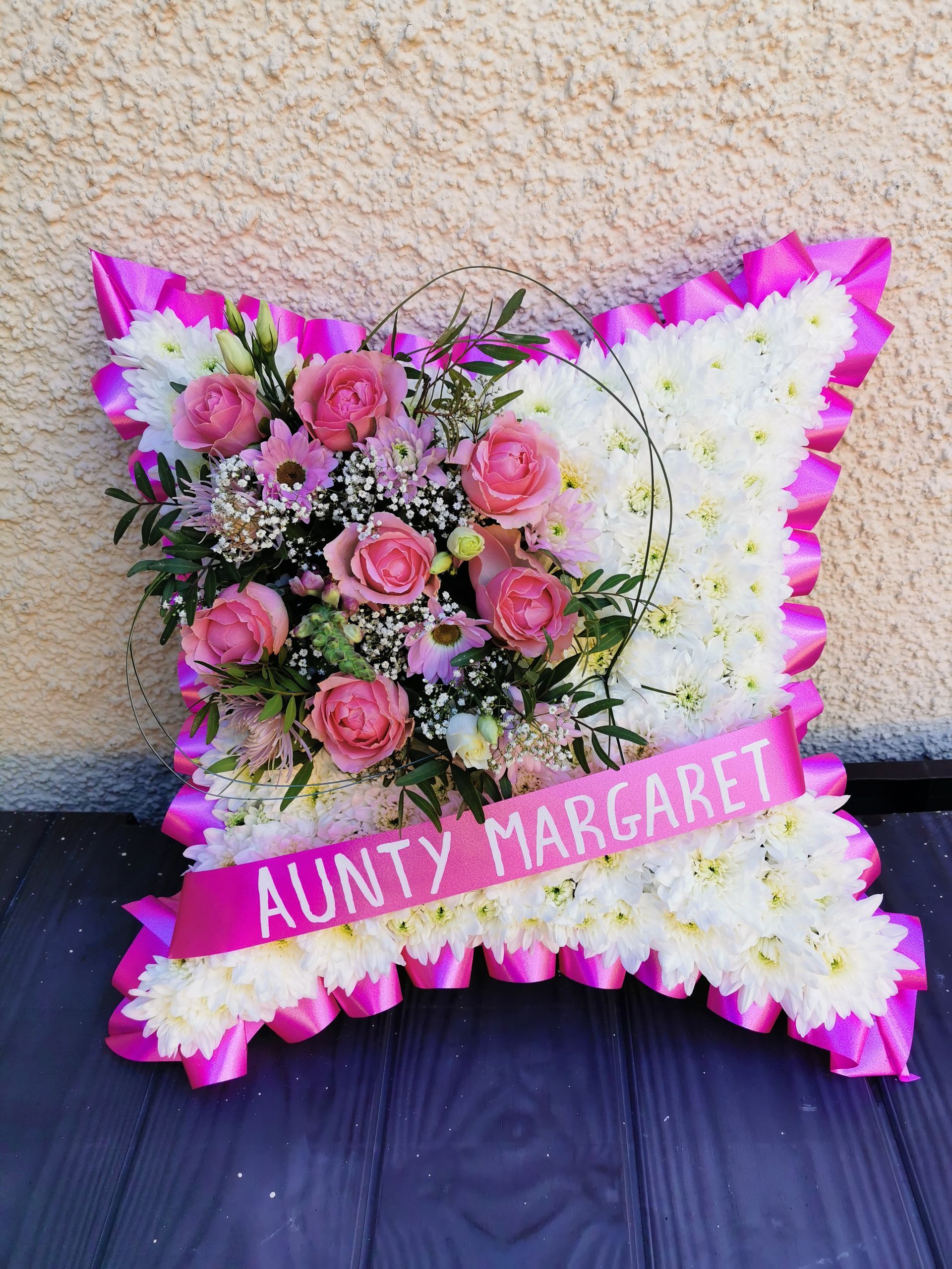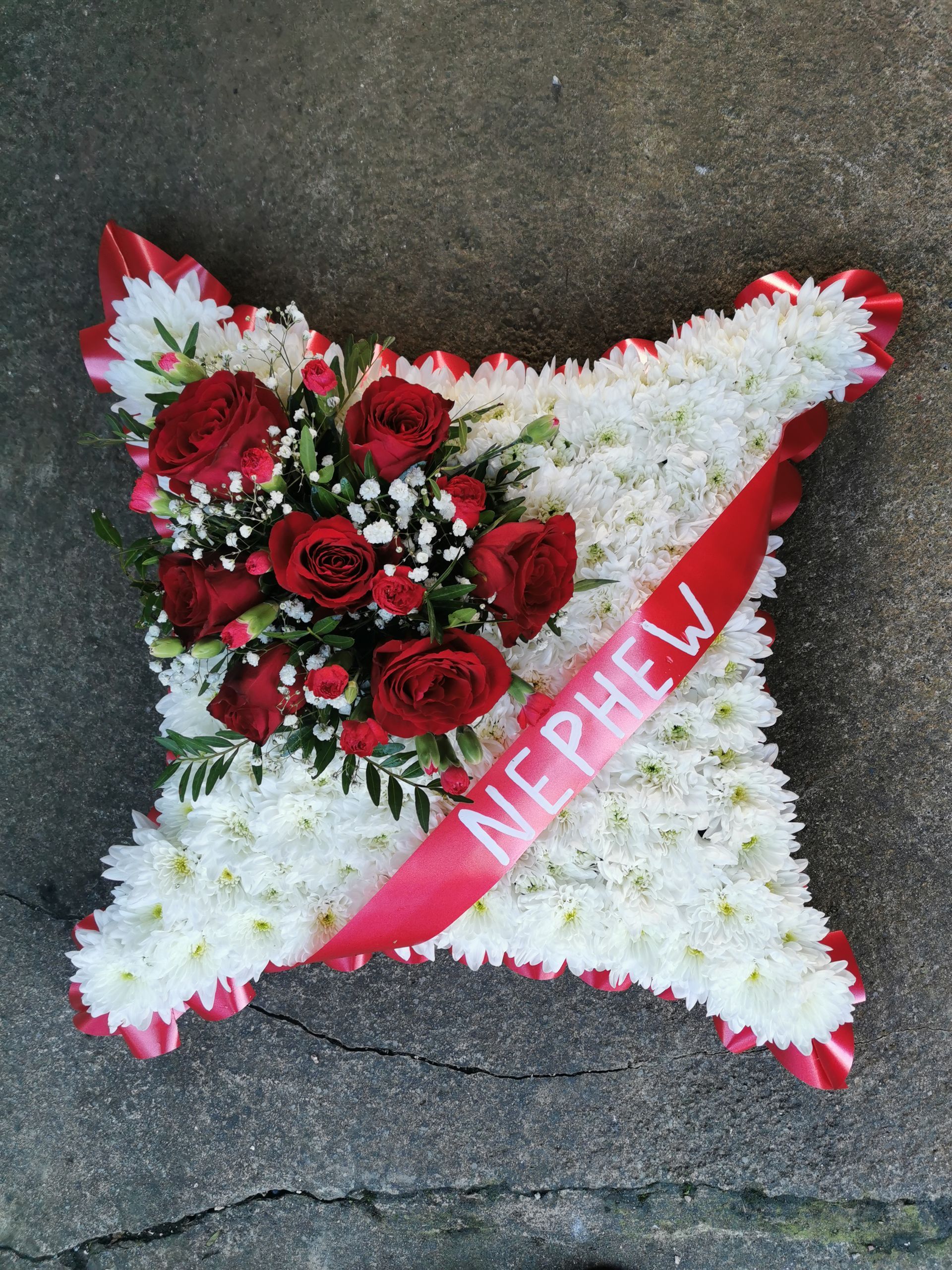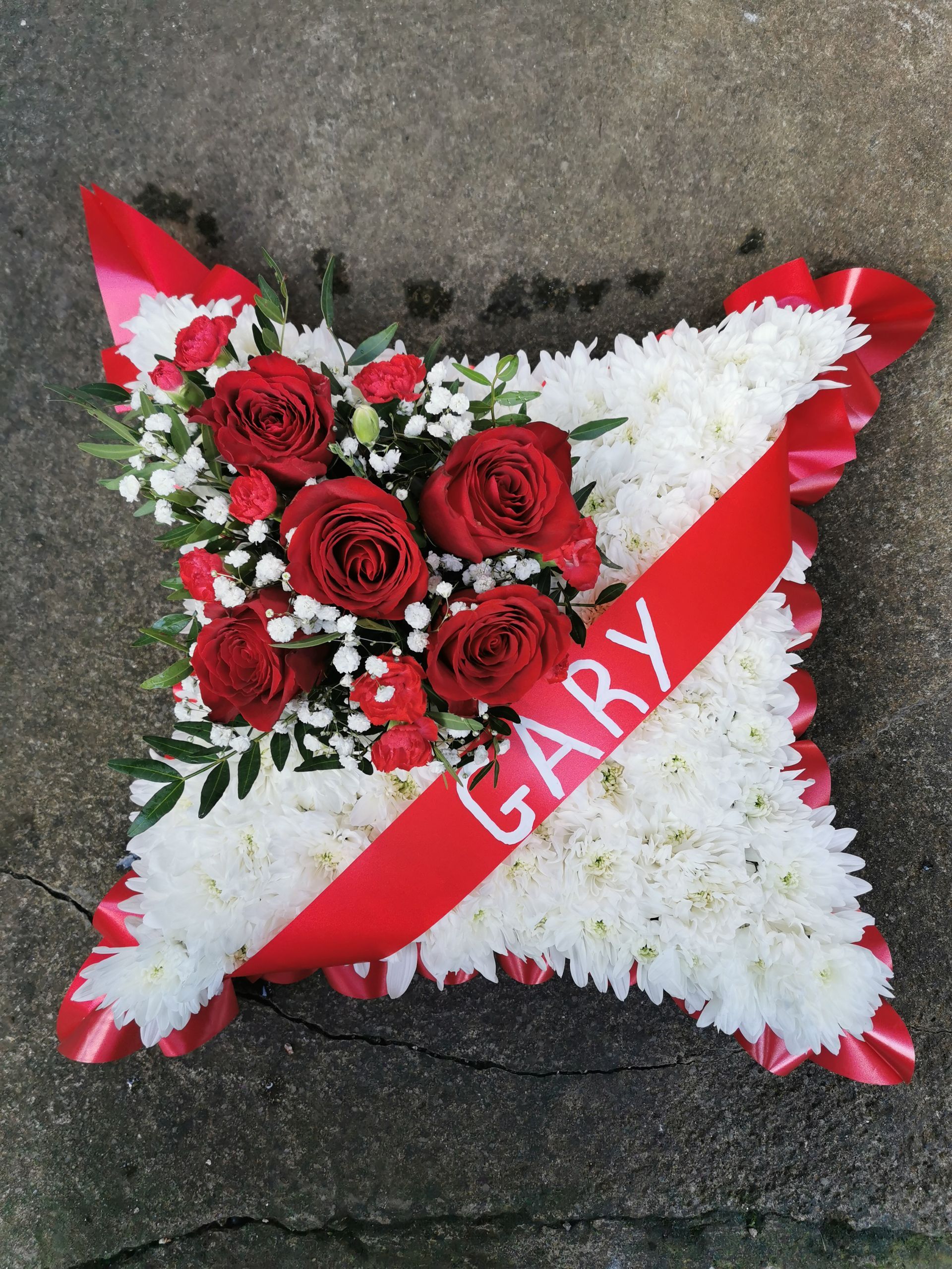 All cushions, hearts, pillows & circular posie pads are sized and priced as: 16" base £48, 18" base £58 & 21" base £74