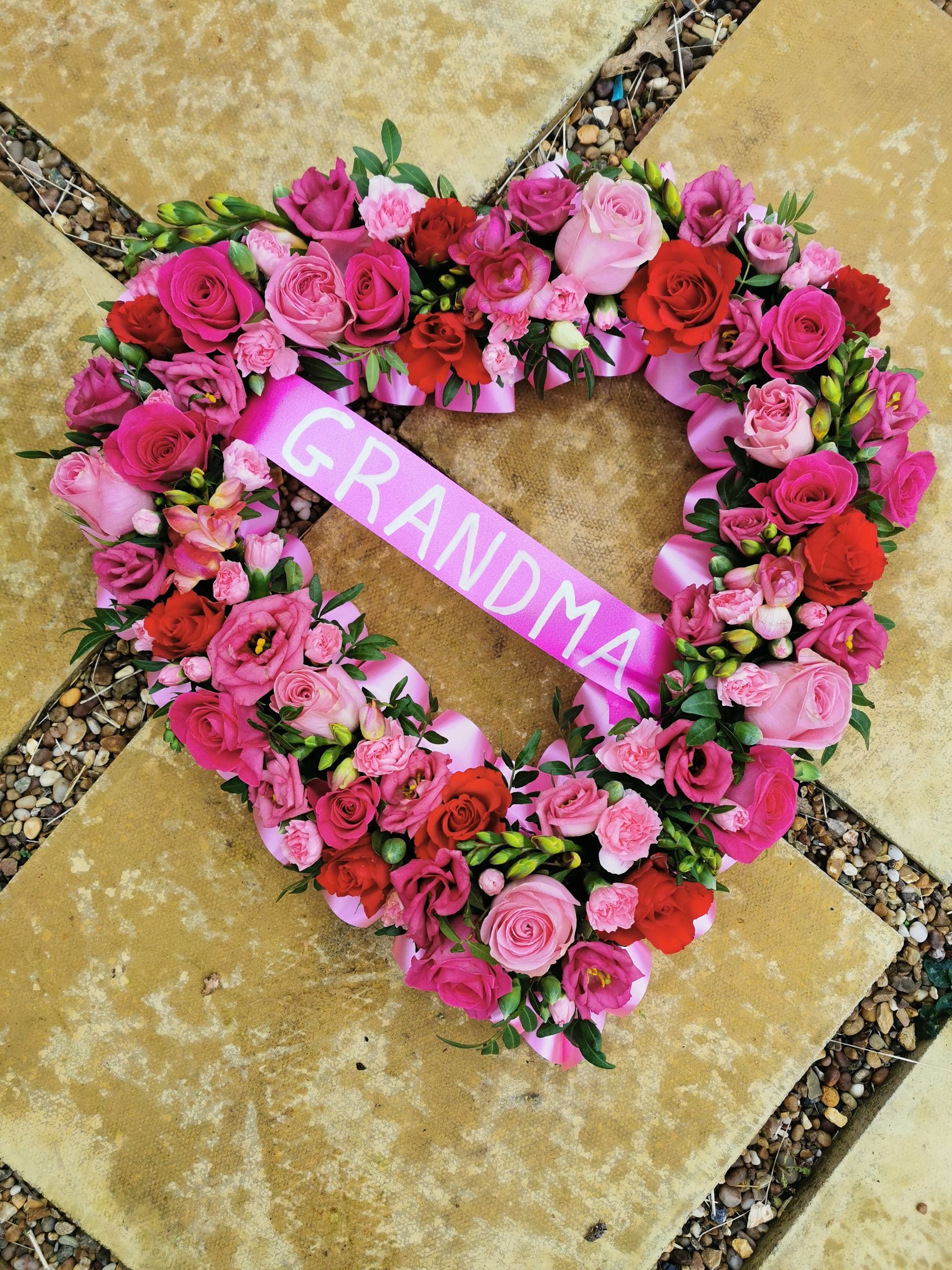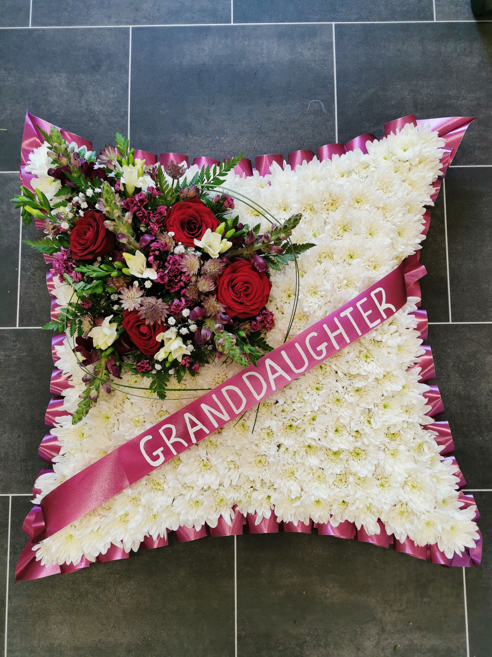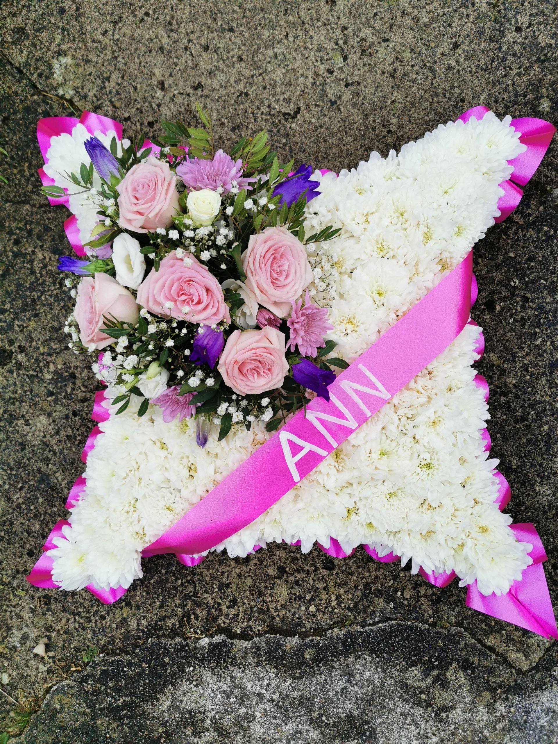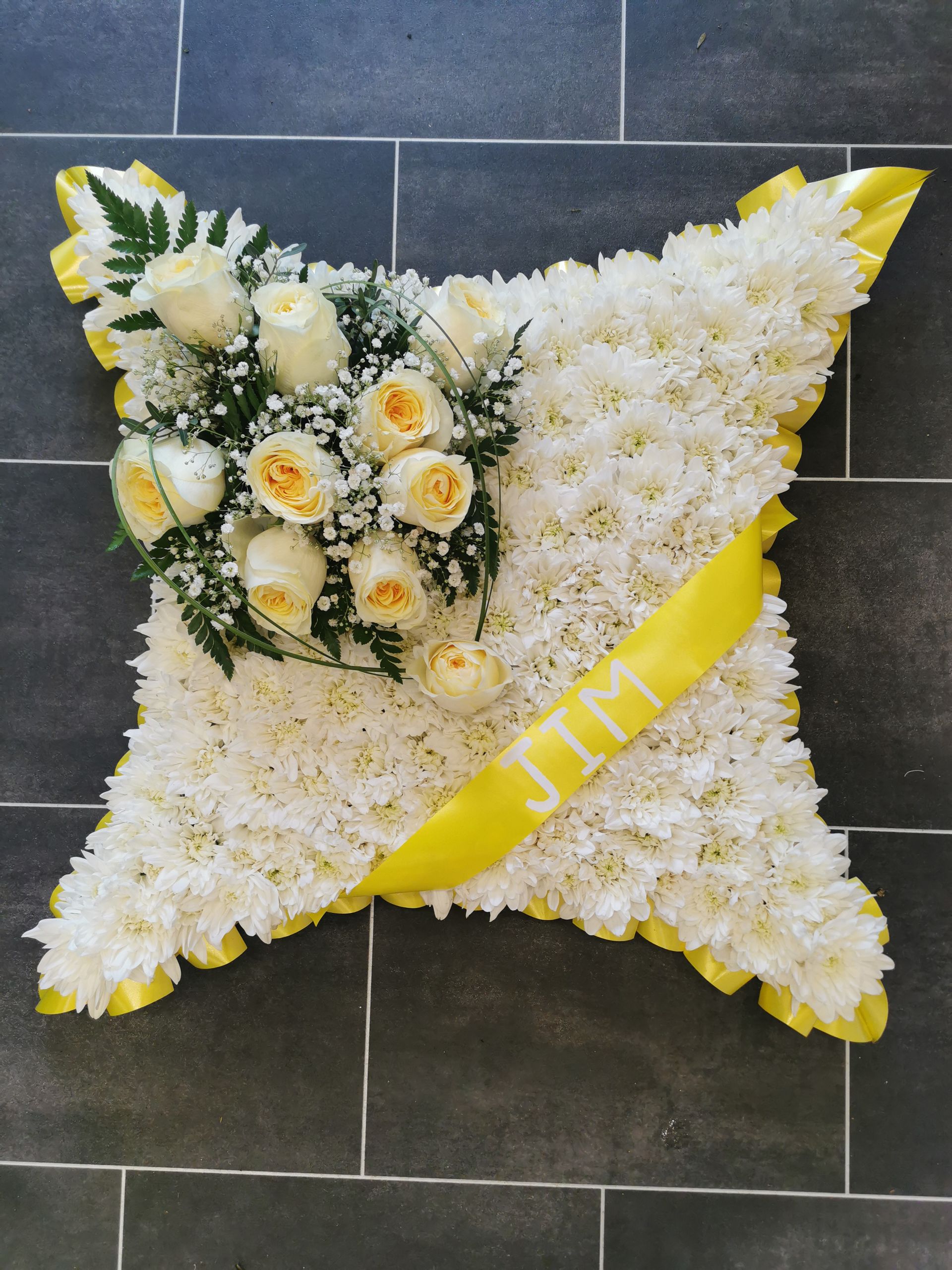 All cushions, hearts, pillows & circular posie pads are sized and priced as: 16" base £48, 18" base £58 & 21" base £74