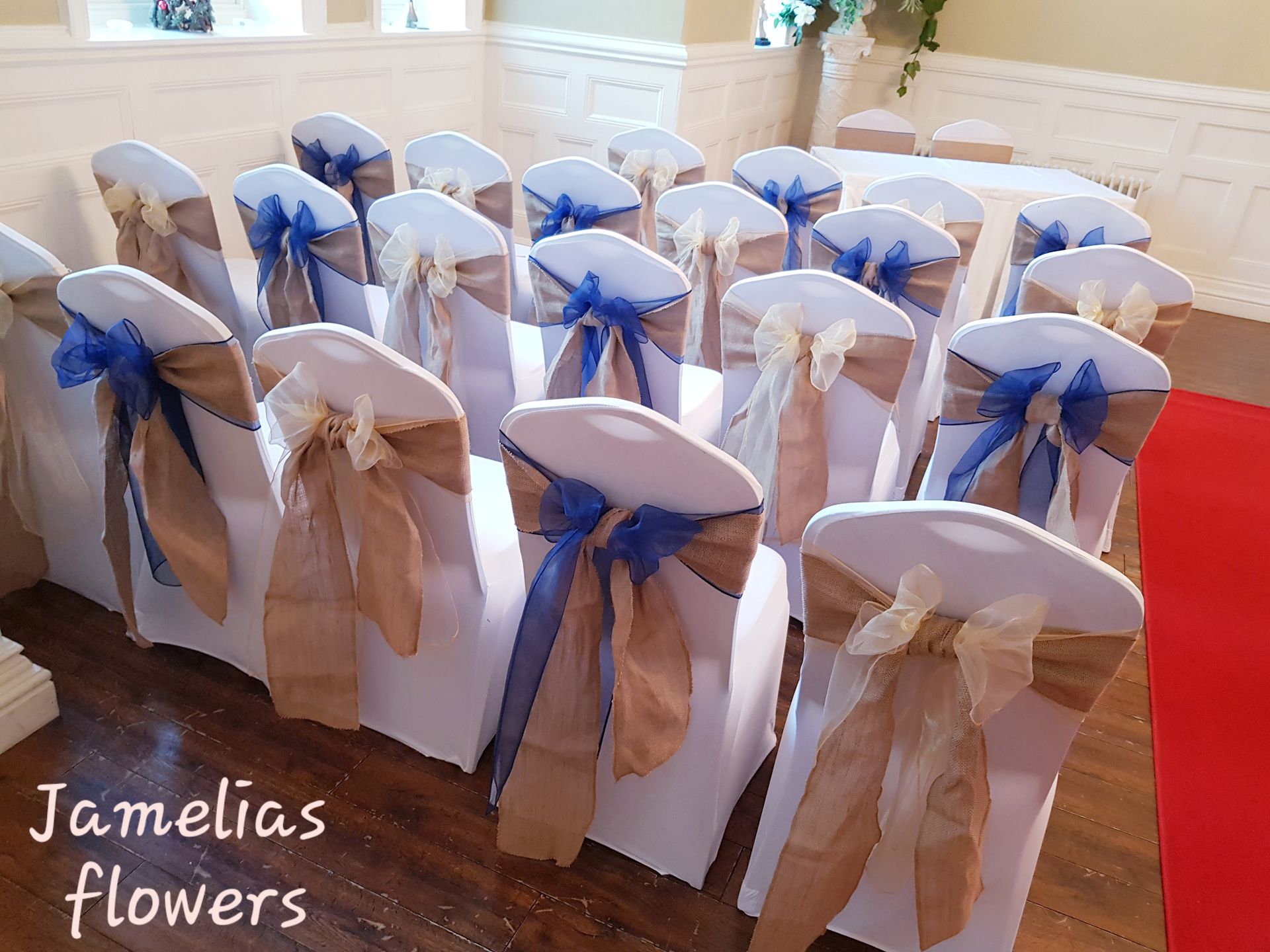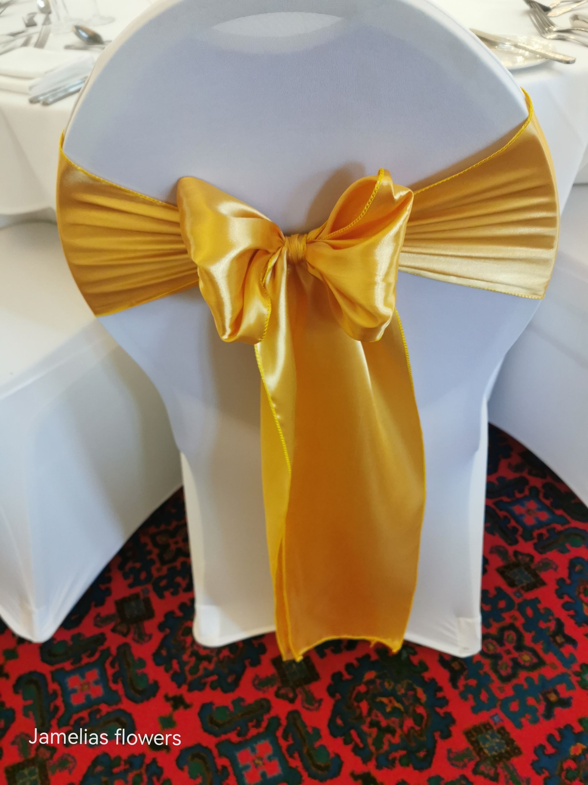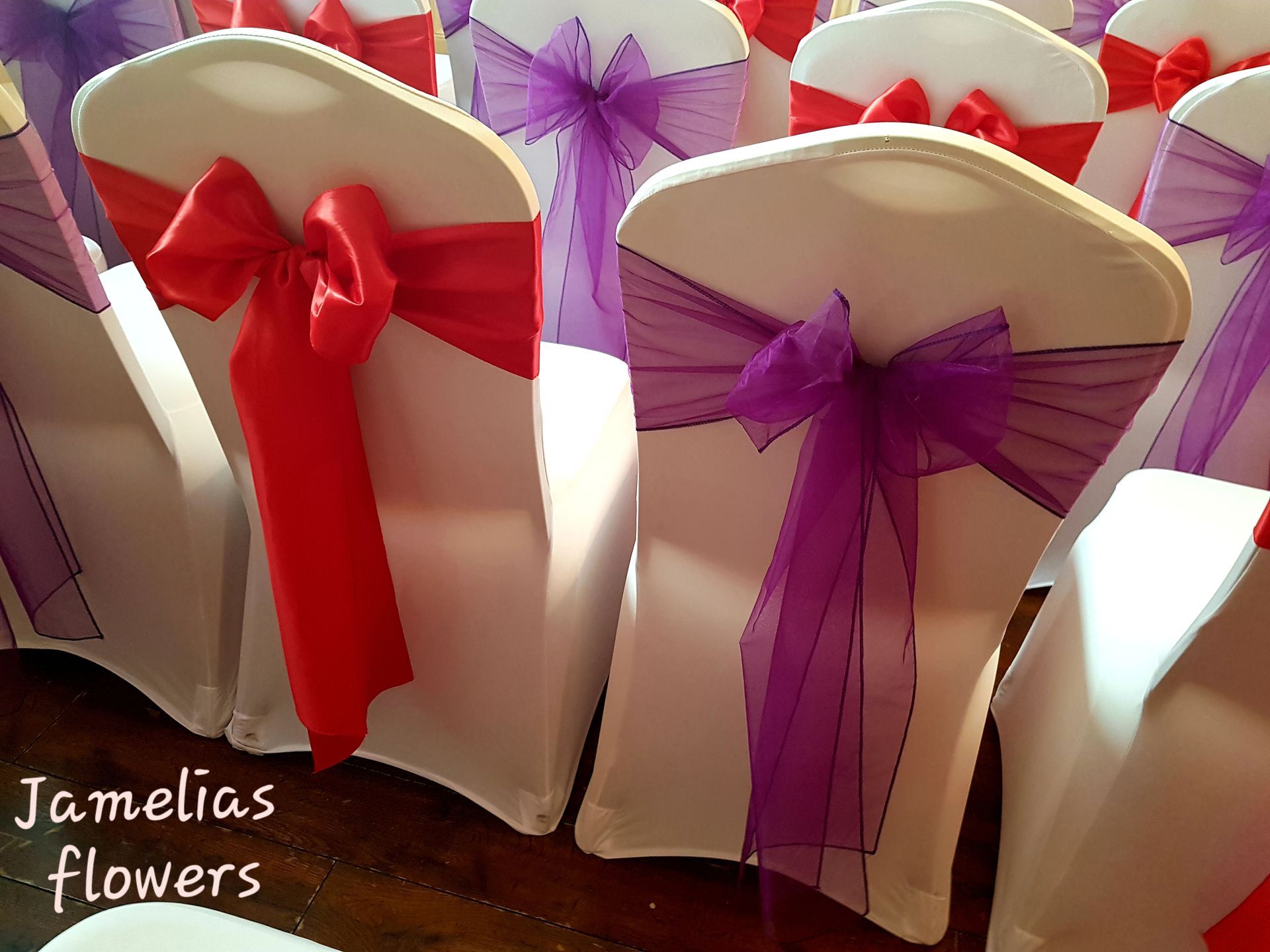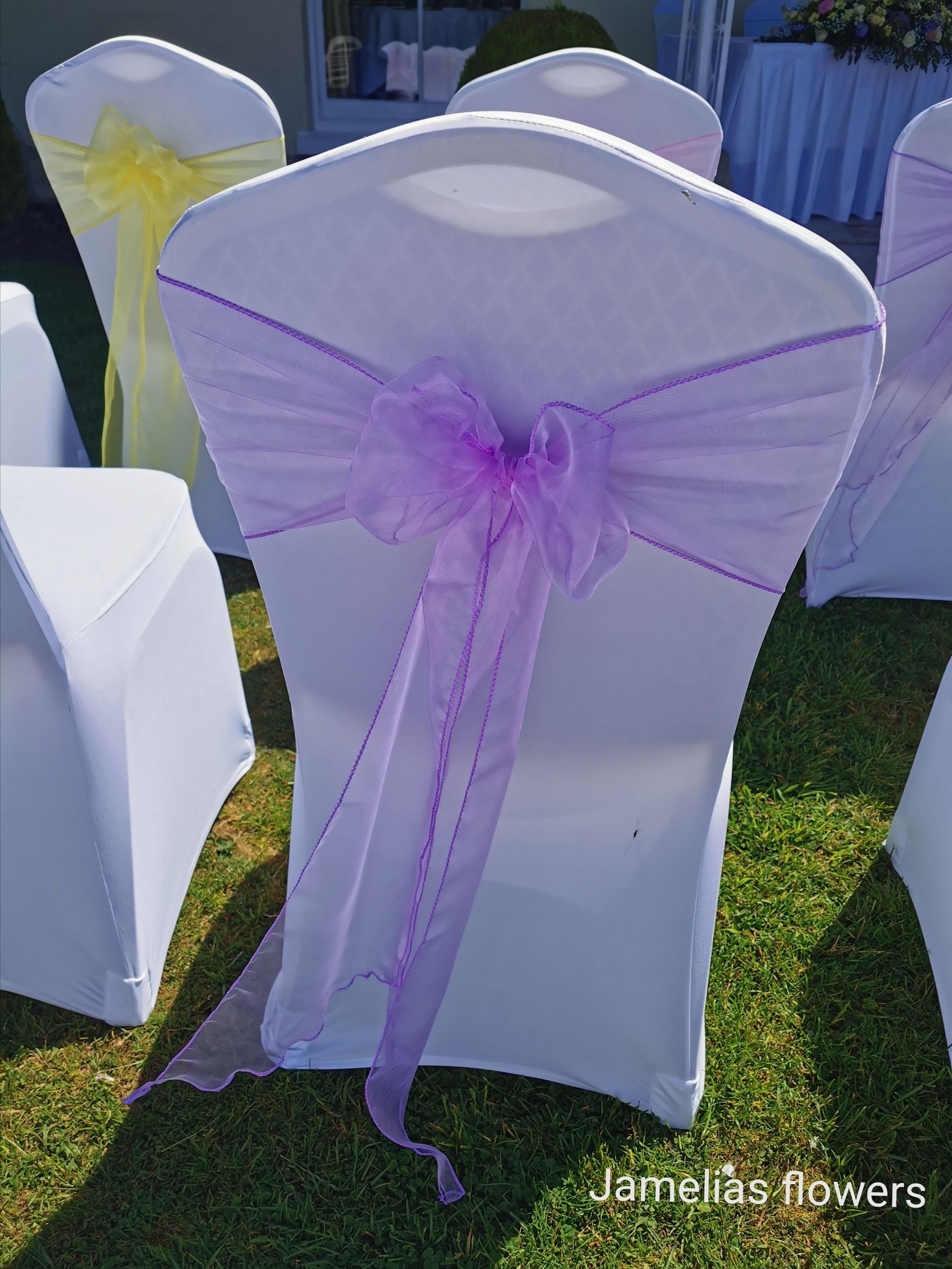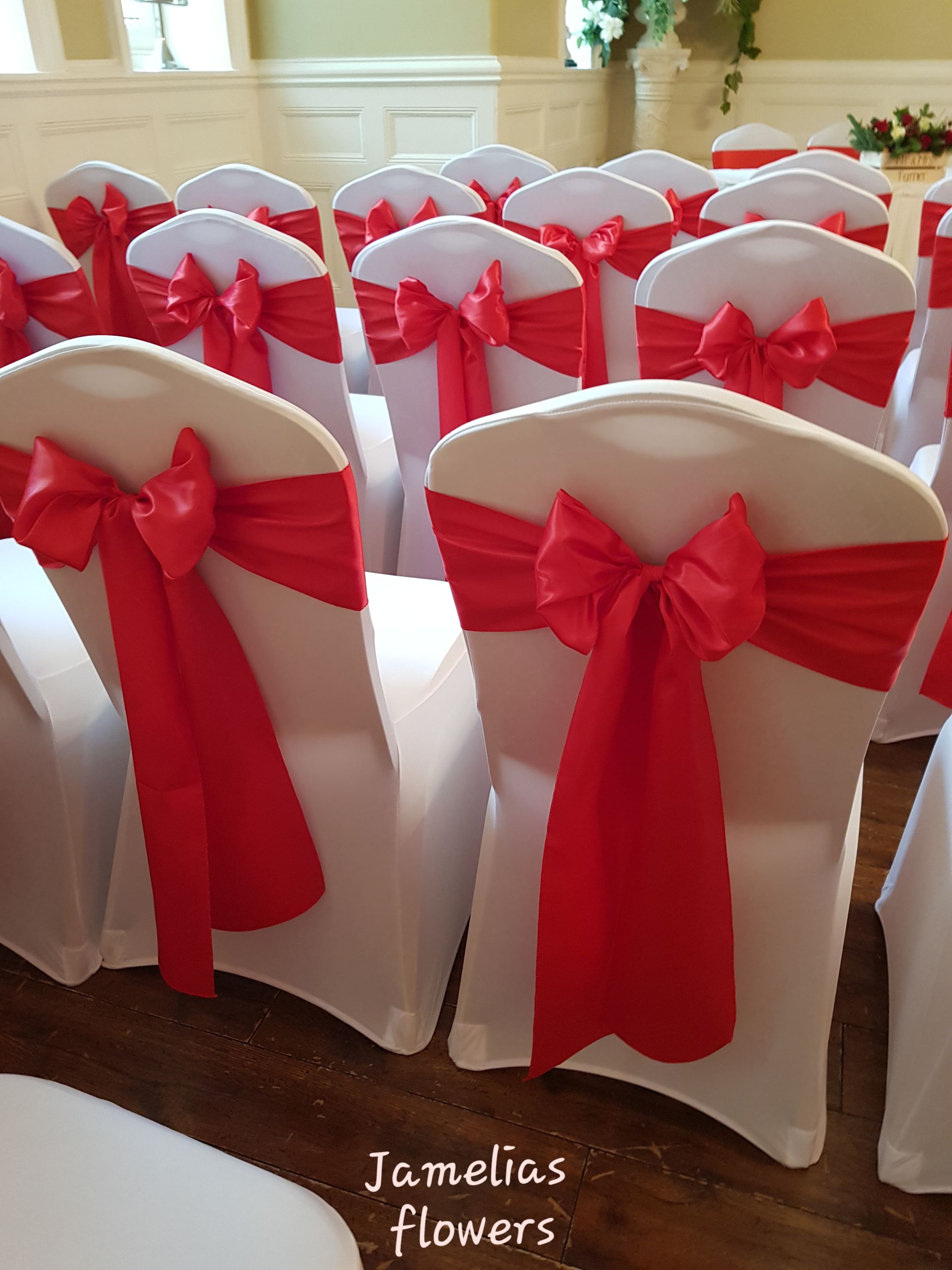 Here at Jamelias Flowers we also provide a hire service for all chair covers, sashes and runners.