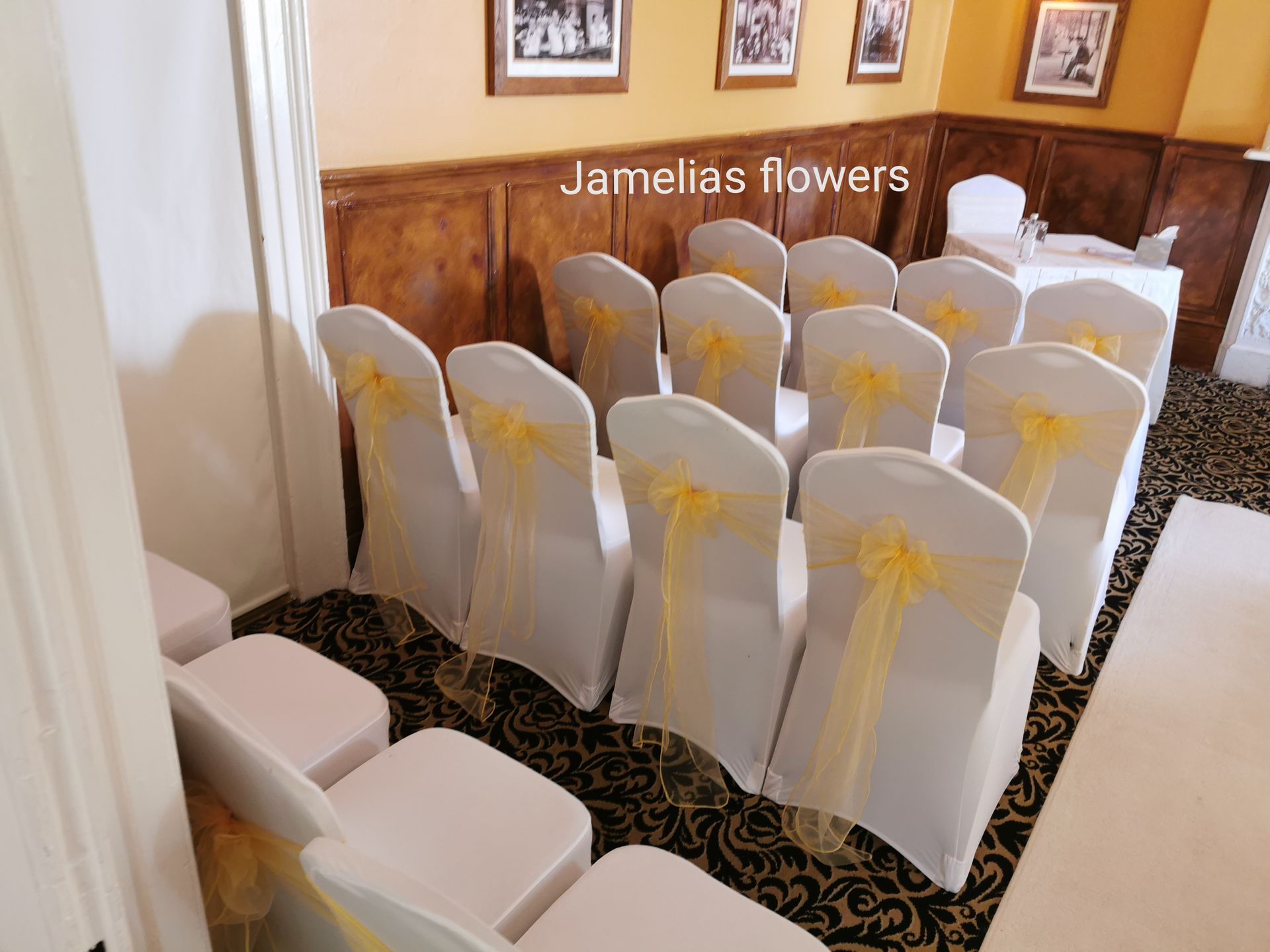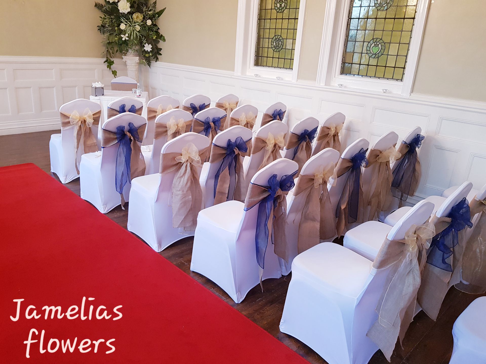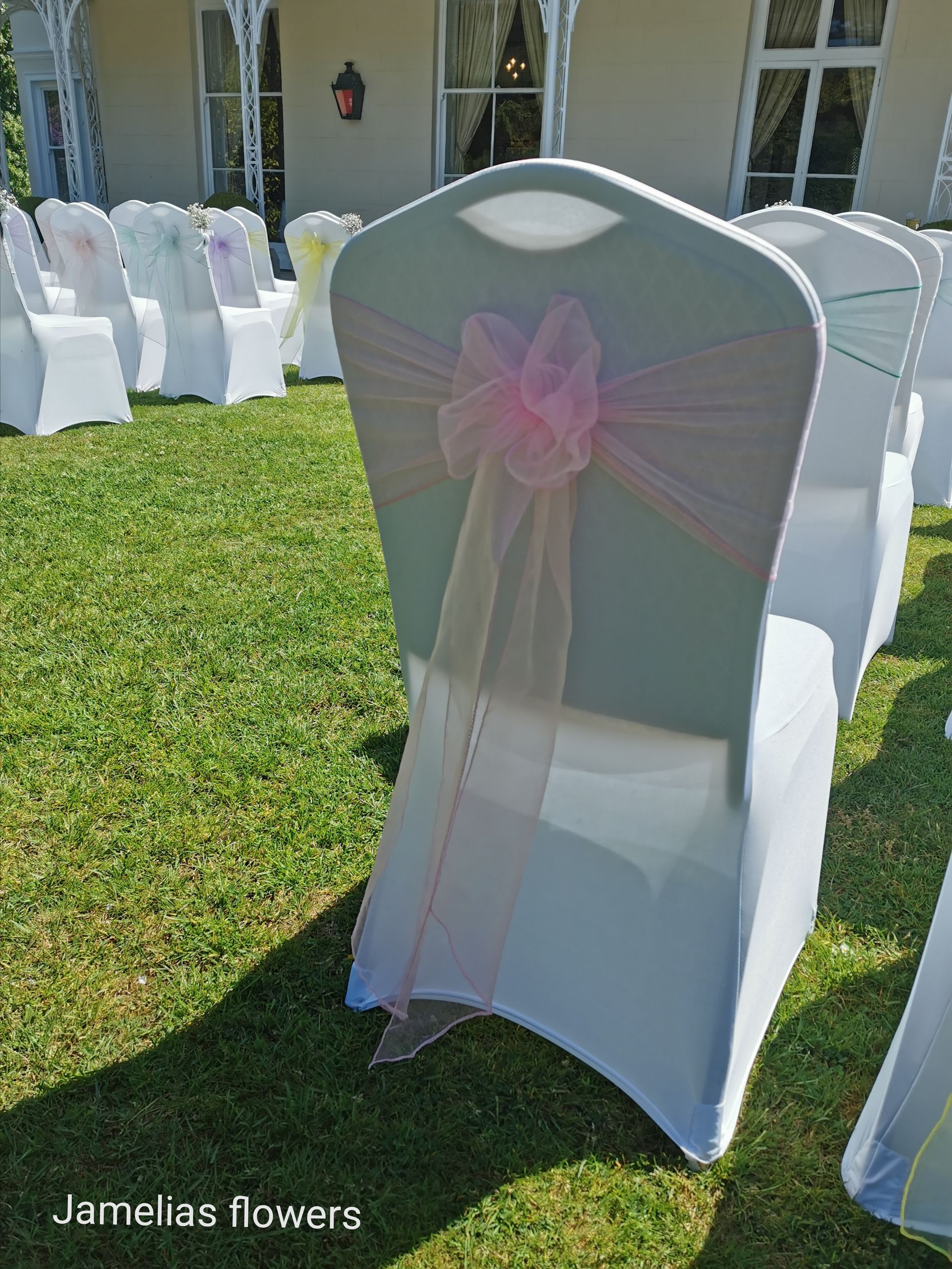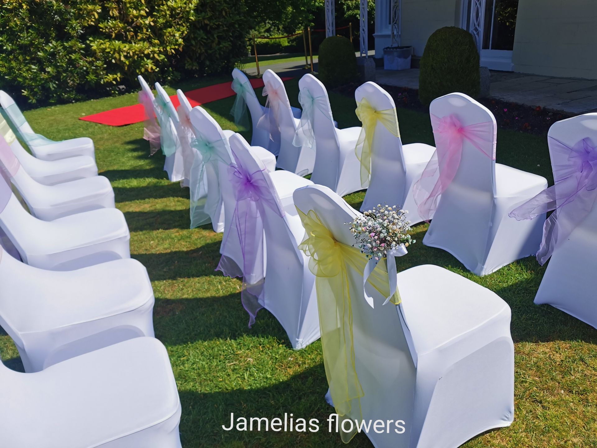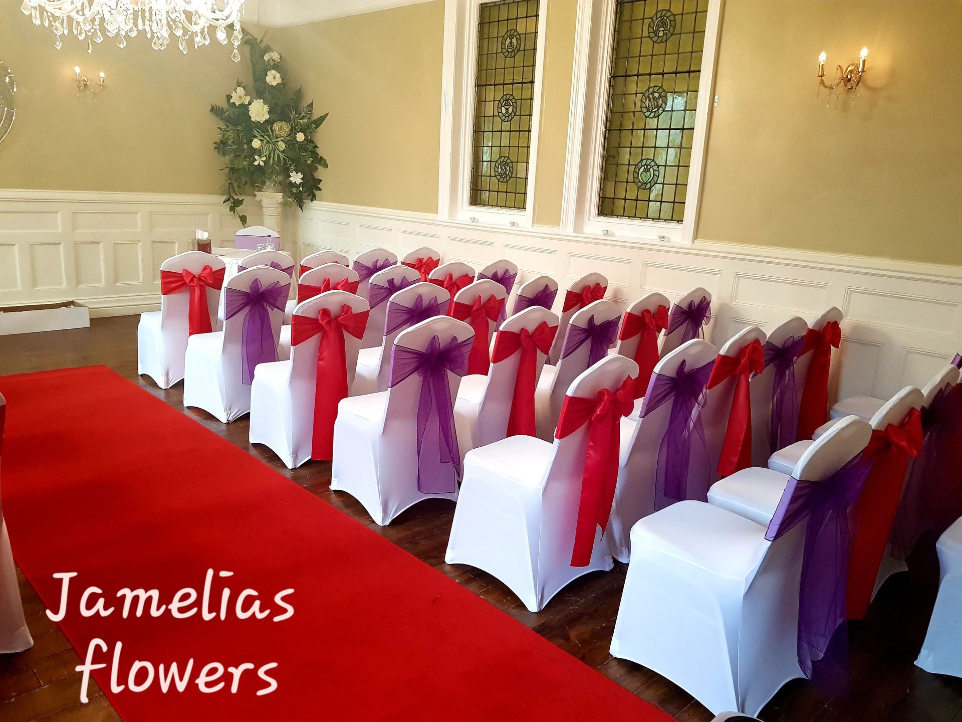 Here at Jamelias Flowers we also provide a hire service for all chair covers, sashes and runners.