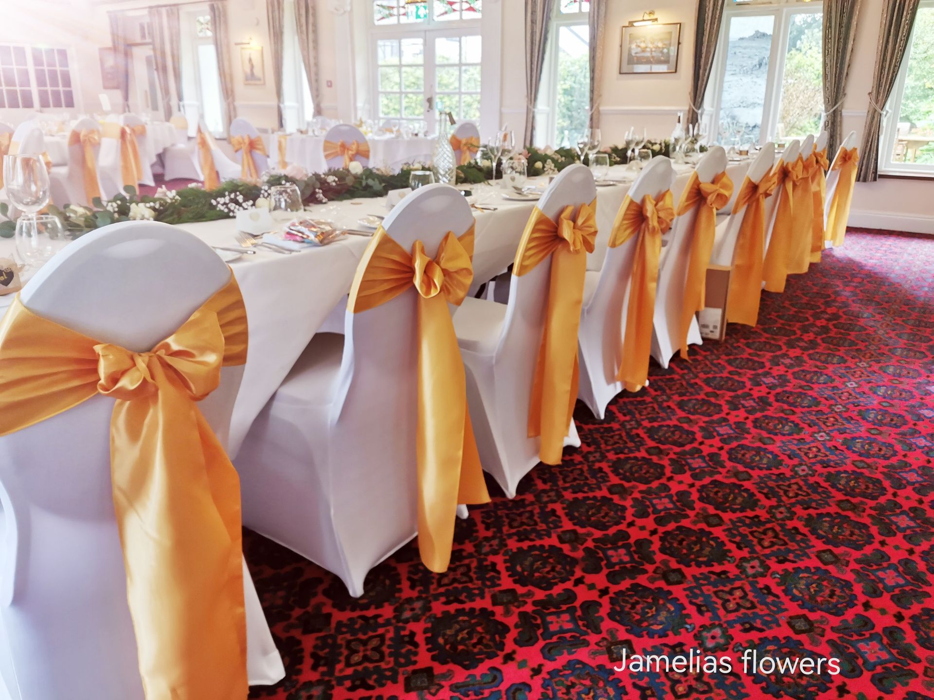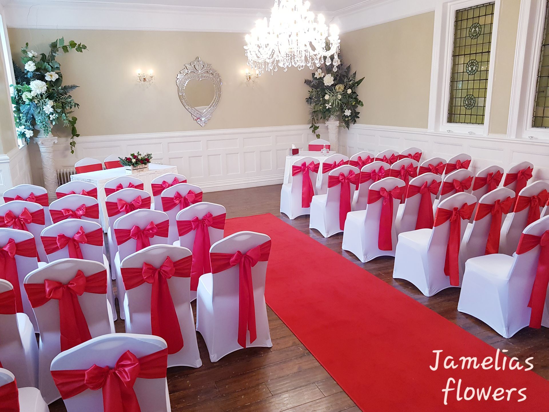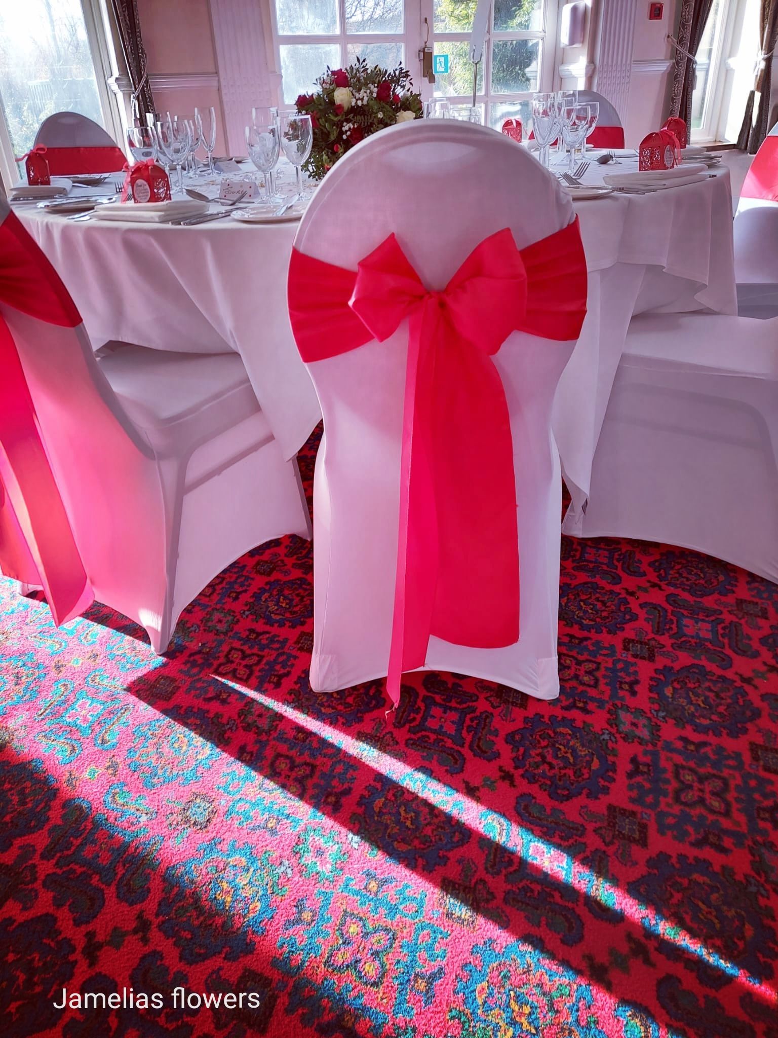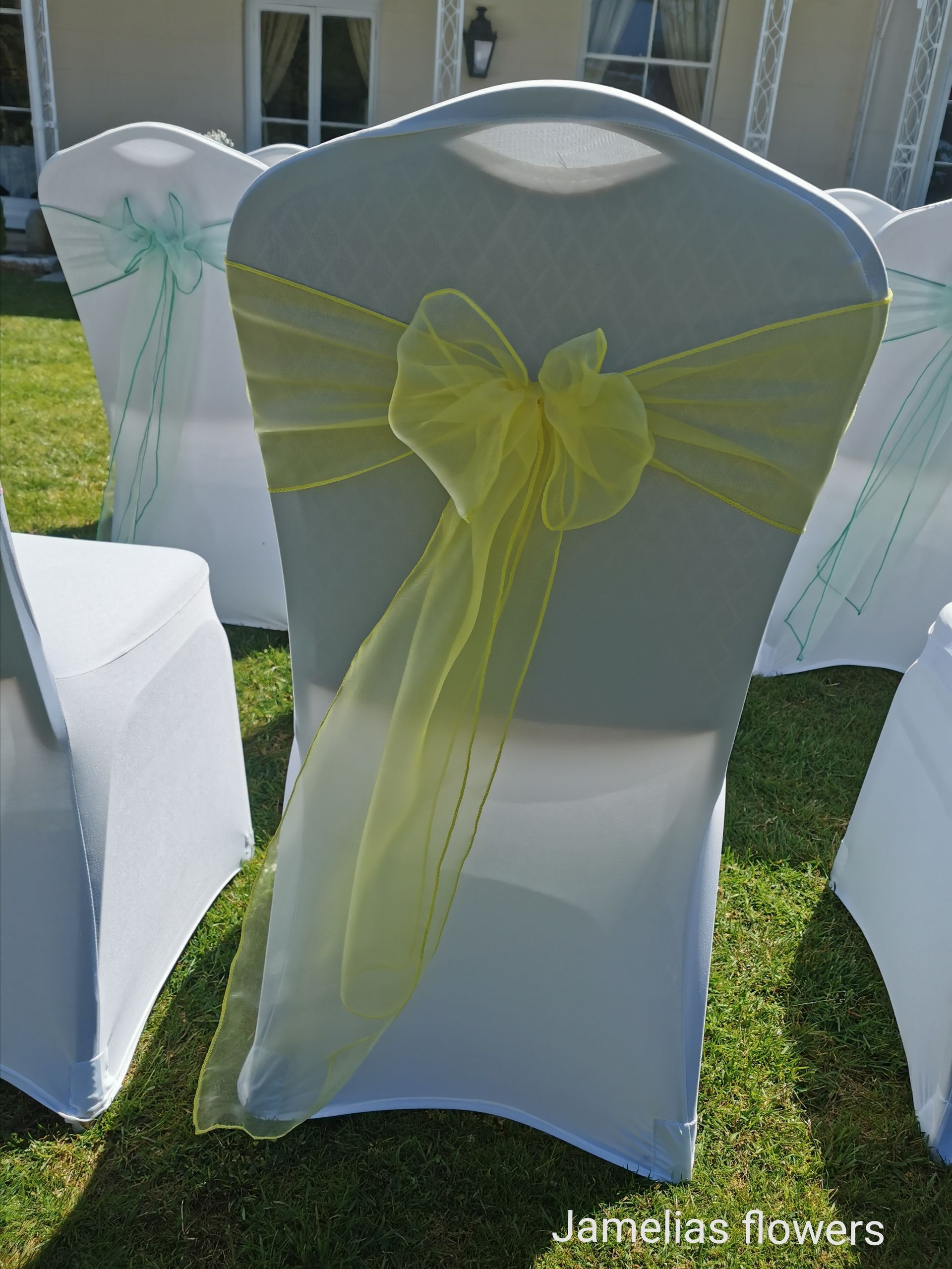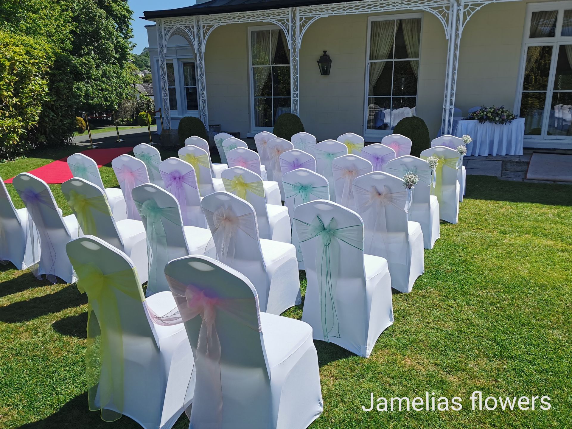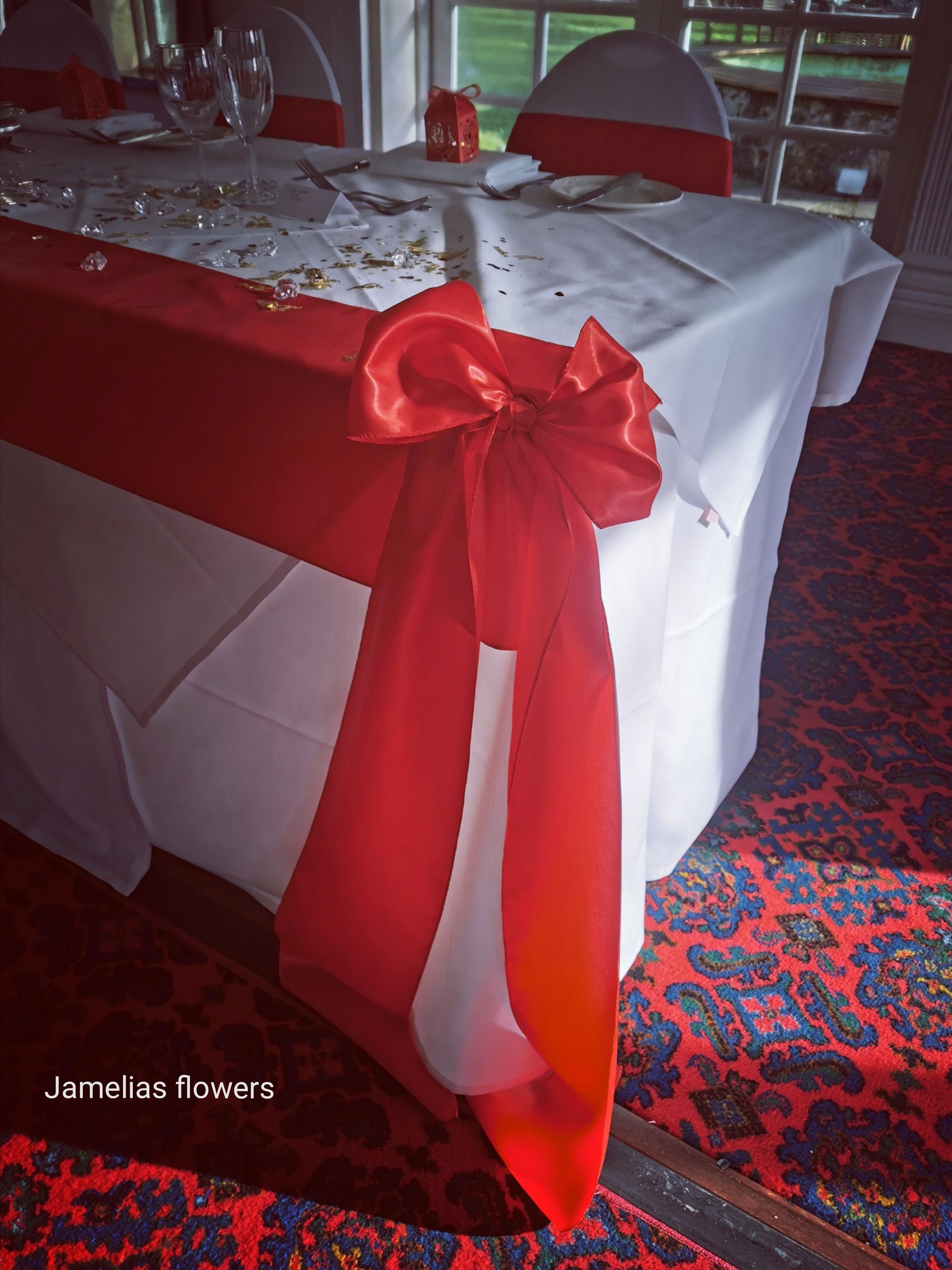 Here at Jamelias Flowers we also provide a hire service for all chair covers, sashes and runners.