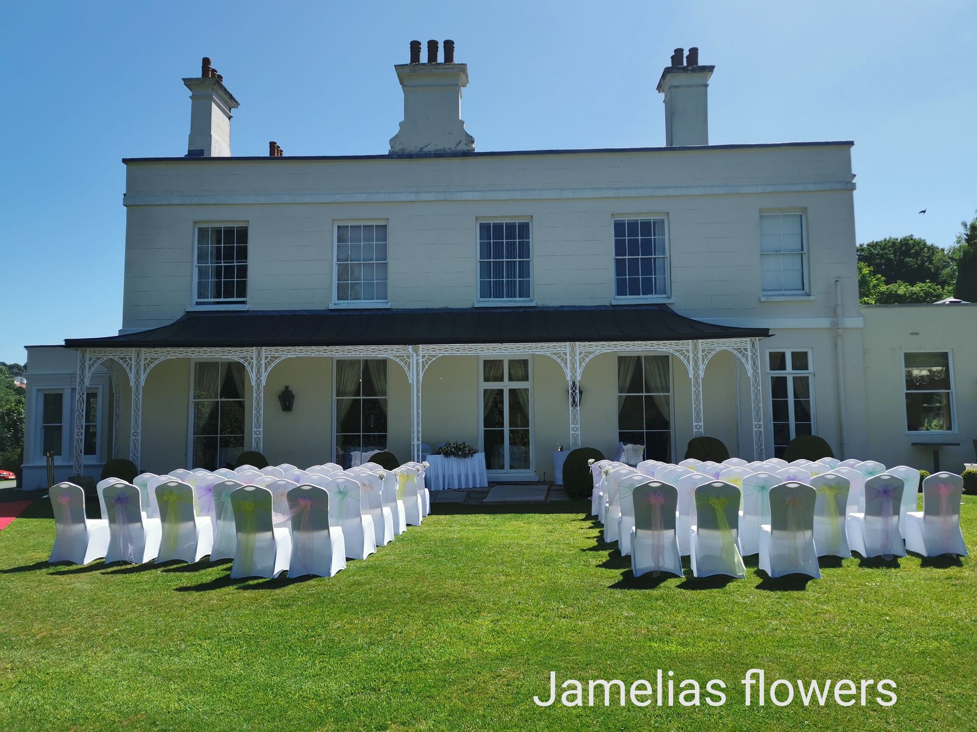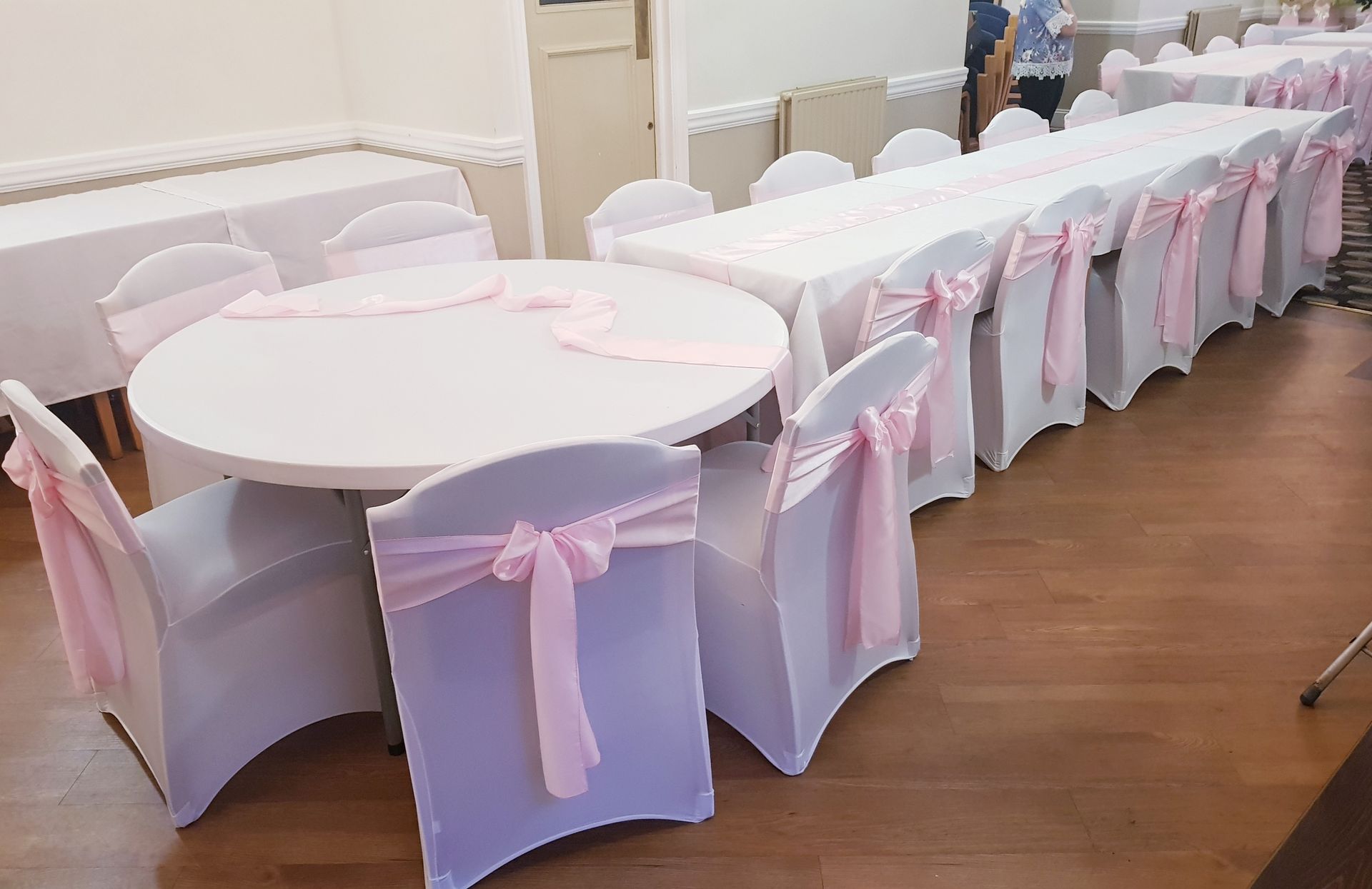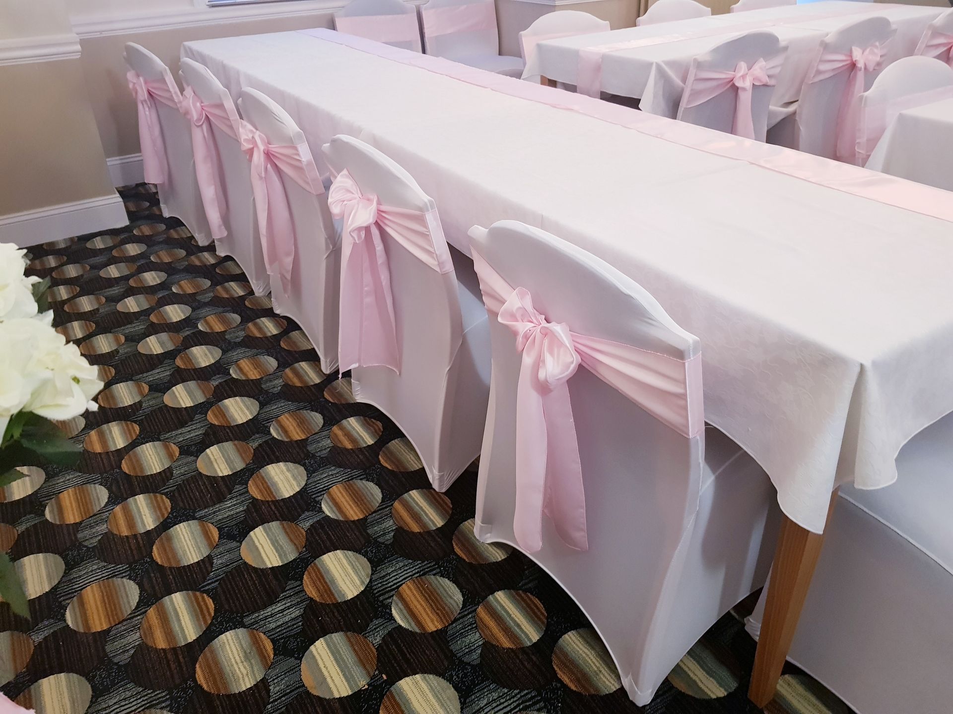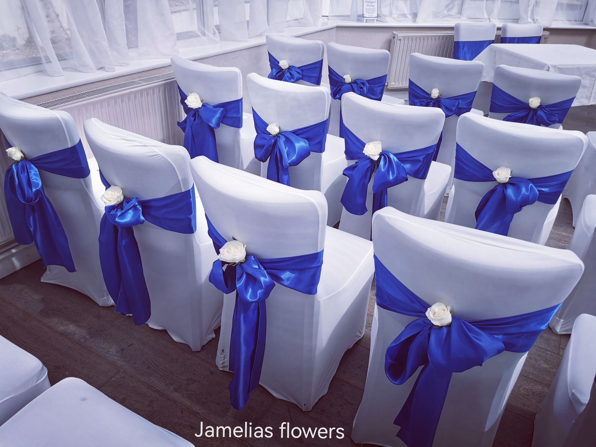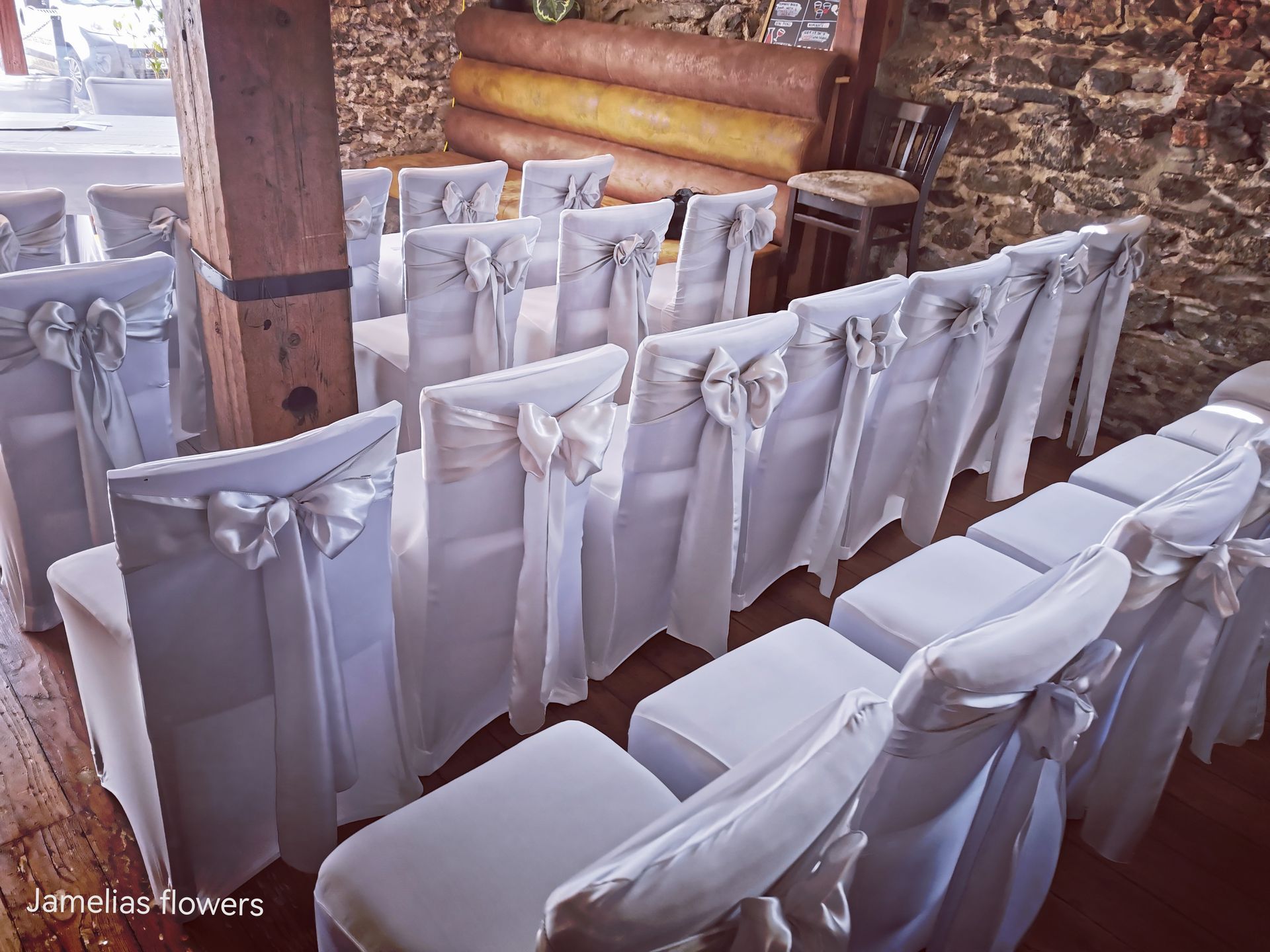 Here at Jamelias Flowers we also provide a hire service for all chair covers, sashes and runners.