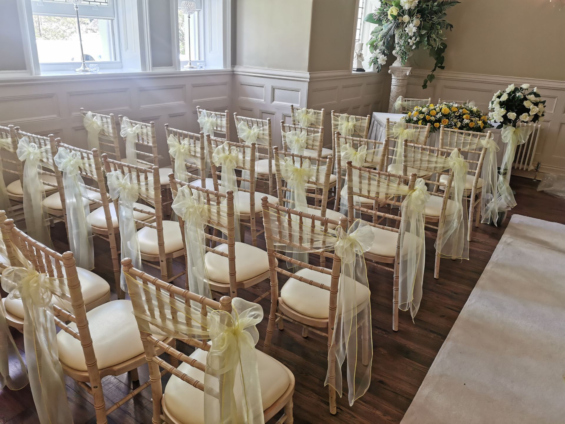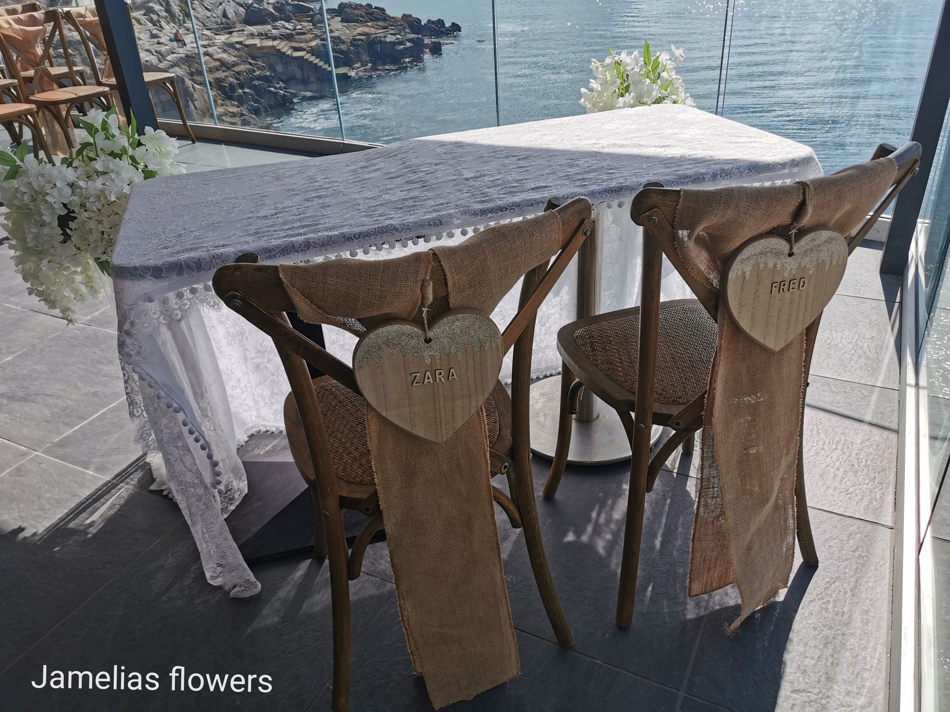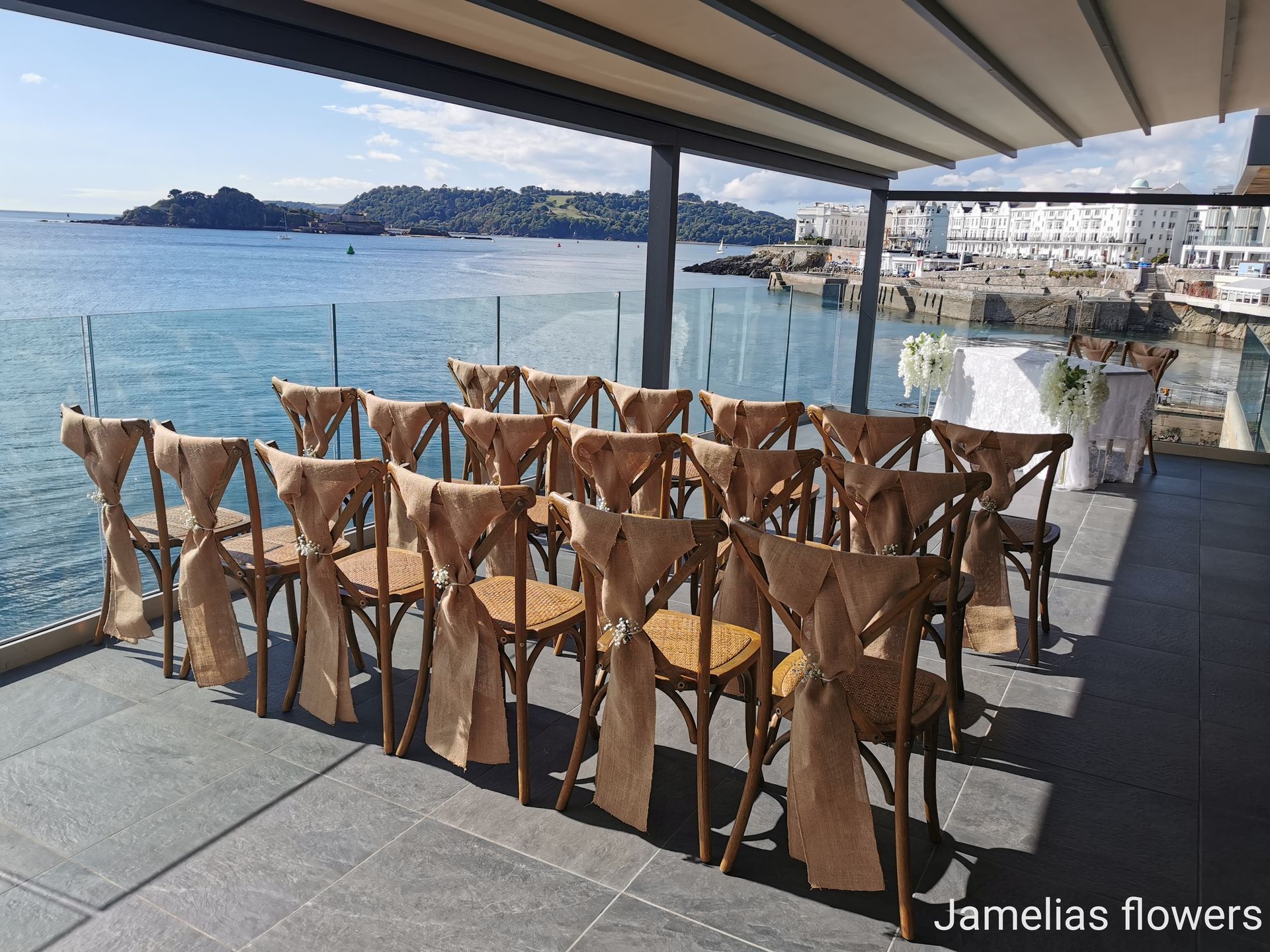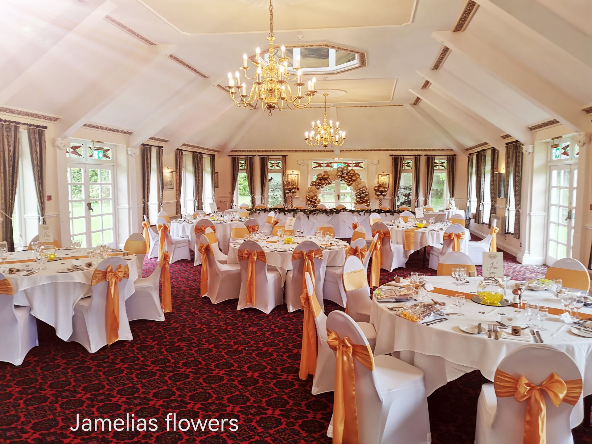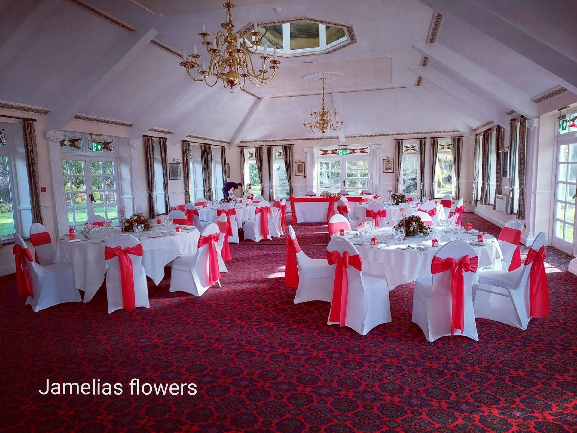 Here at Jamelias Flowers we also provide a hire service for all chair covers, sashes and runners.
